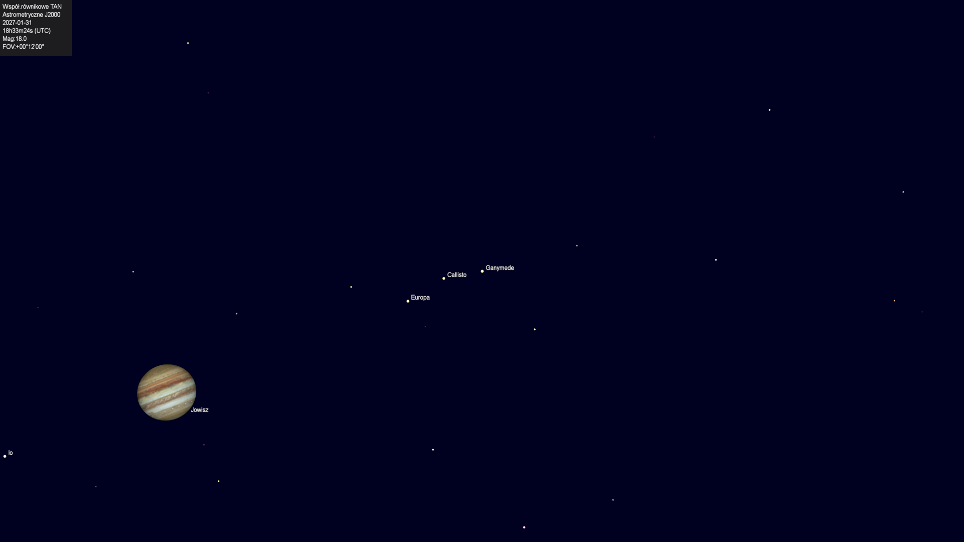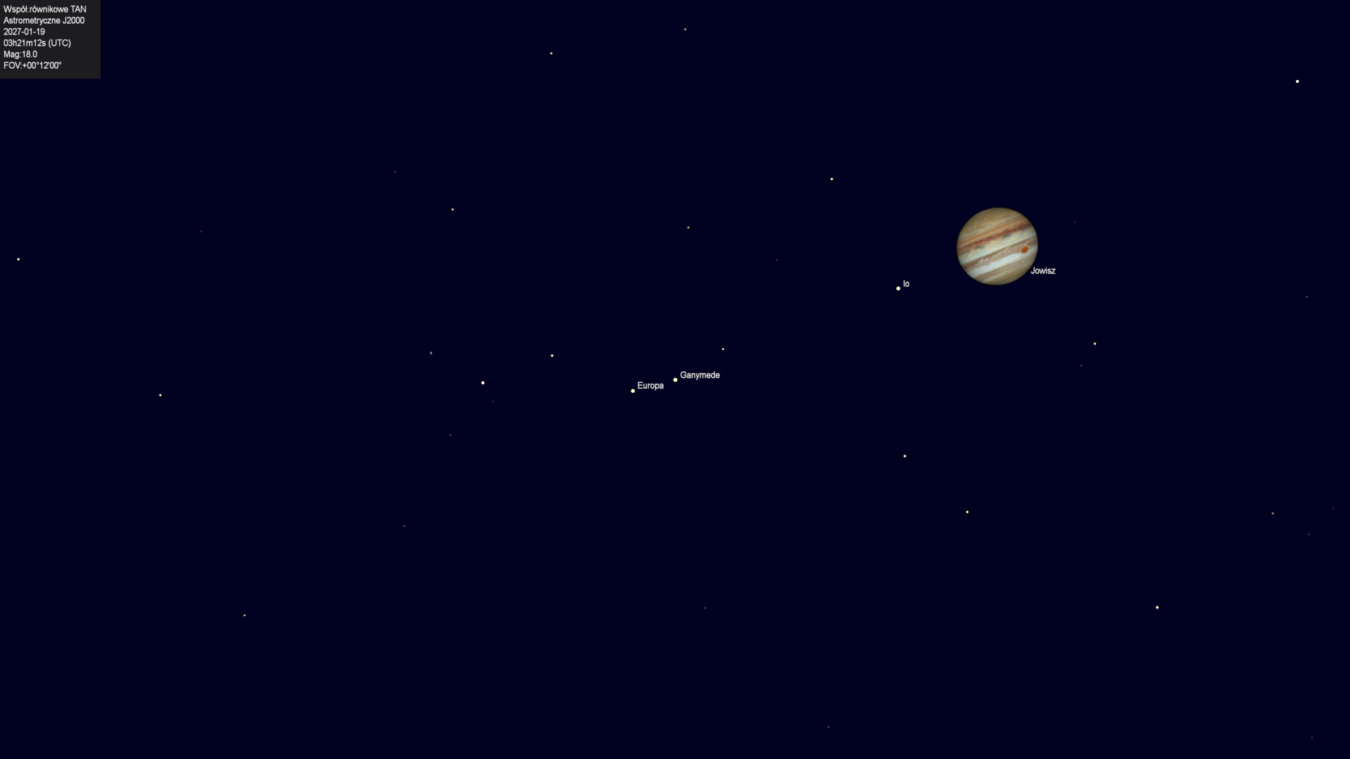 Półcieniowe zaćmienie księżyca Europa przez cień księżyca Ganimedesa |