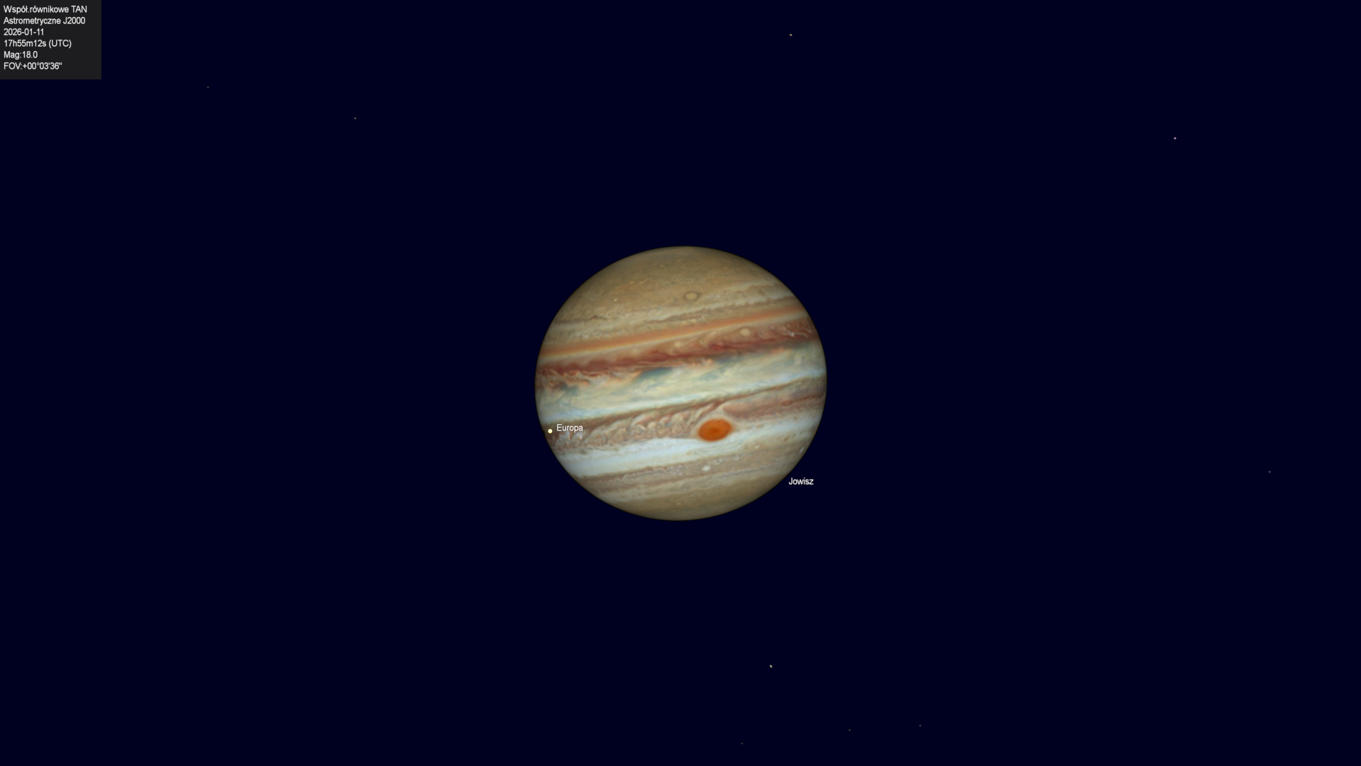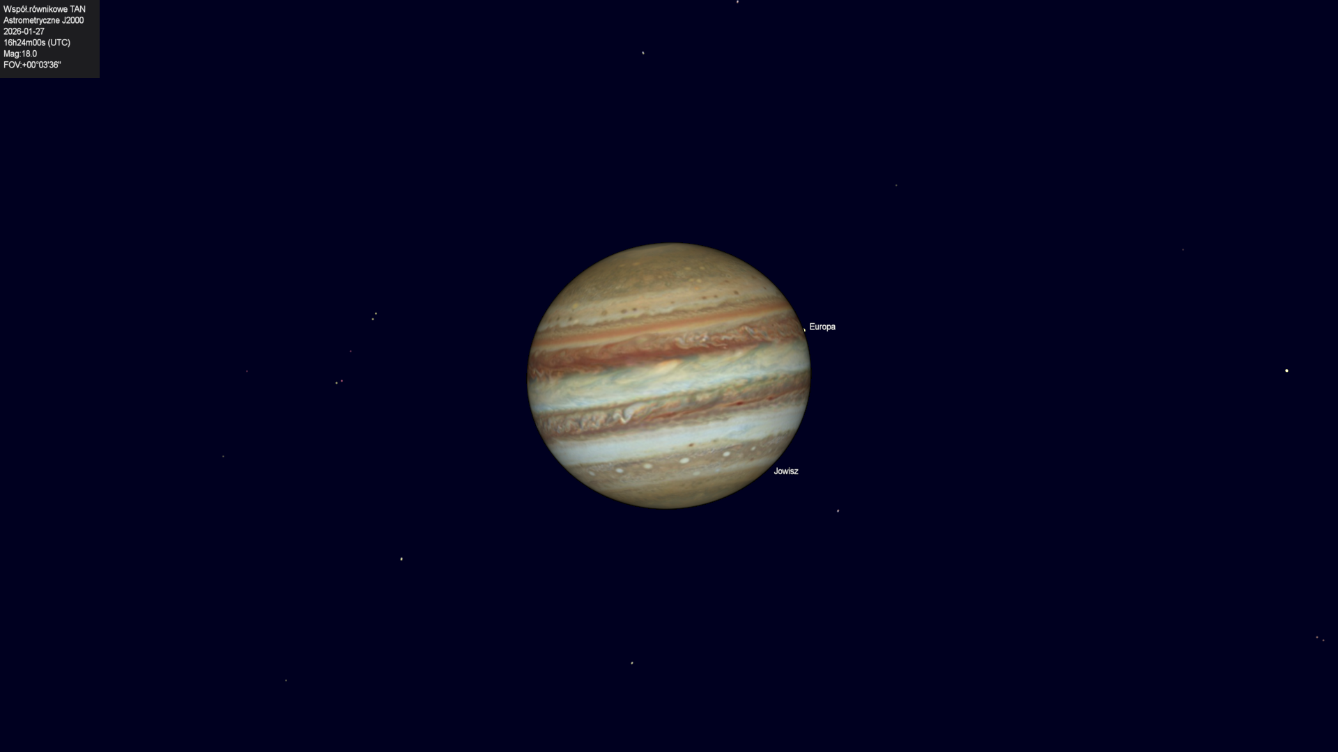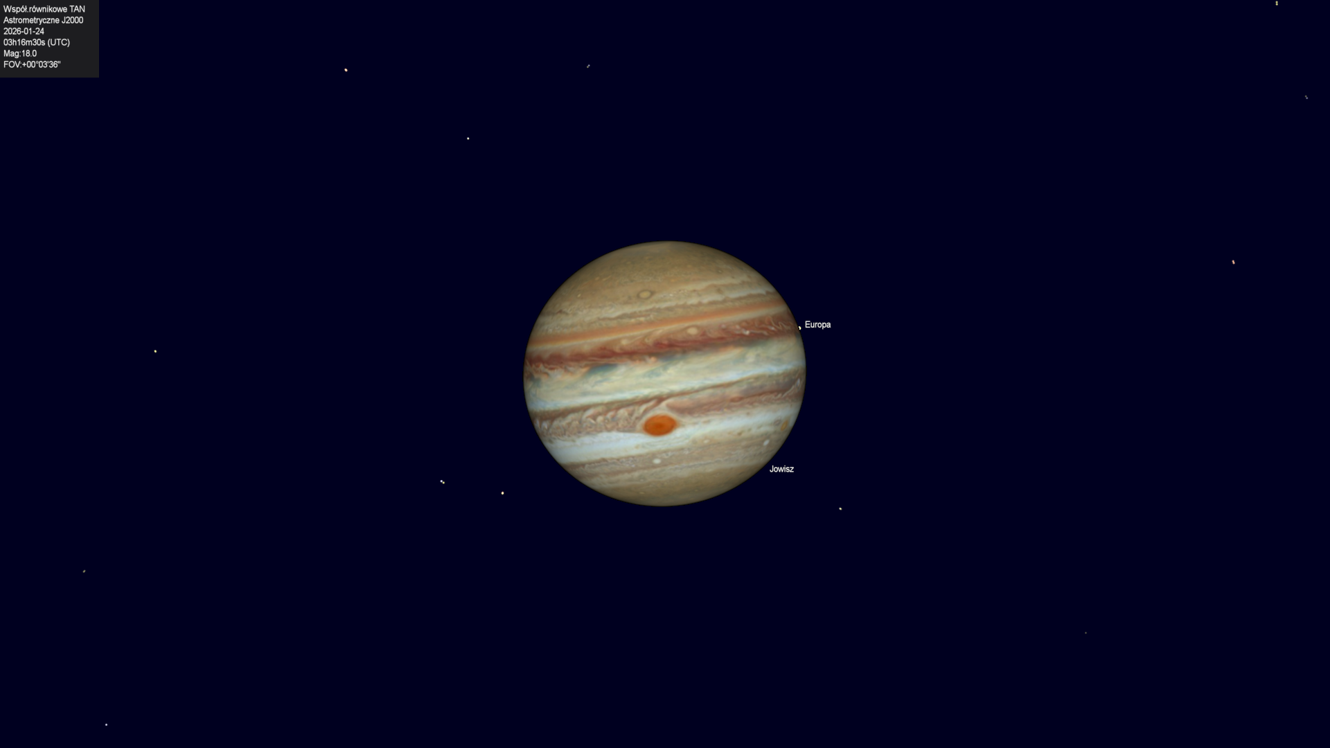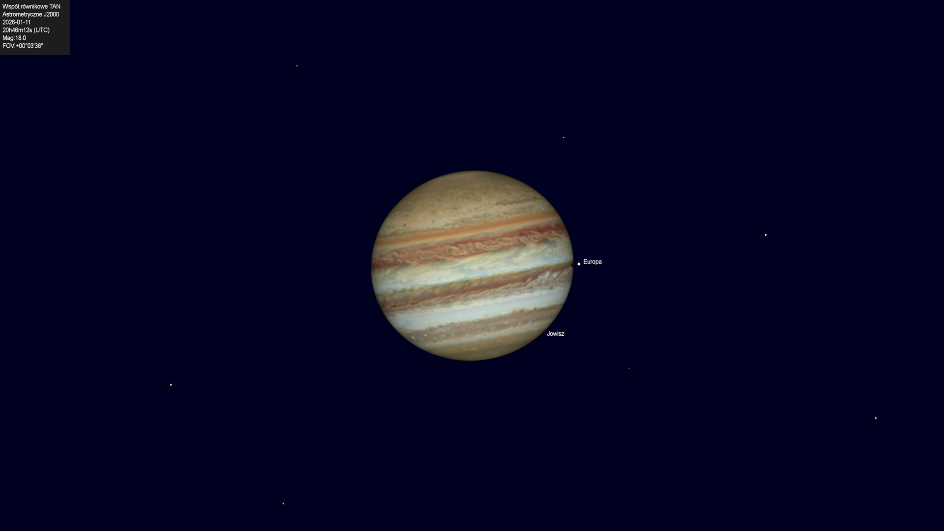 Koniec zakrycia księżyca Europy przez tarczę planety.