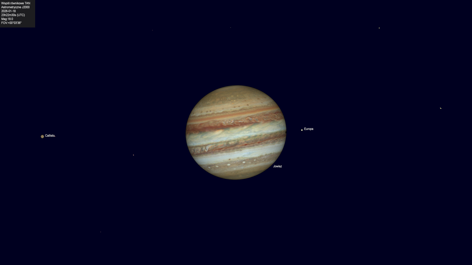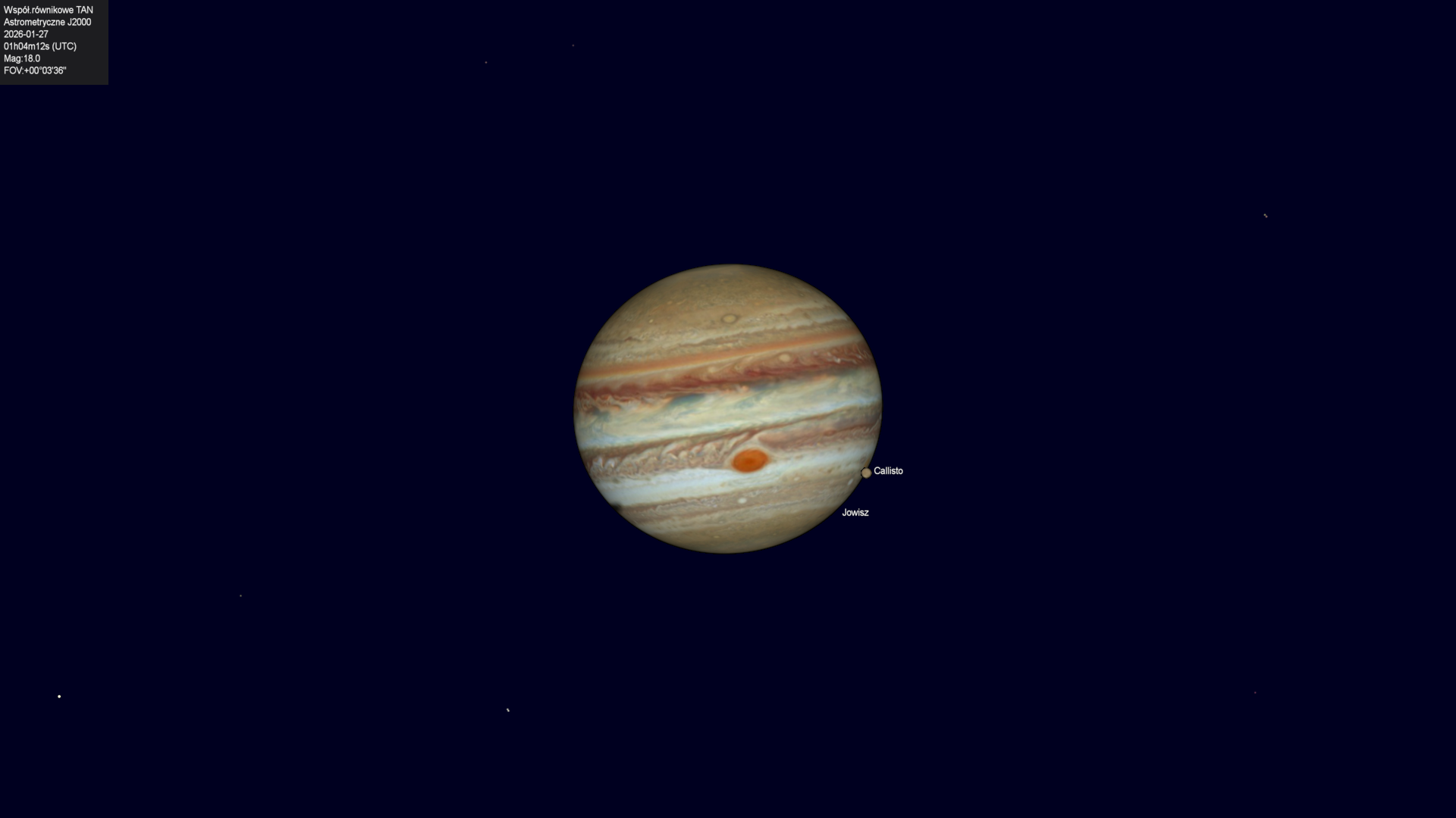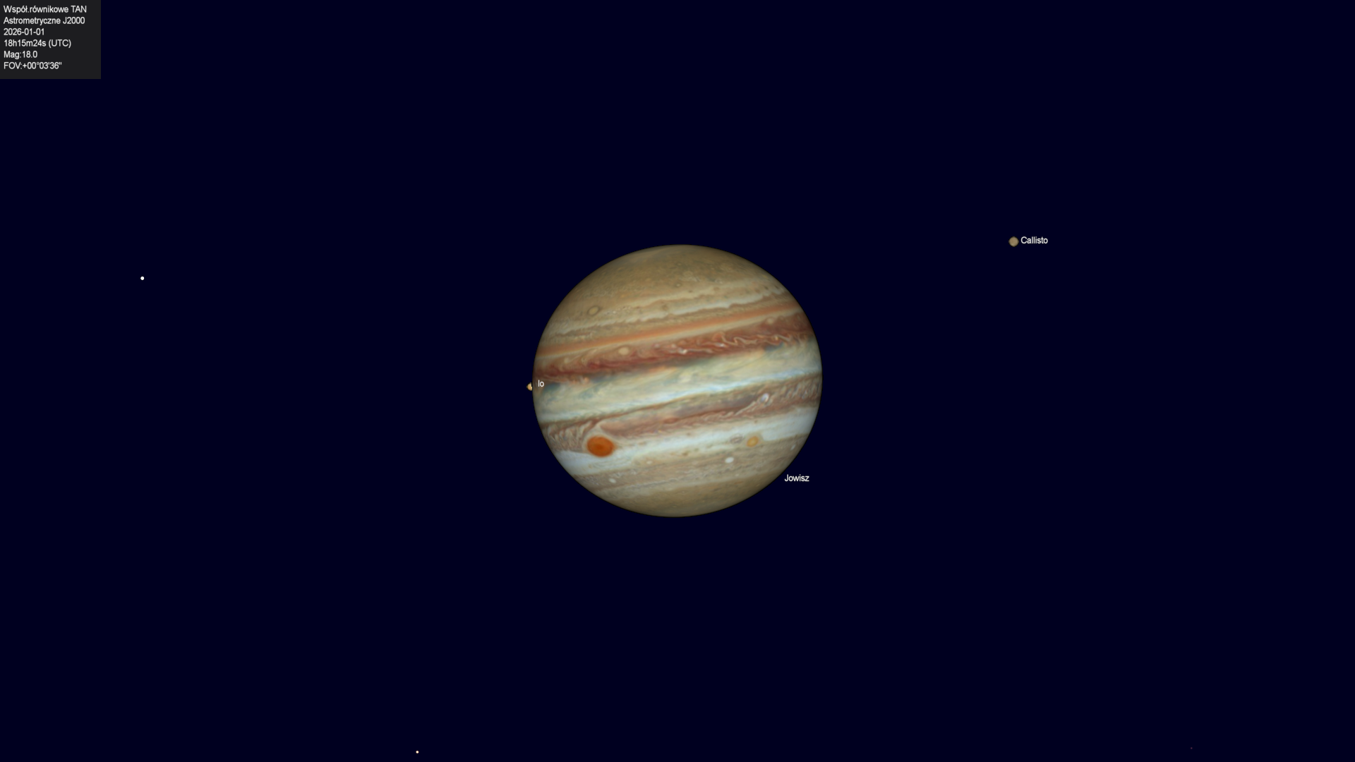 Koniec zakrycia księżyca Kalisto przez tarczę planety.
