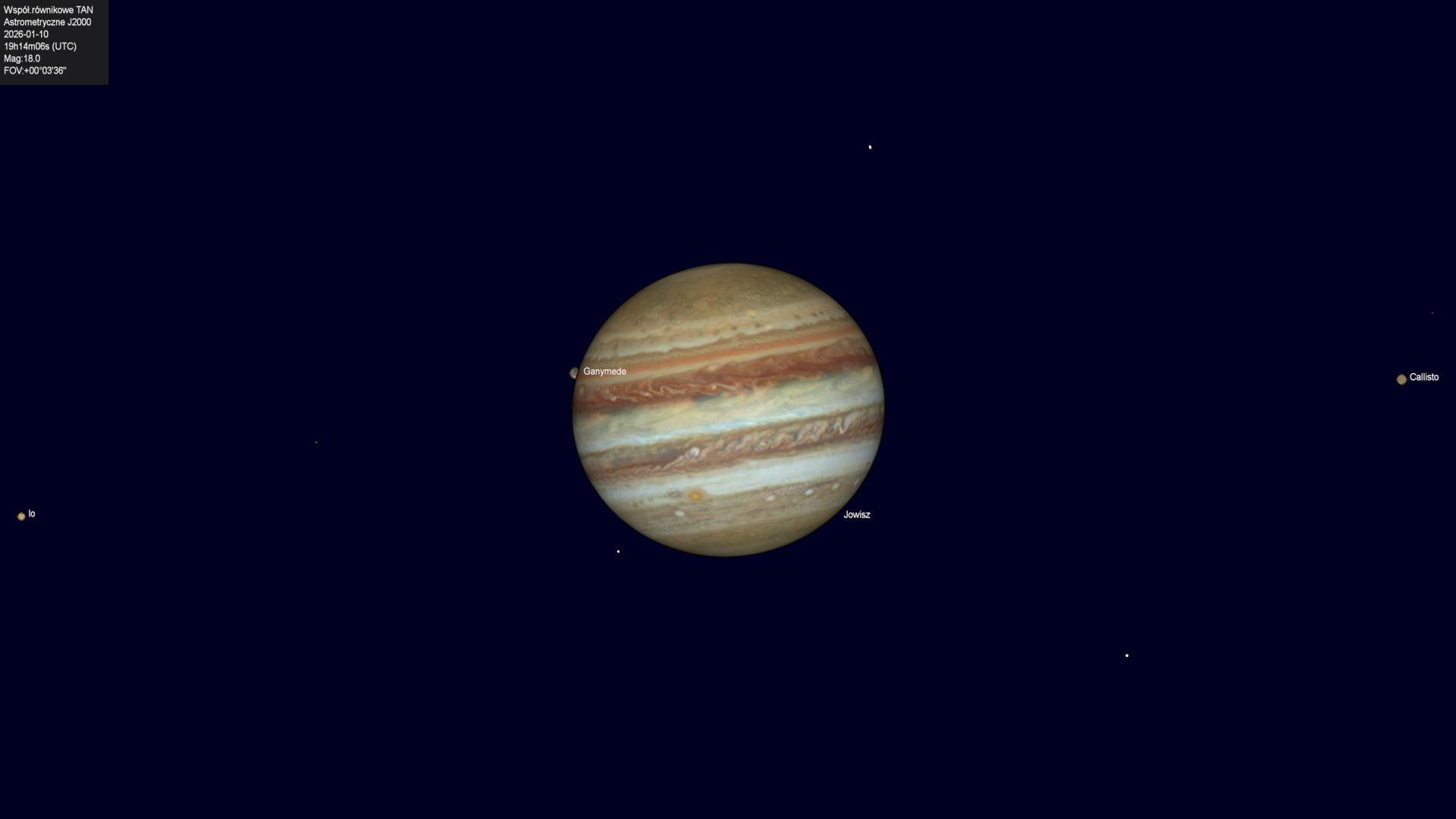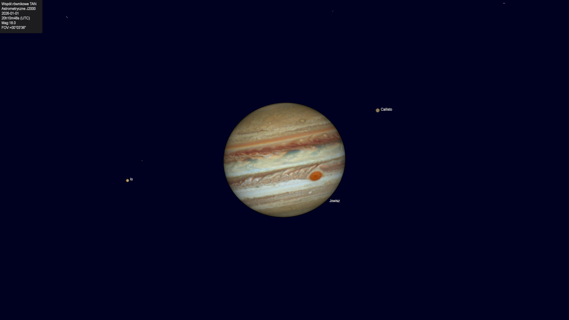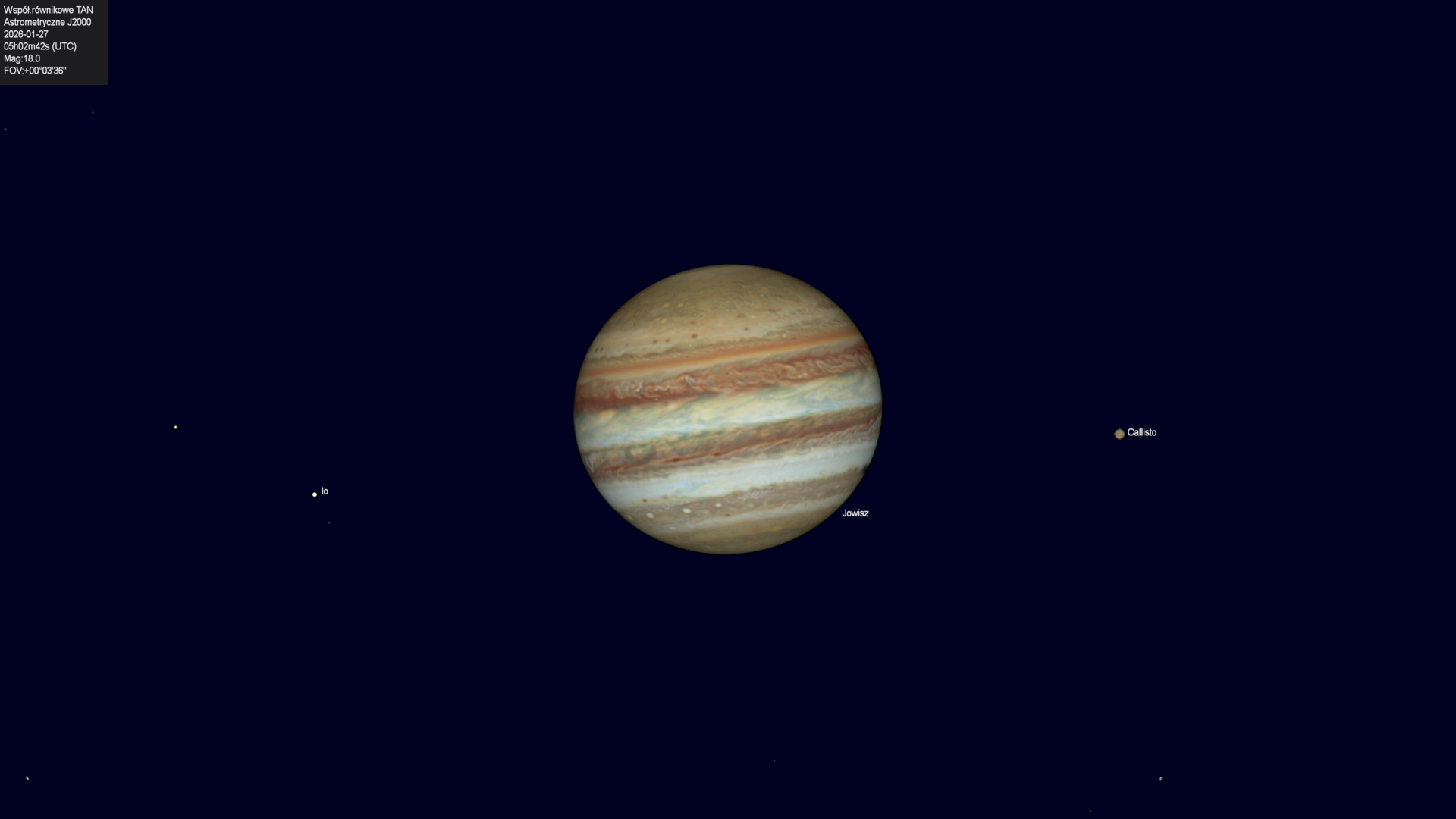 Koniec zakrycia księżyca Kalisto przez tarczę planety.