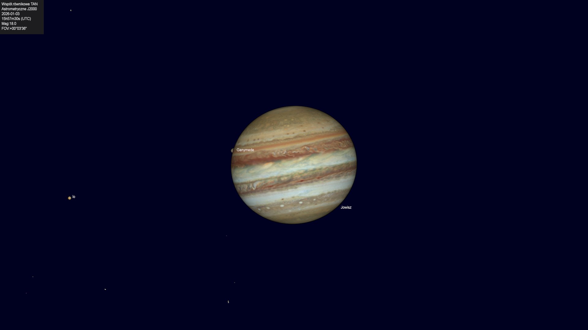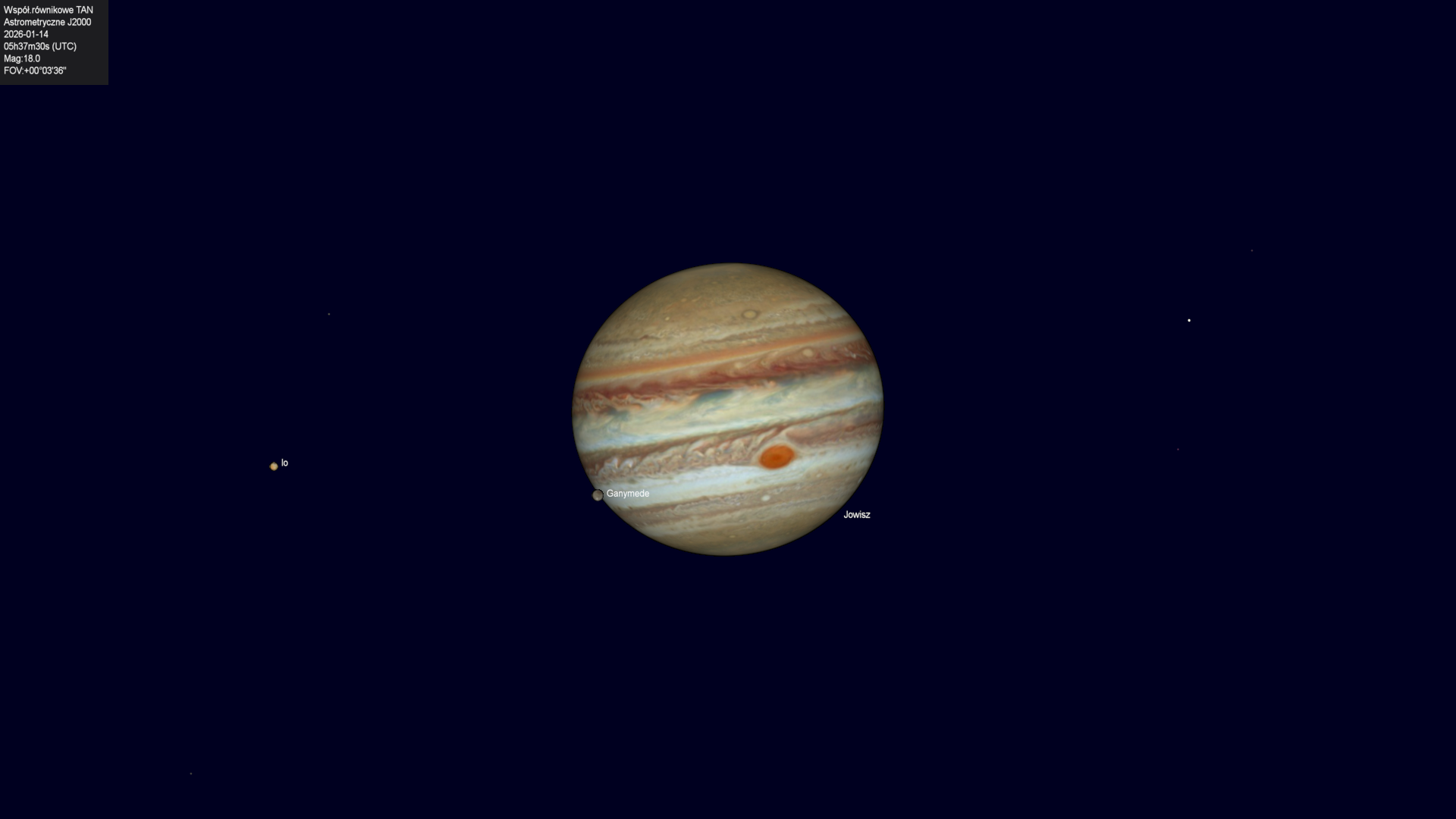 Początek zakrycia księżyca Gaminedesa przez tarczę planety.