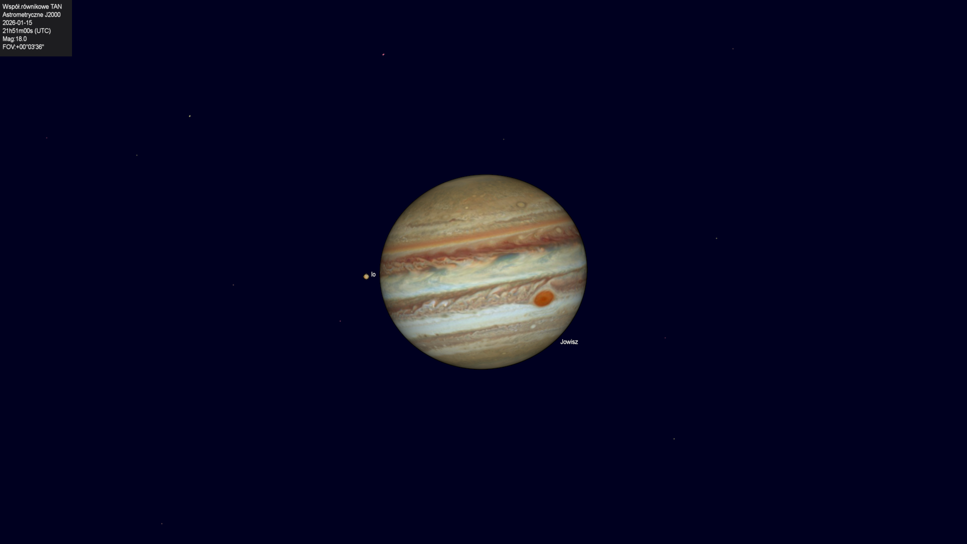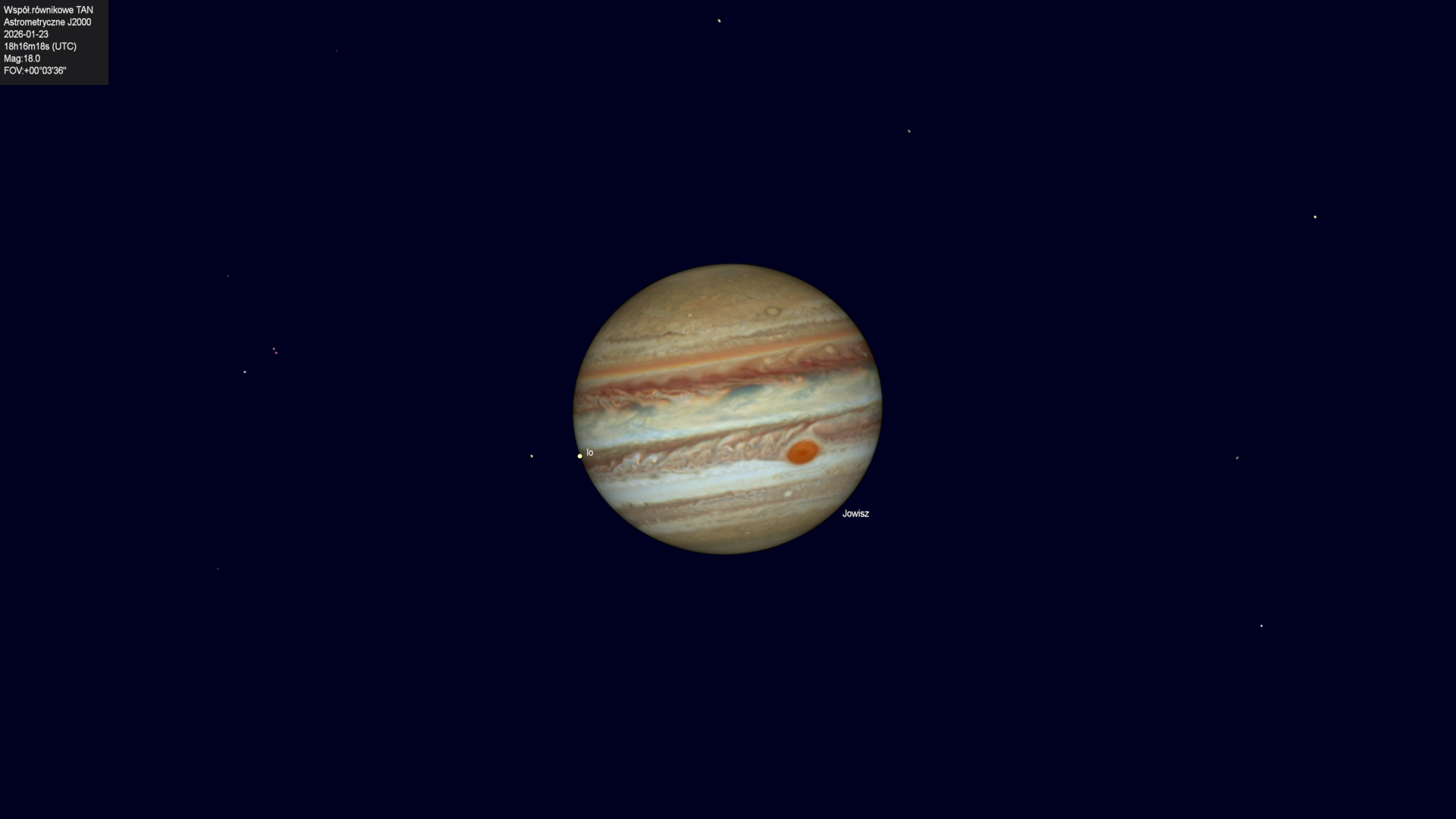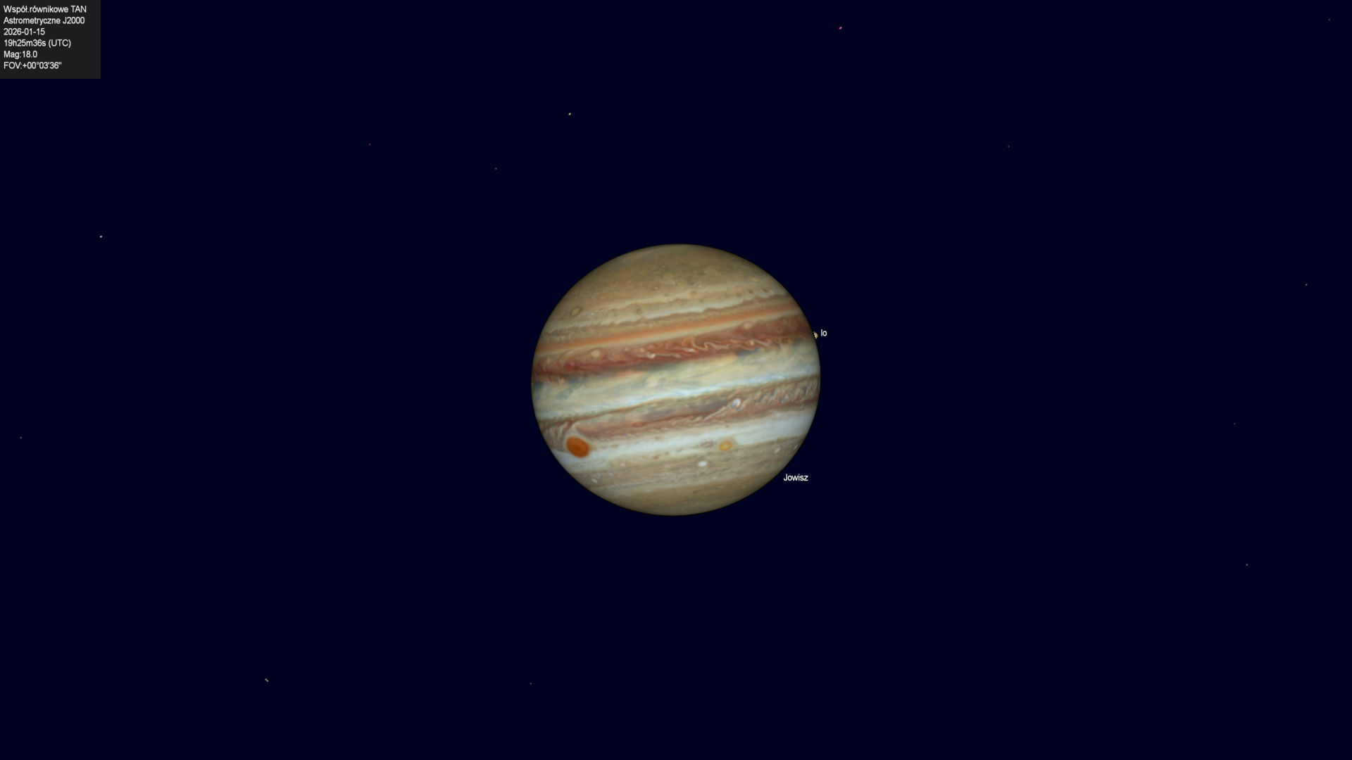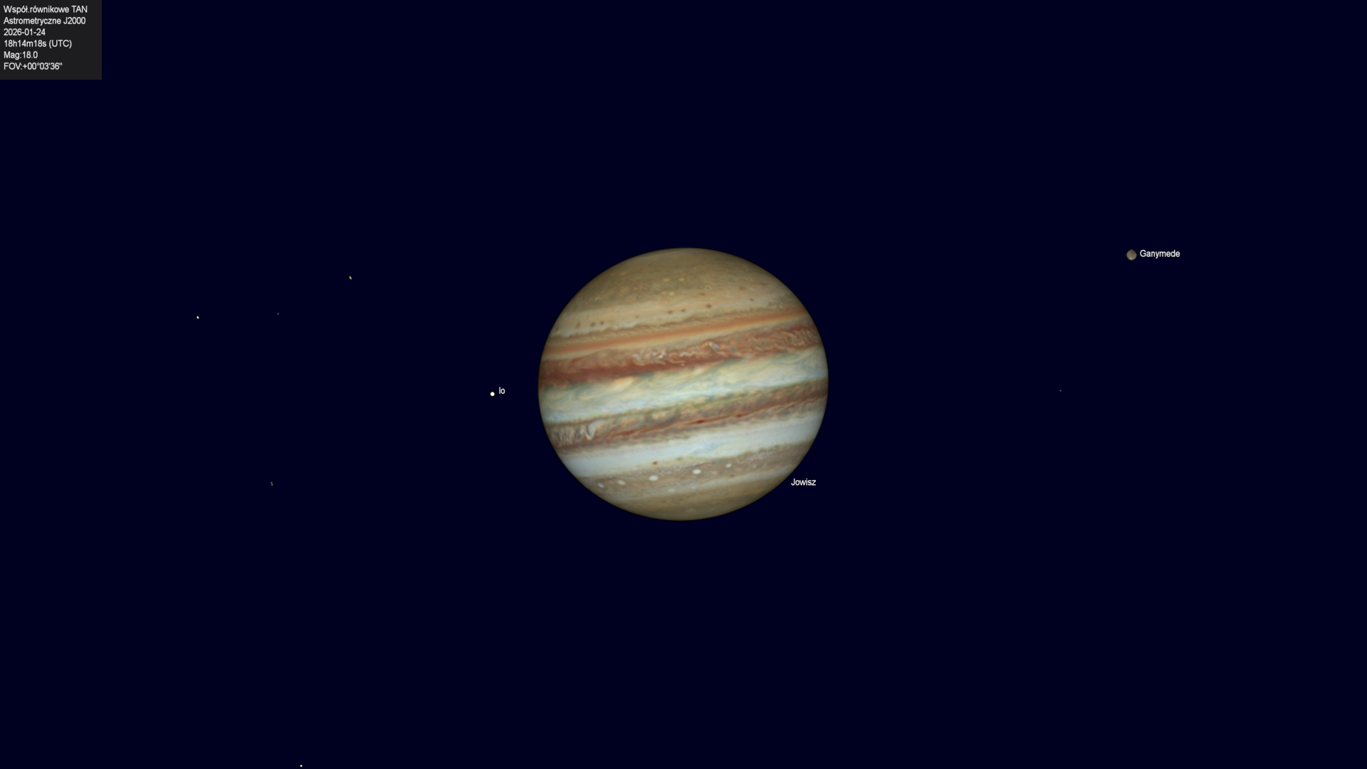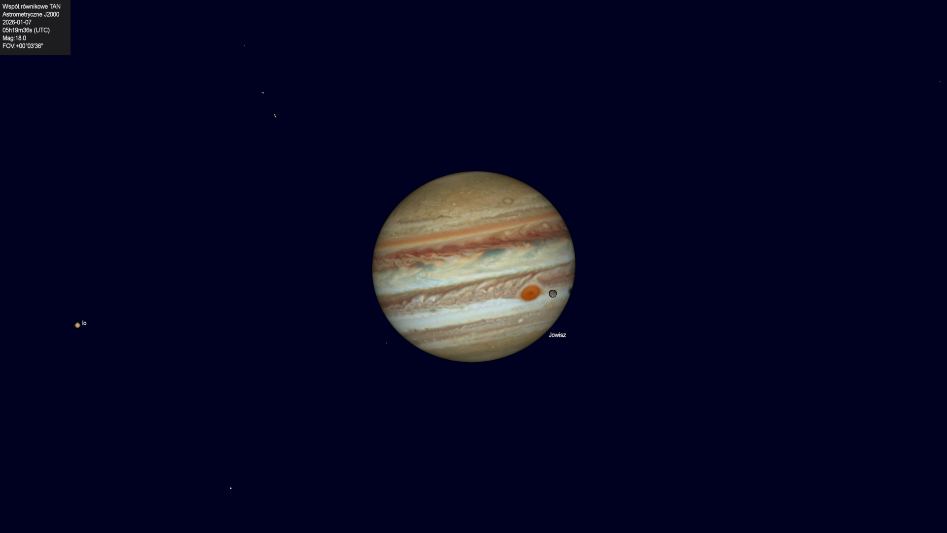Koniec zakrycia księżyca Io przez tarczę planety.