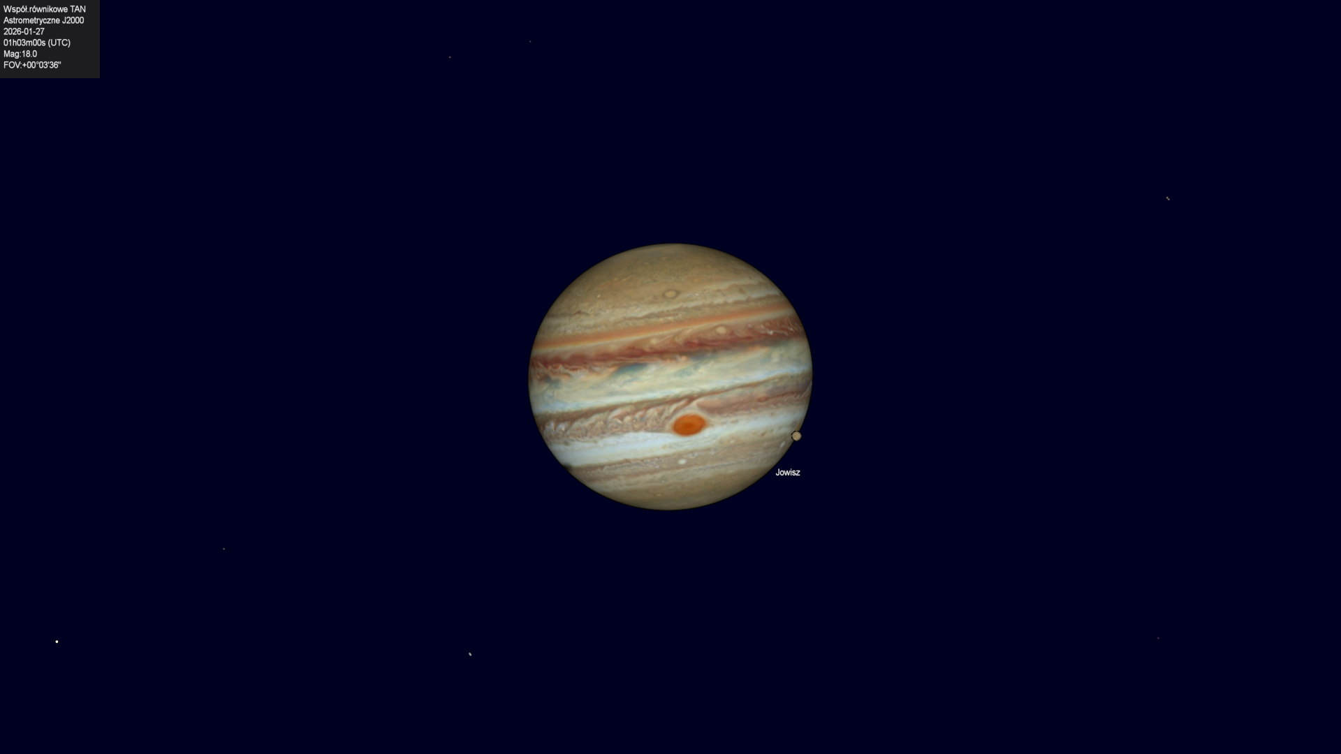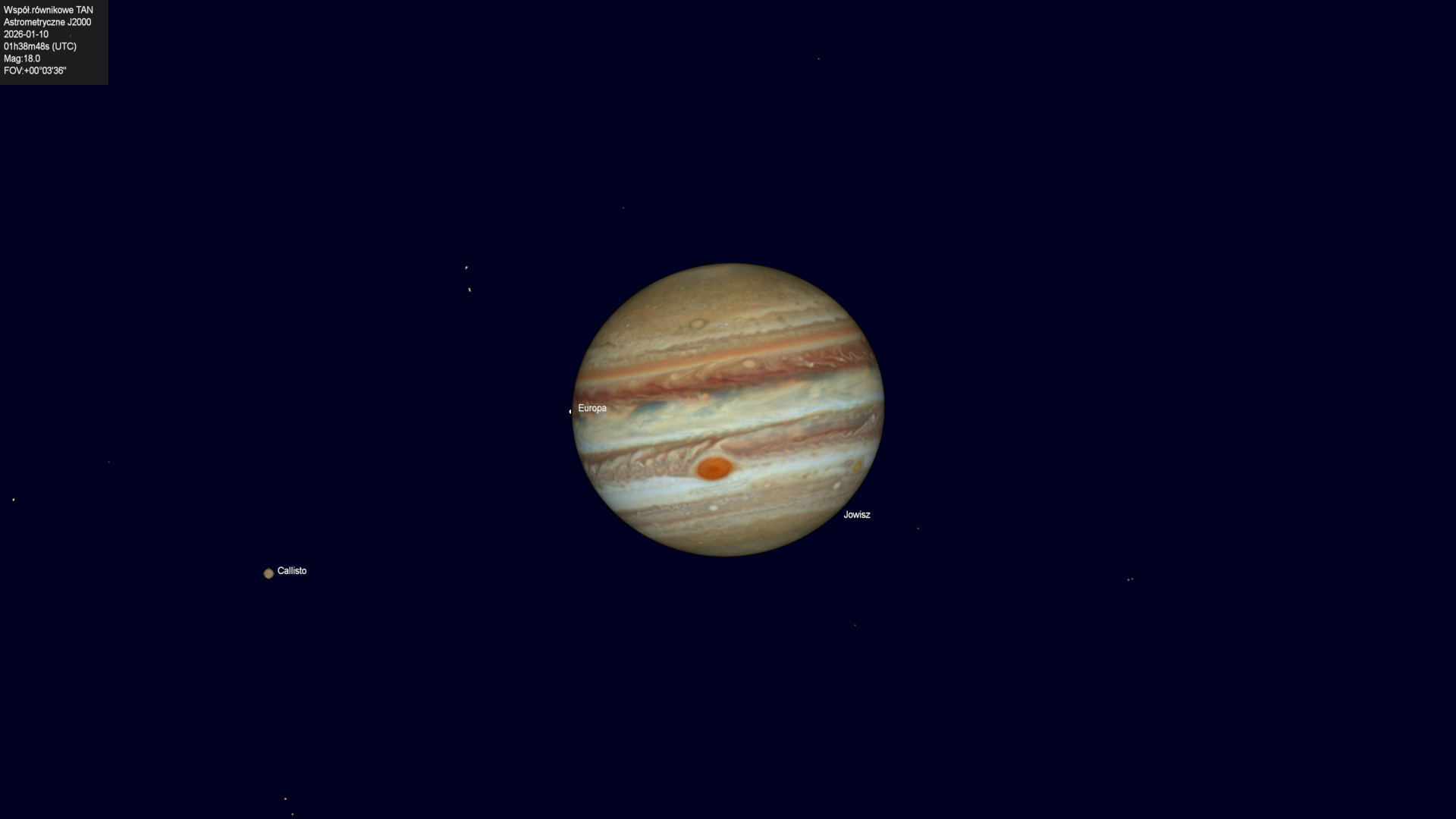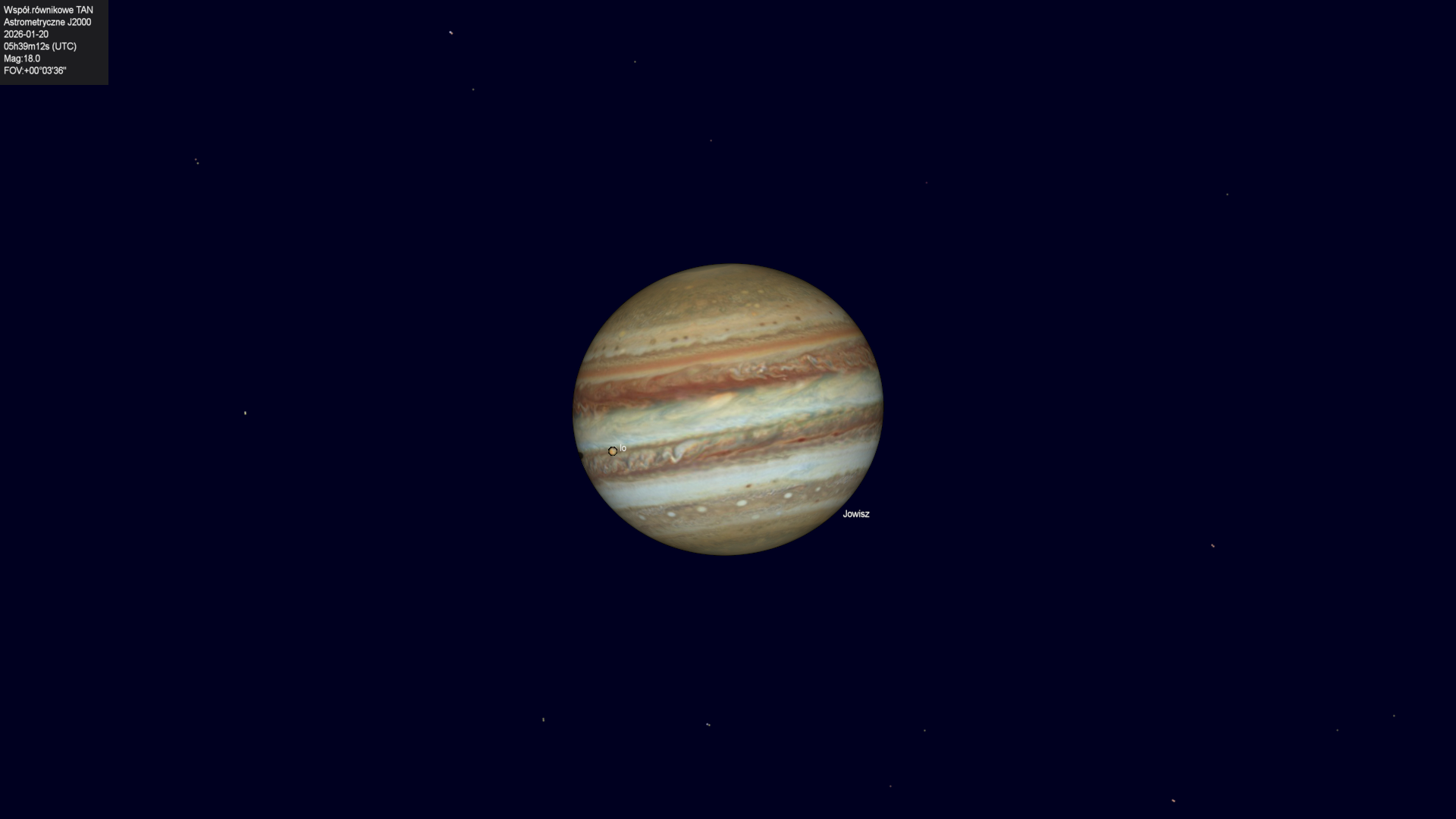 Koniec przejścia cienia księżyca Europy na tle tarczy planety.