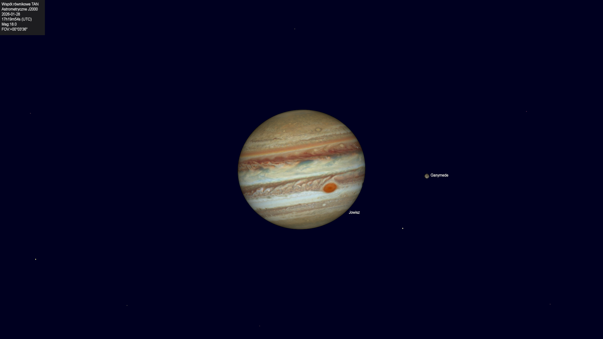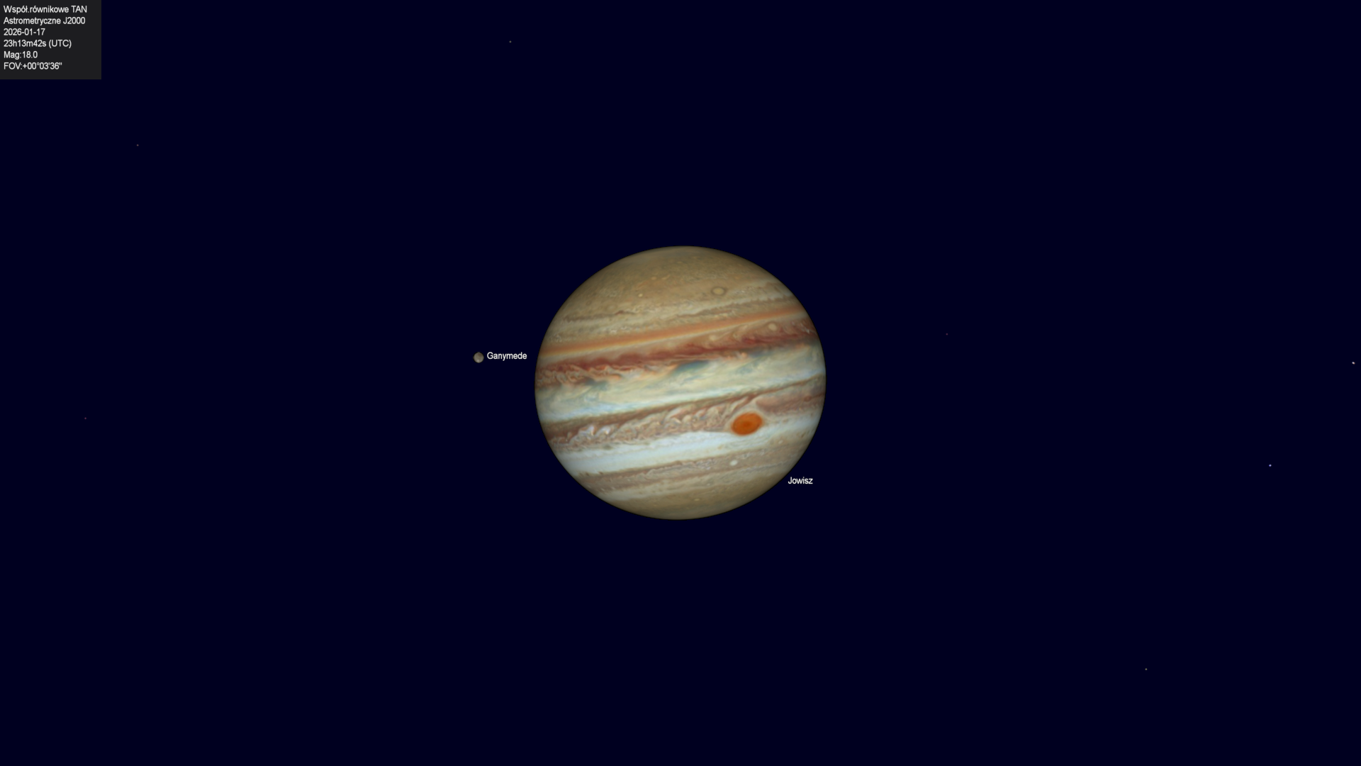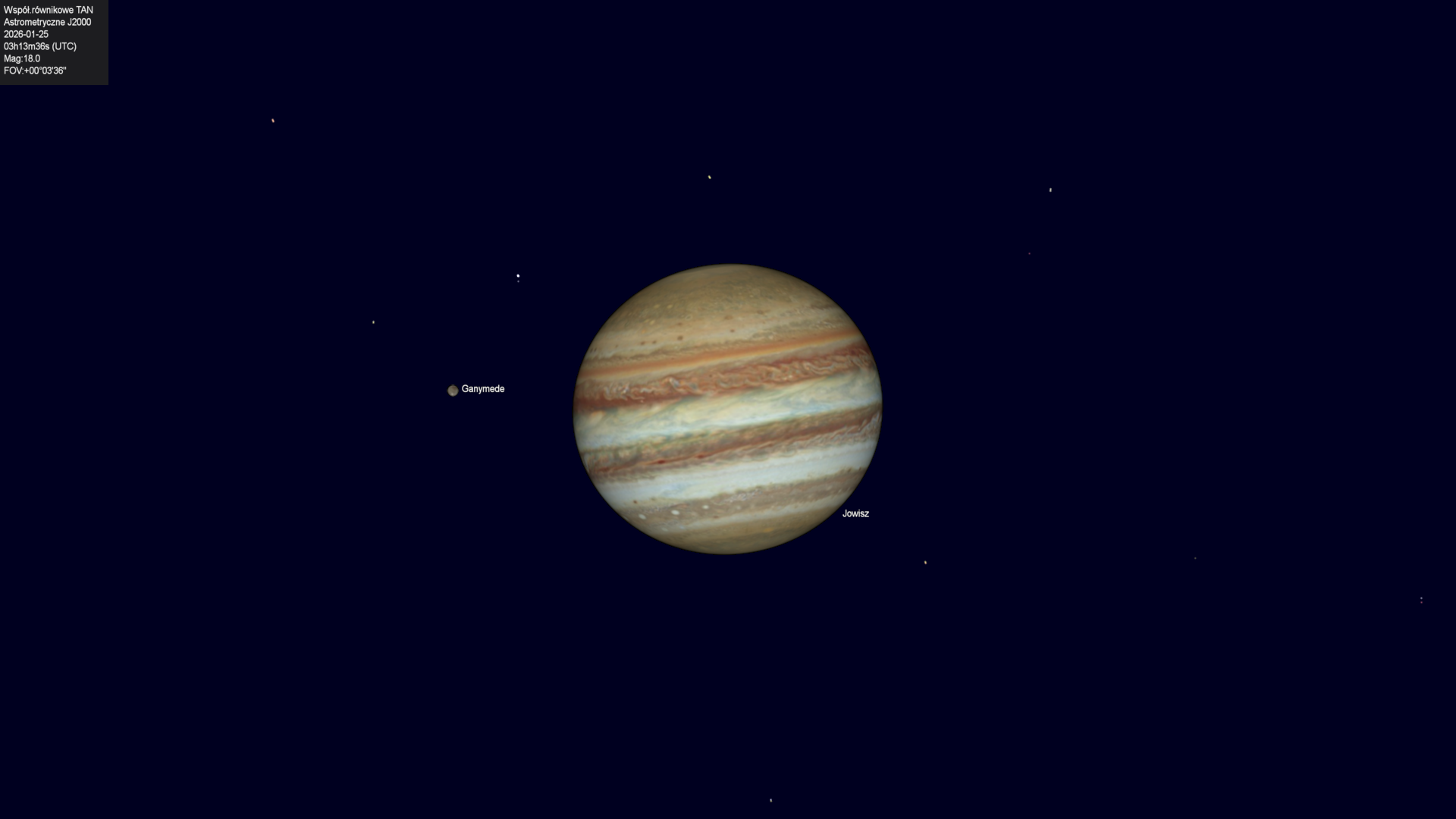 Koniec zakrycia księżyca Gaminedesa przez tarczę planety.