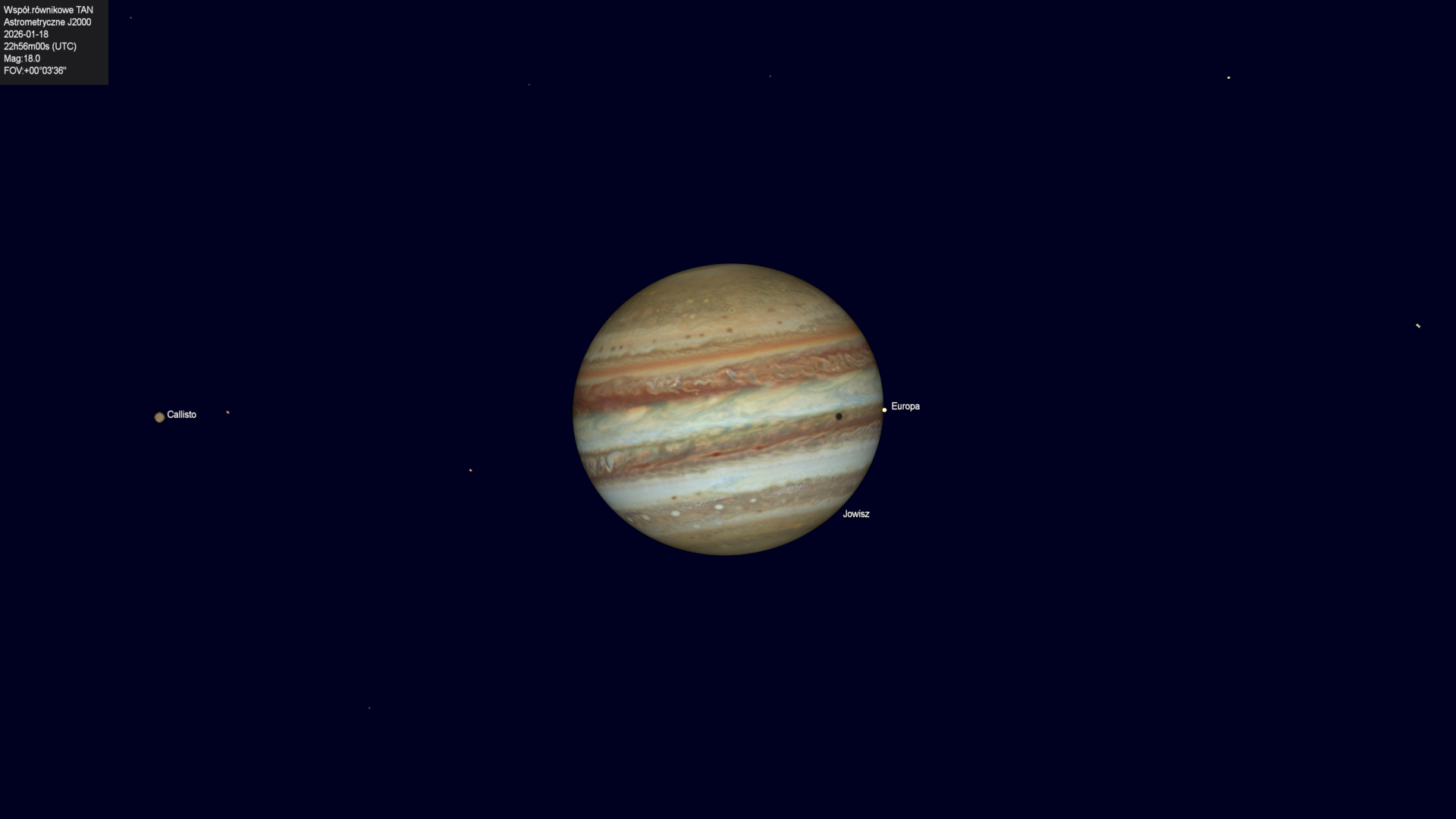 Koniec zaćmienia księżyca Europy przez cień planety.