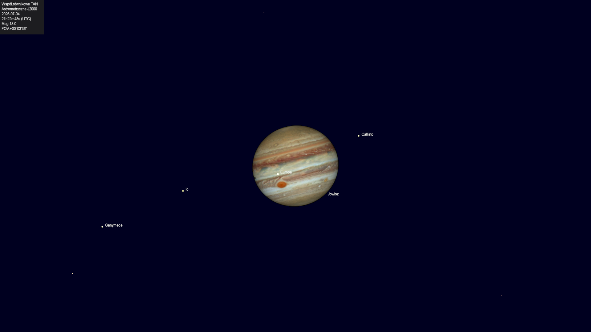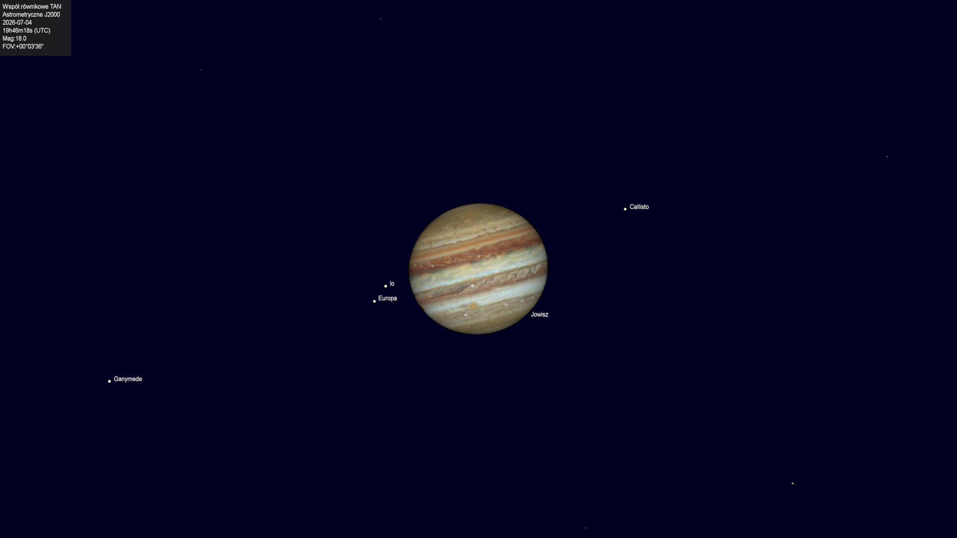 Początek zakrycia księżyca Kalisto przez tarczę planety.
