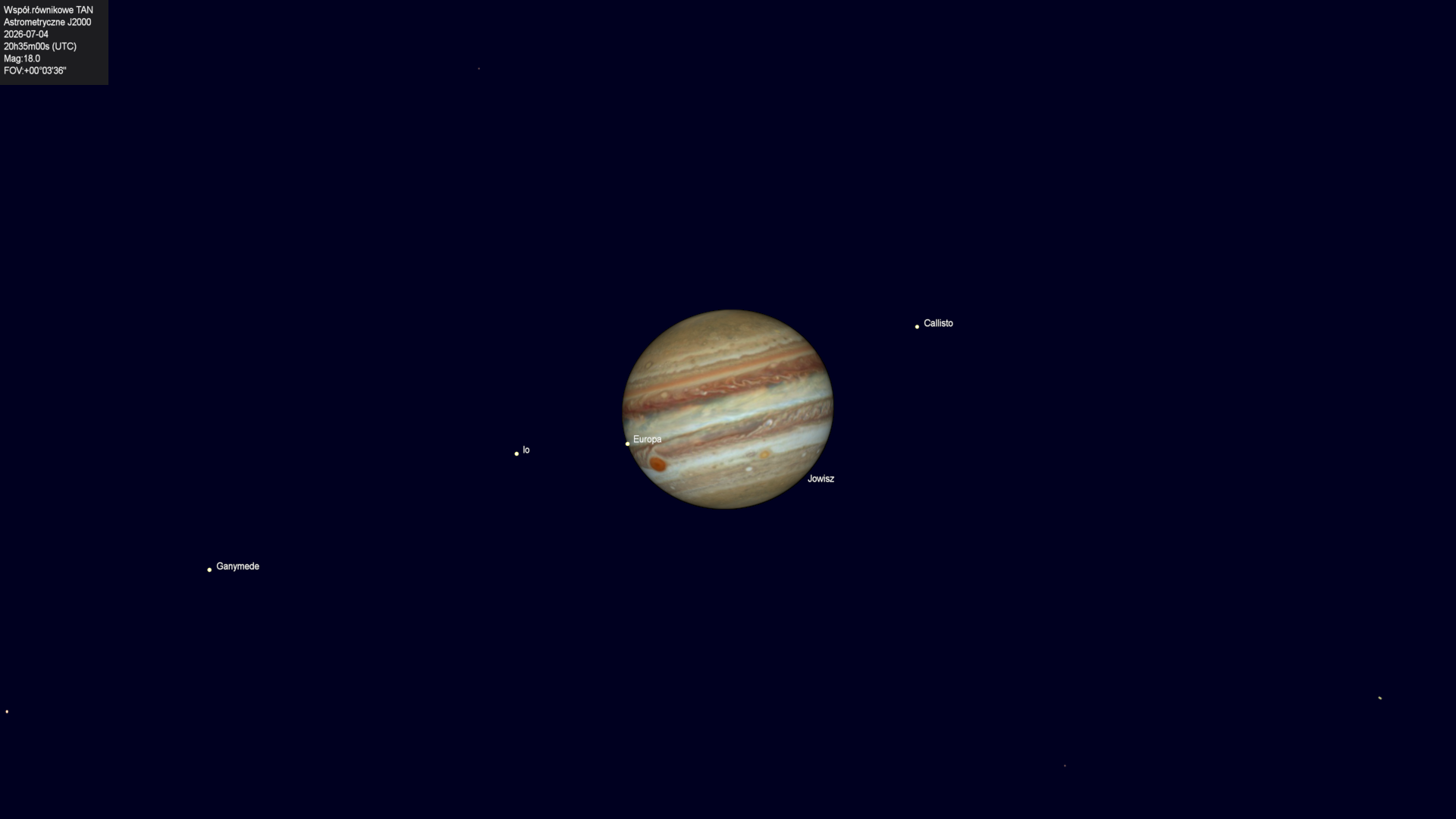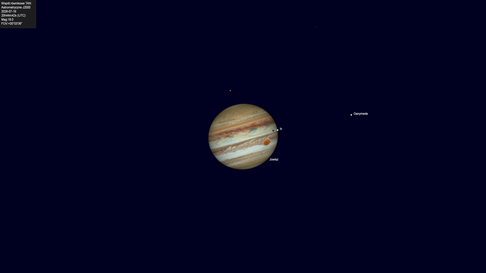 Koniec przejścia księżyca Io na tle tarczy planety.