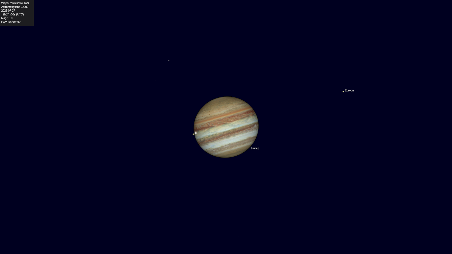 Początek przejścia księżyca Europy na tle tarczy planety.
