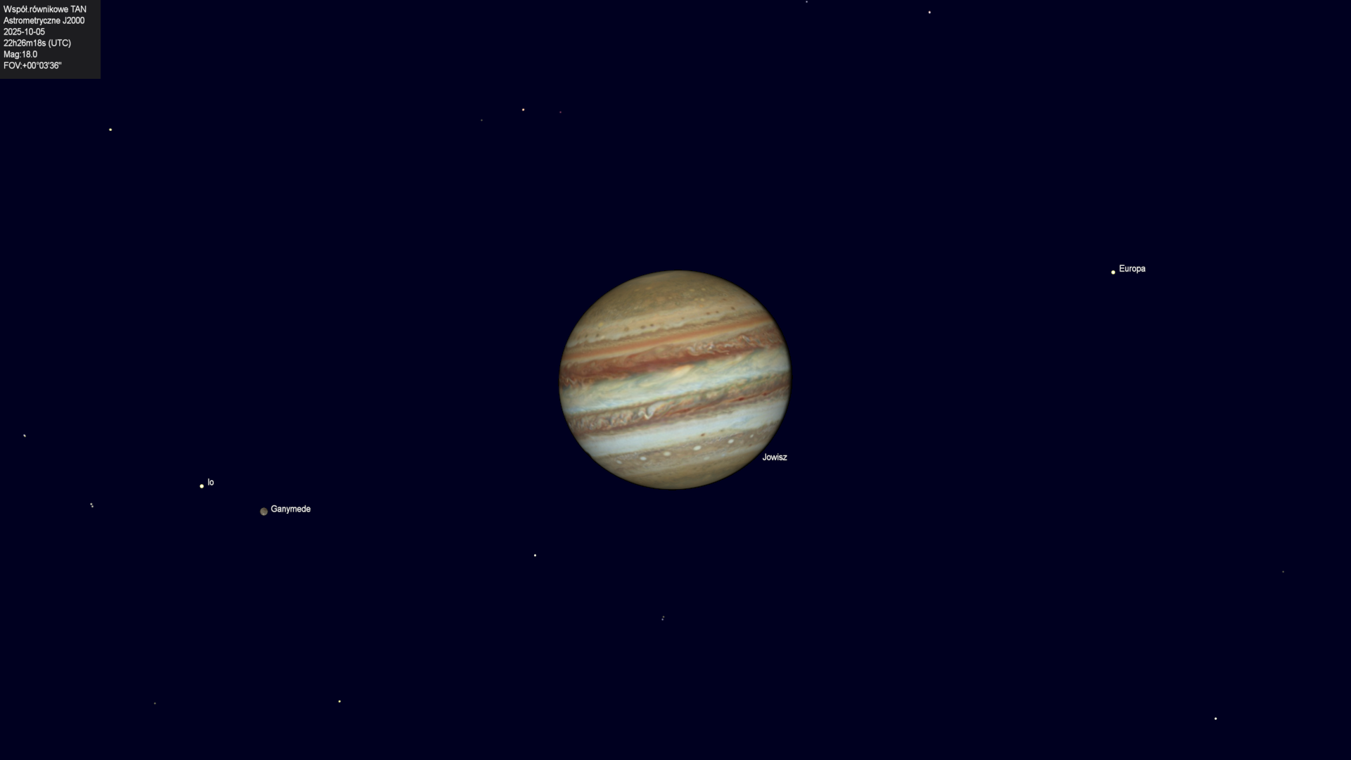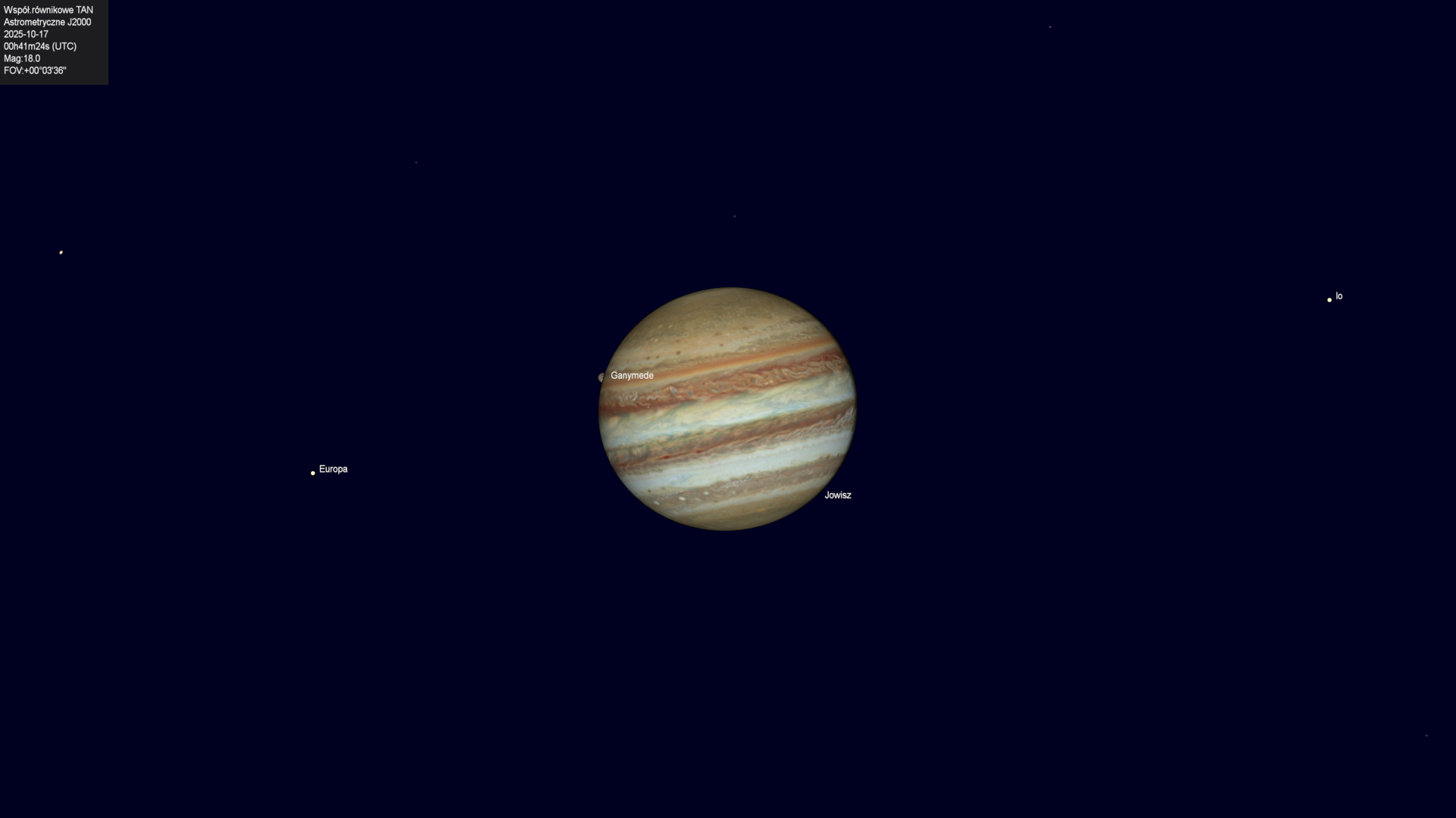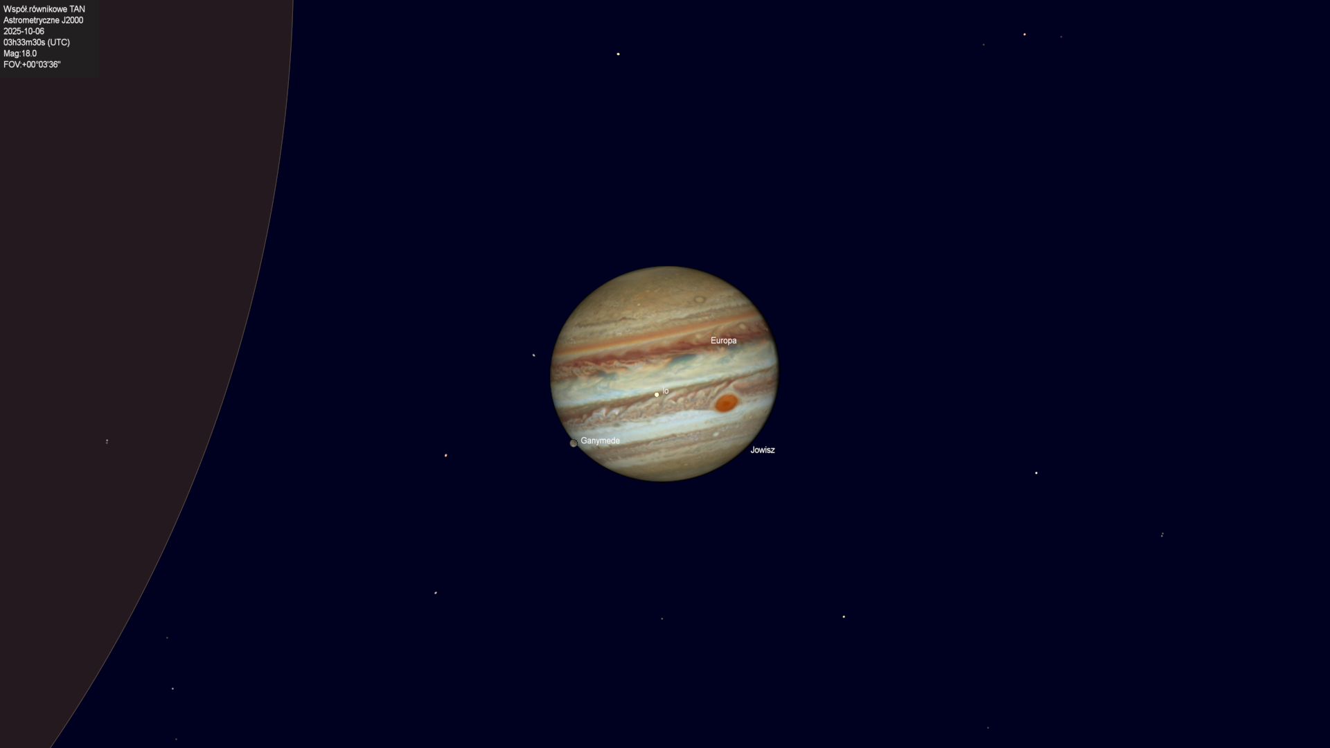Koniec zakrycia księżyca Gaminedesa przez tarczę planety.
