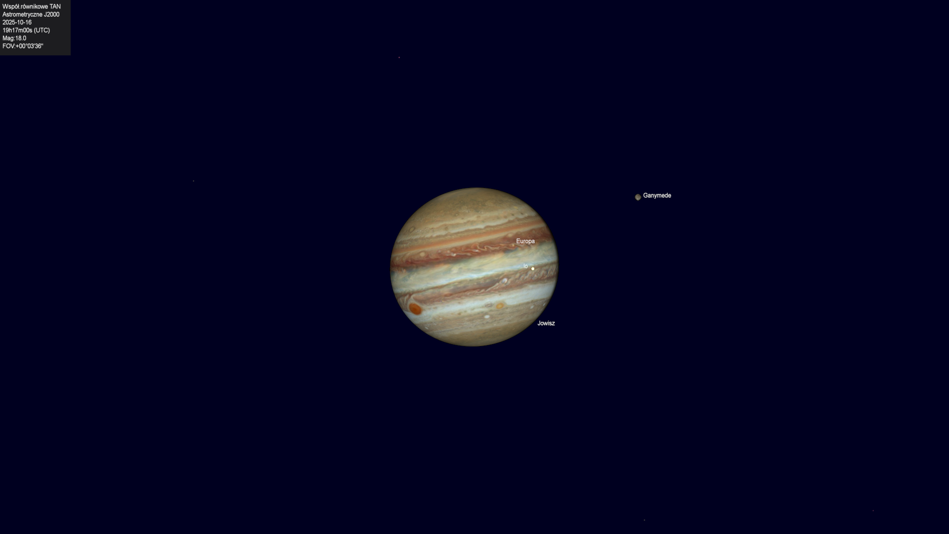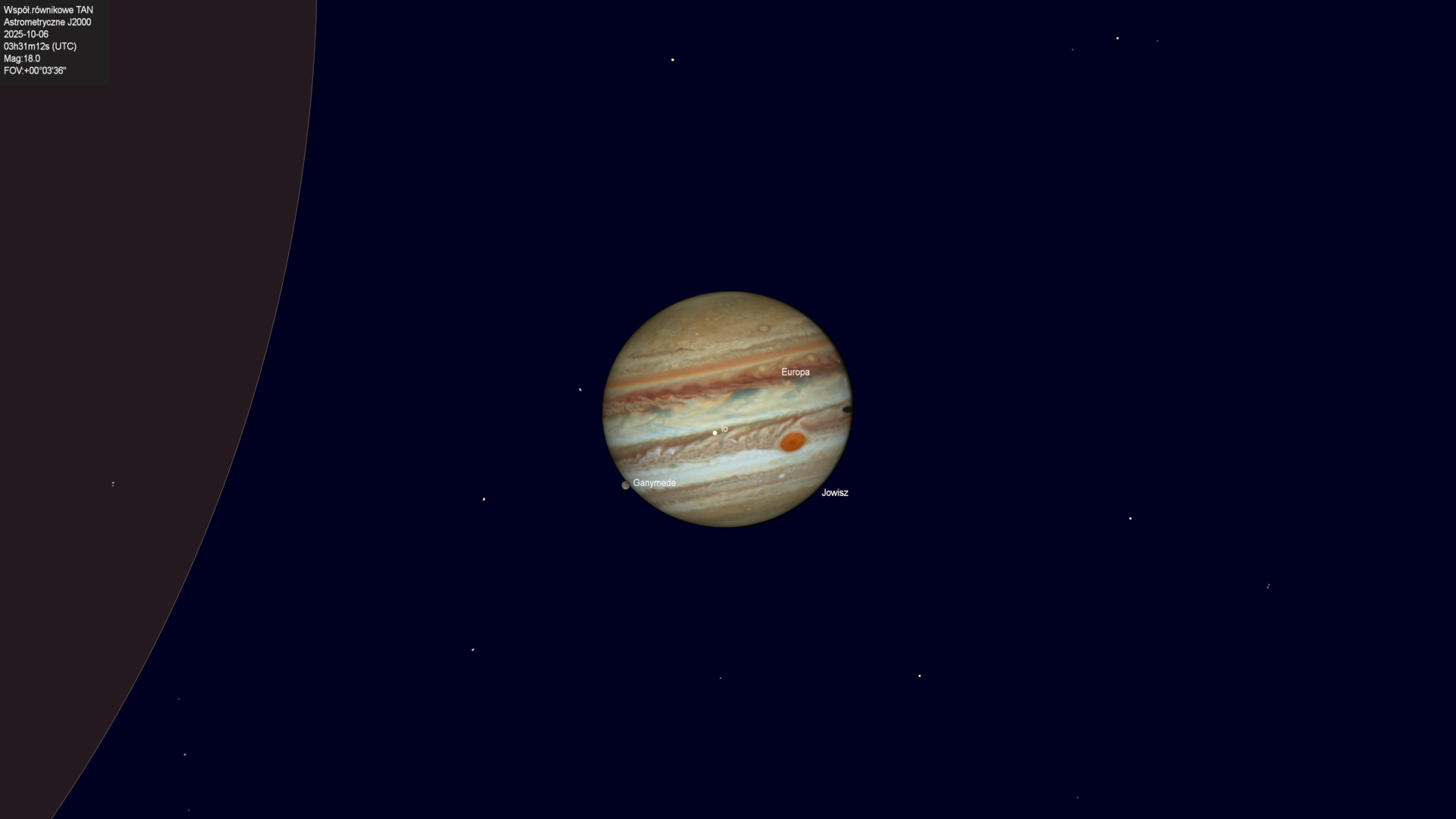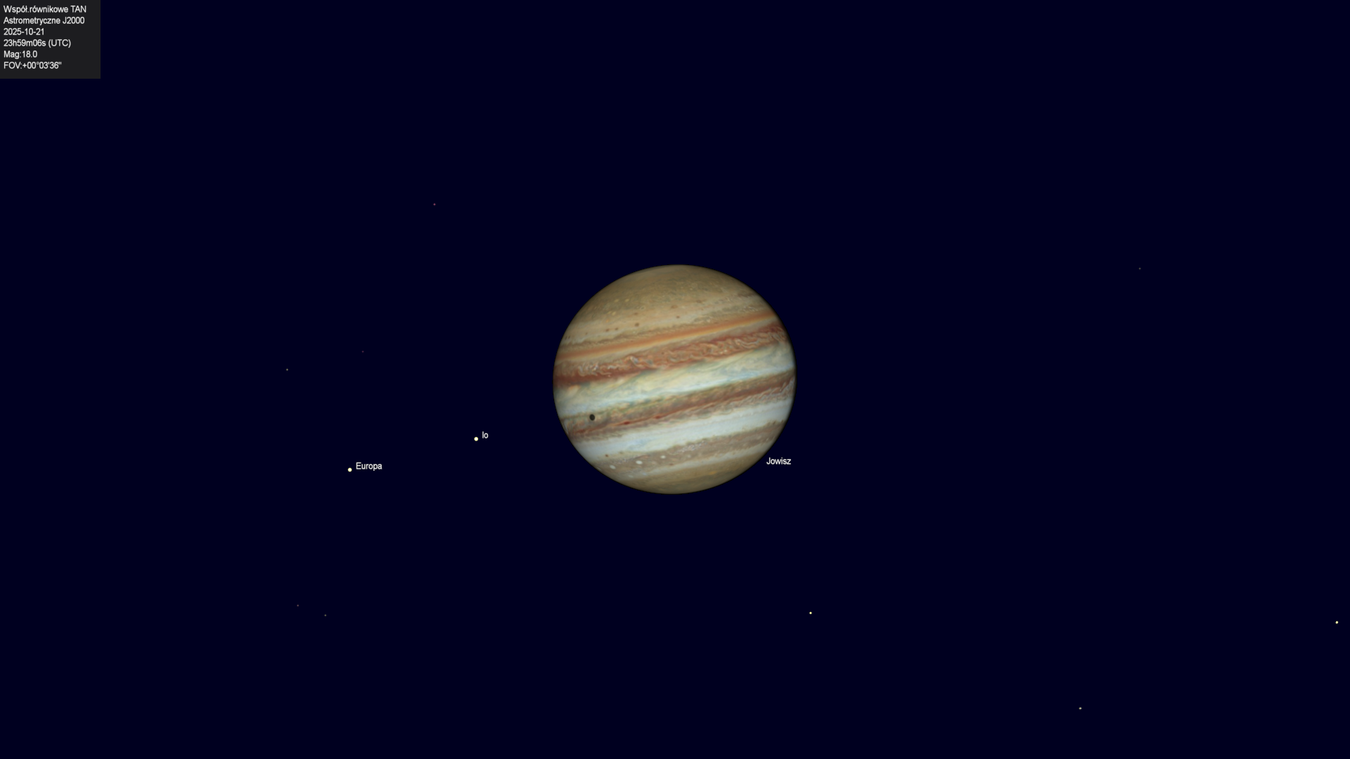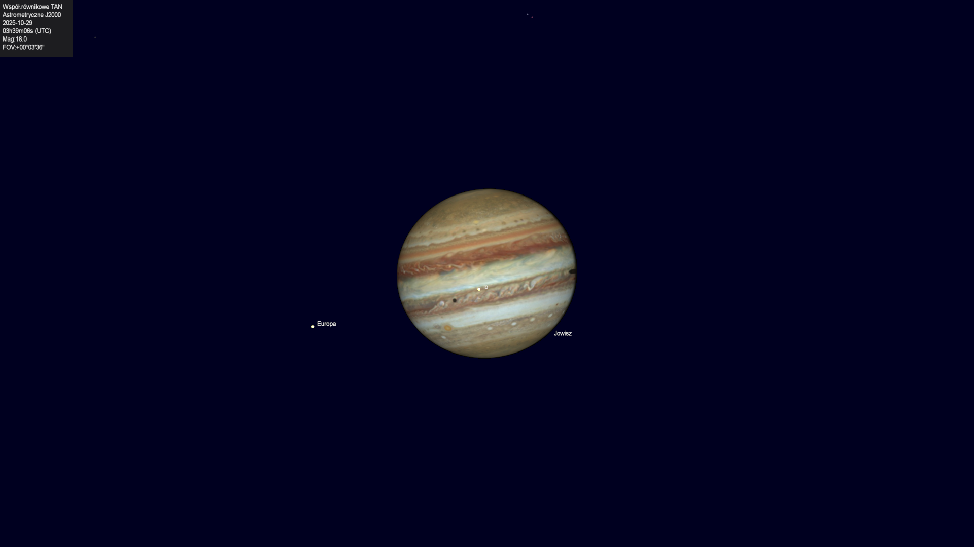 Koniec zakrycia księżyca Europy przez tarczę planety.