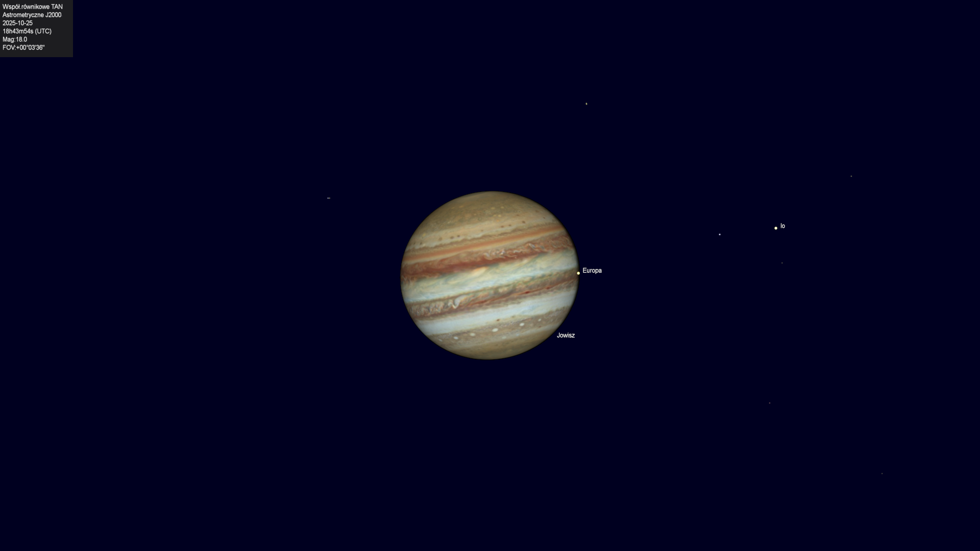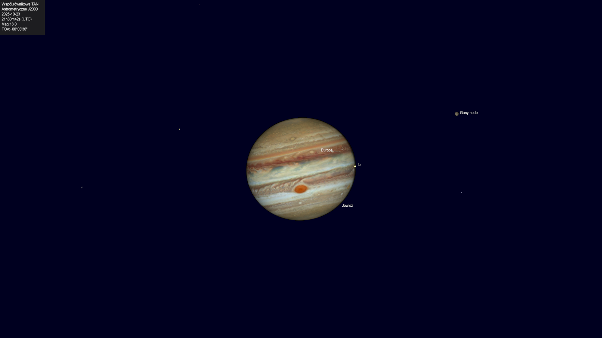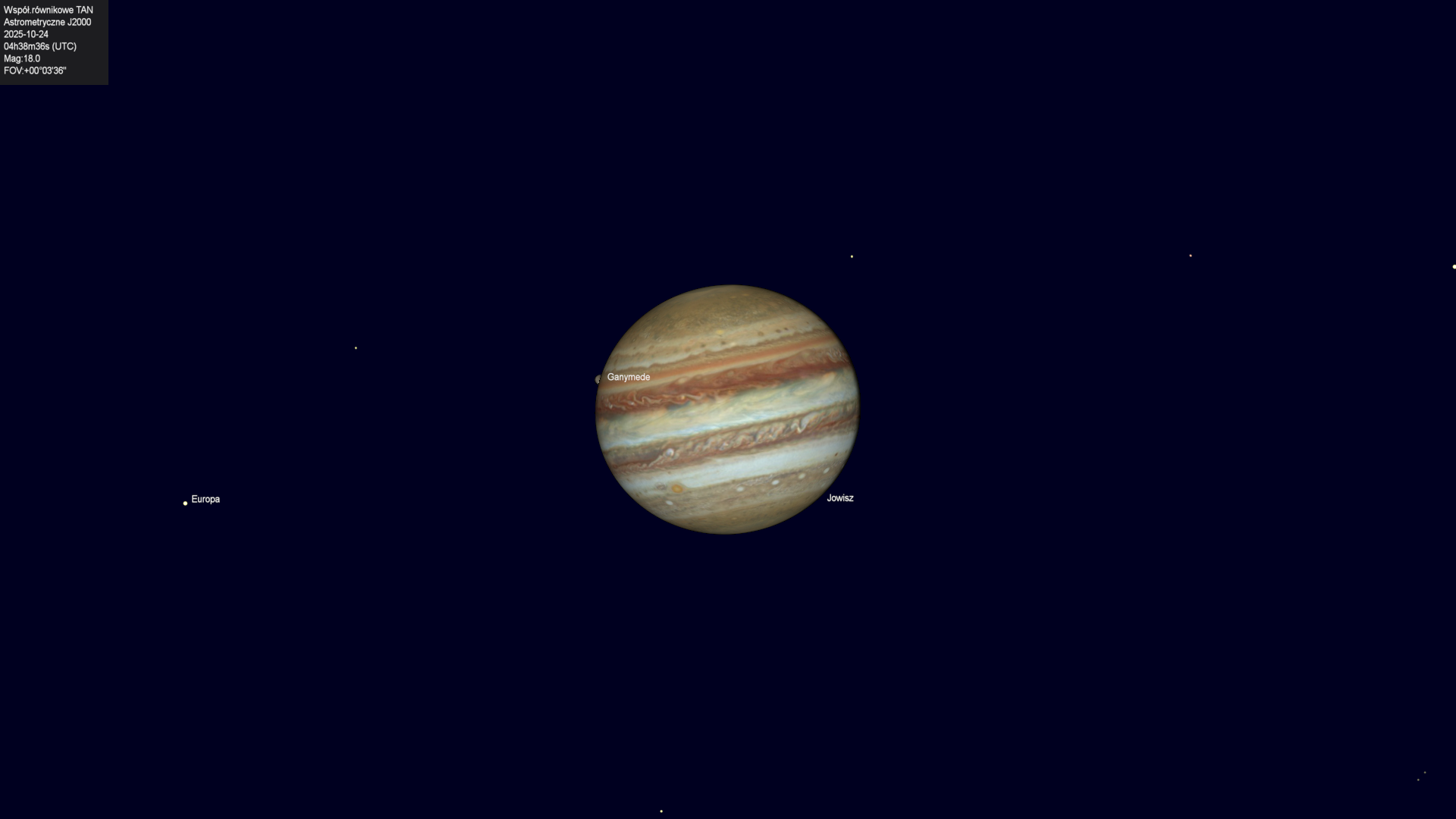 Koniec zakrycia księżyca Europy przez tarczę planety.