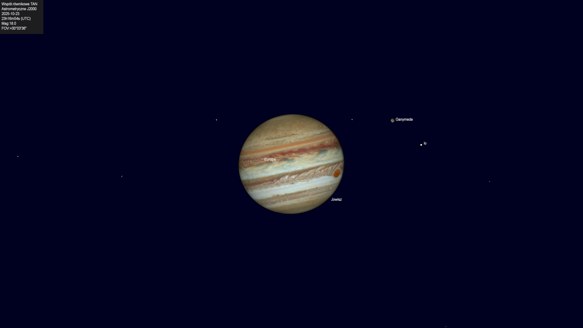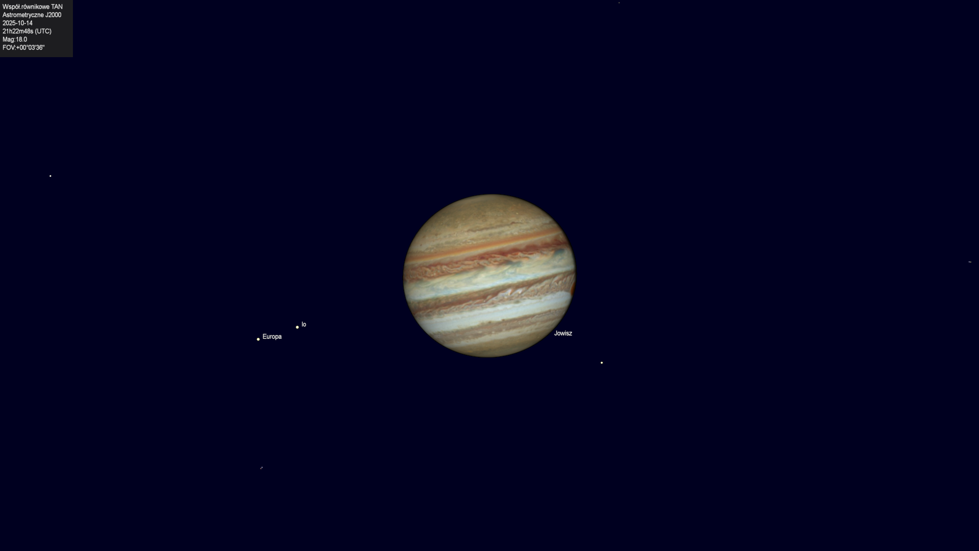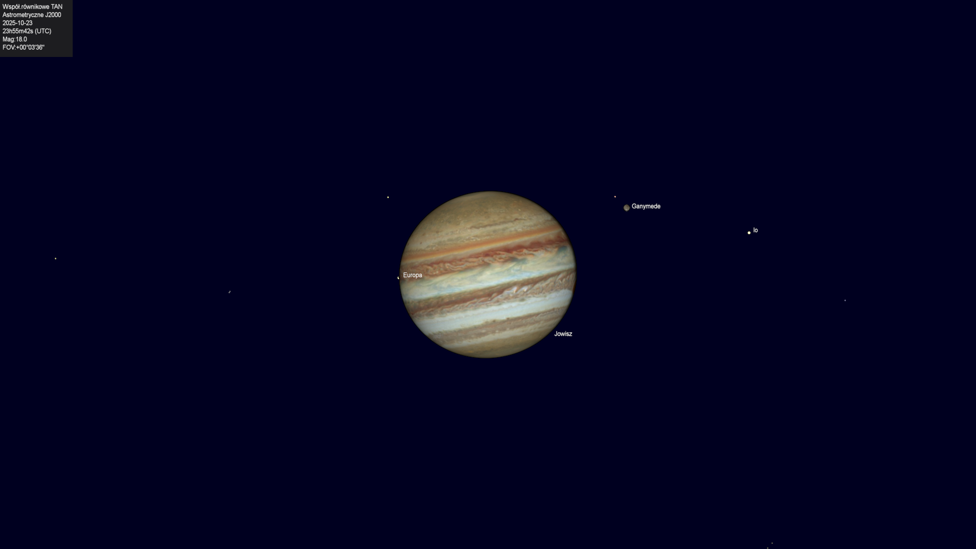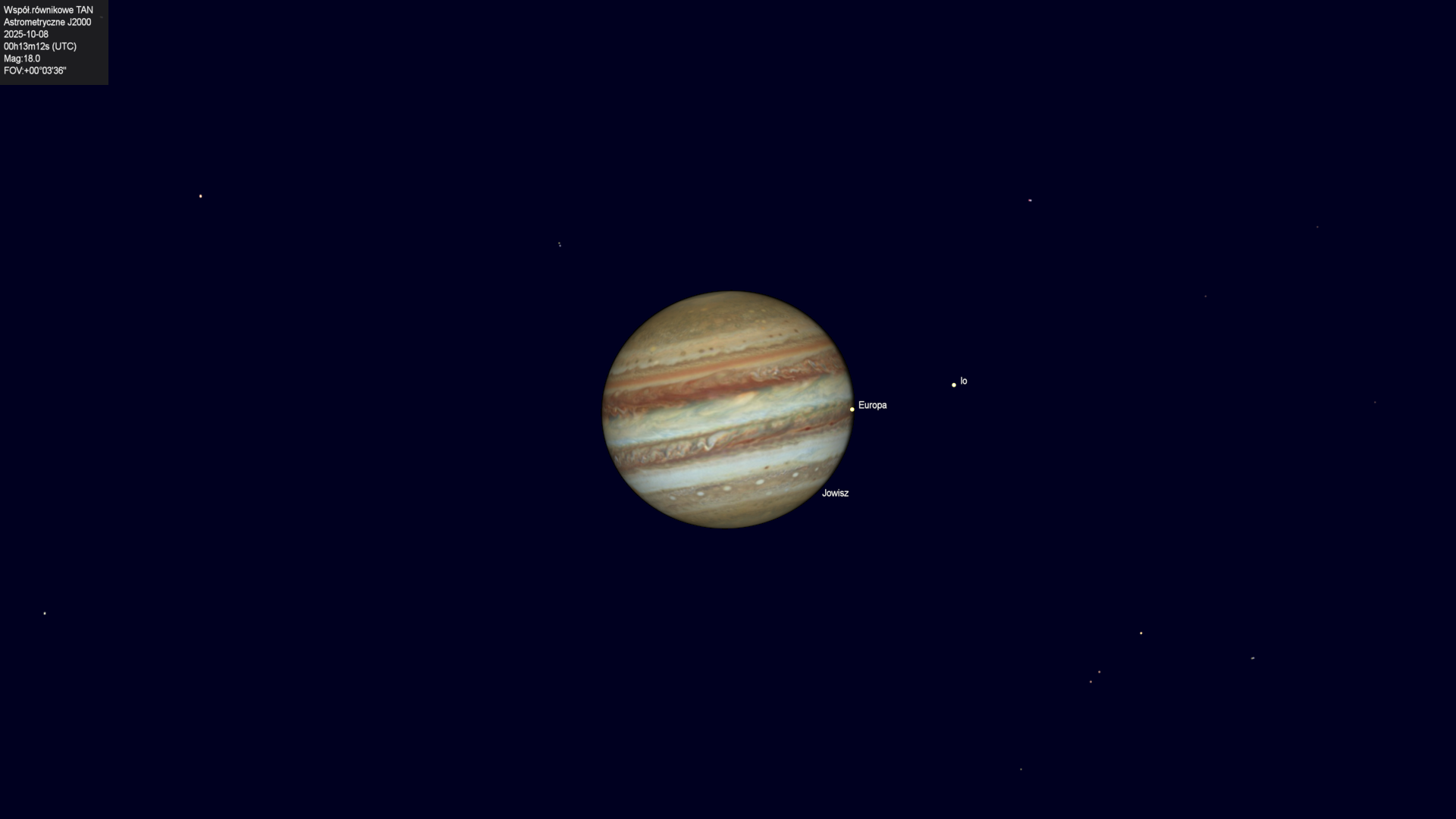Koniec zakrycia księżyca Europy przez tarczę planety.
