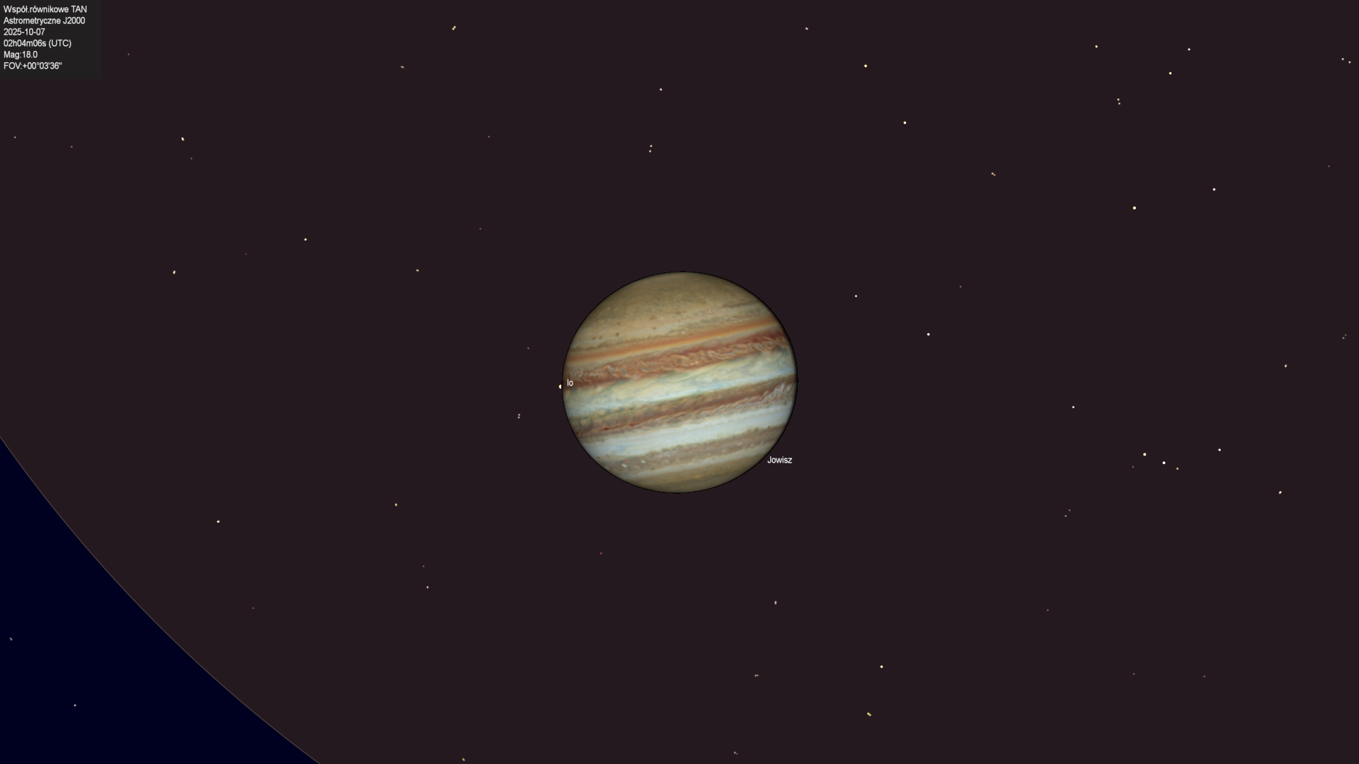 Koniec zakrycia księżyca Io przez tarczę planety.