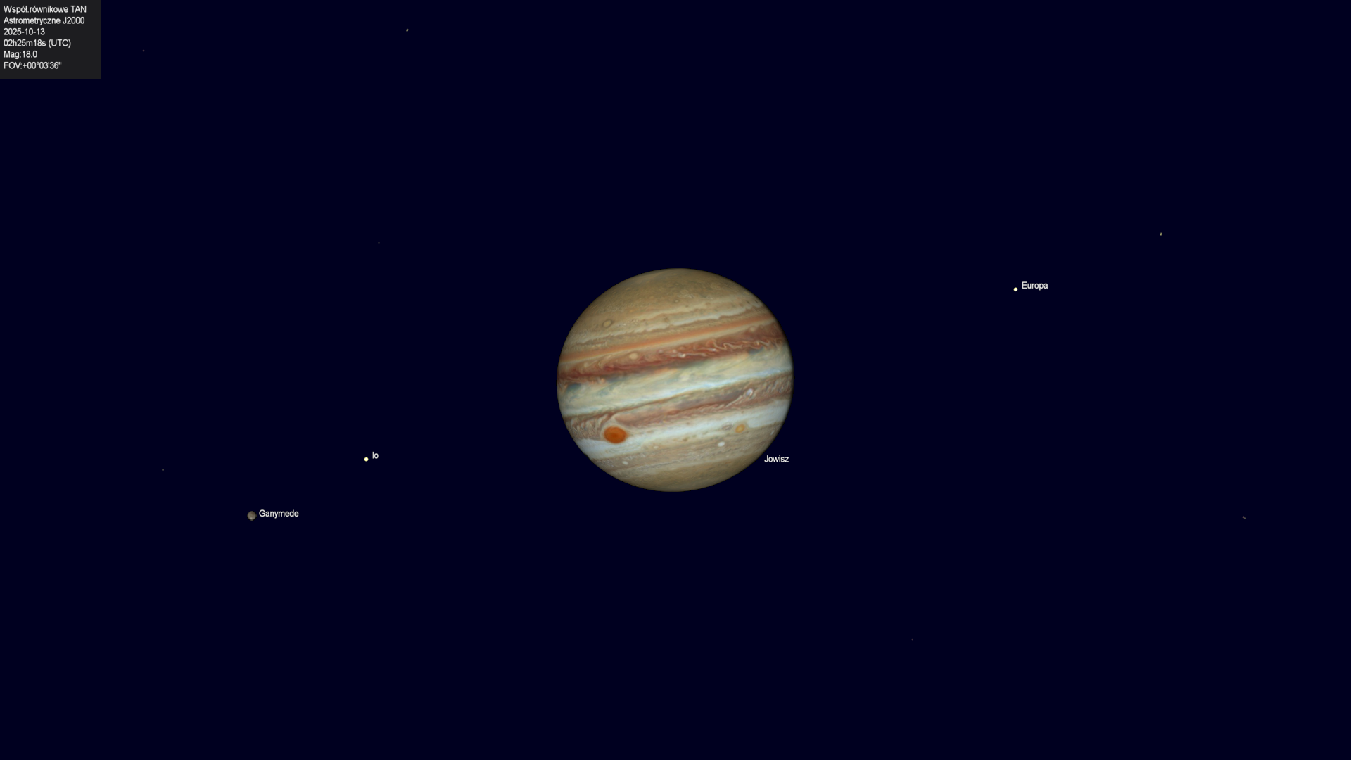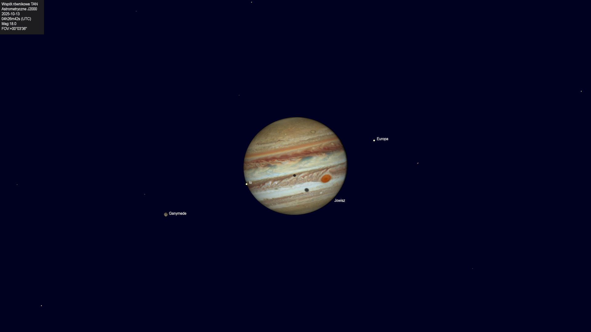 Początek zakrycia księżyca Gaminedesa przez tarczę planety.