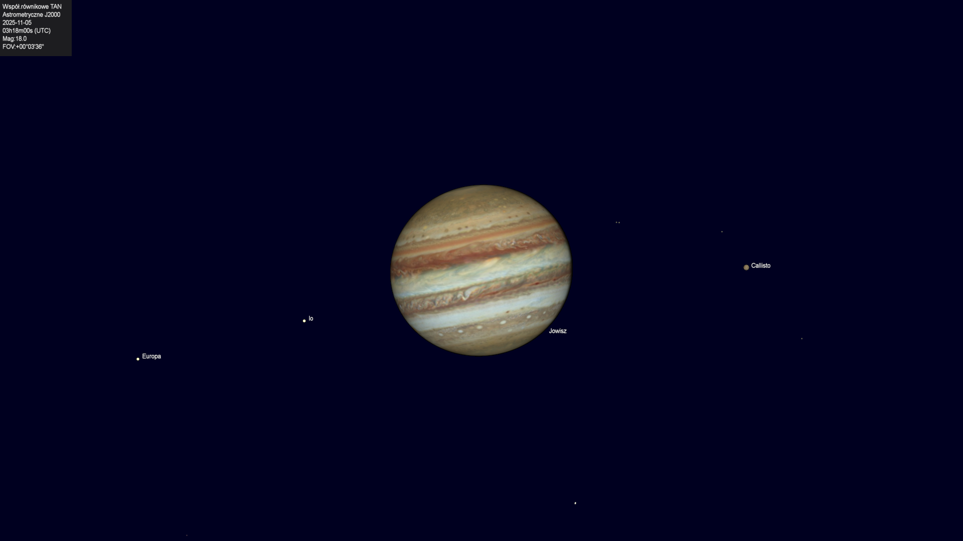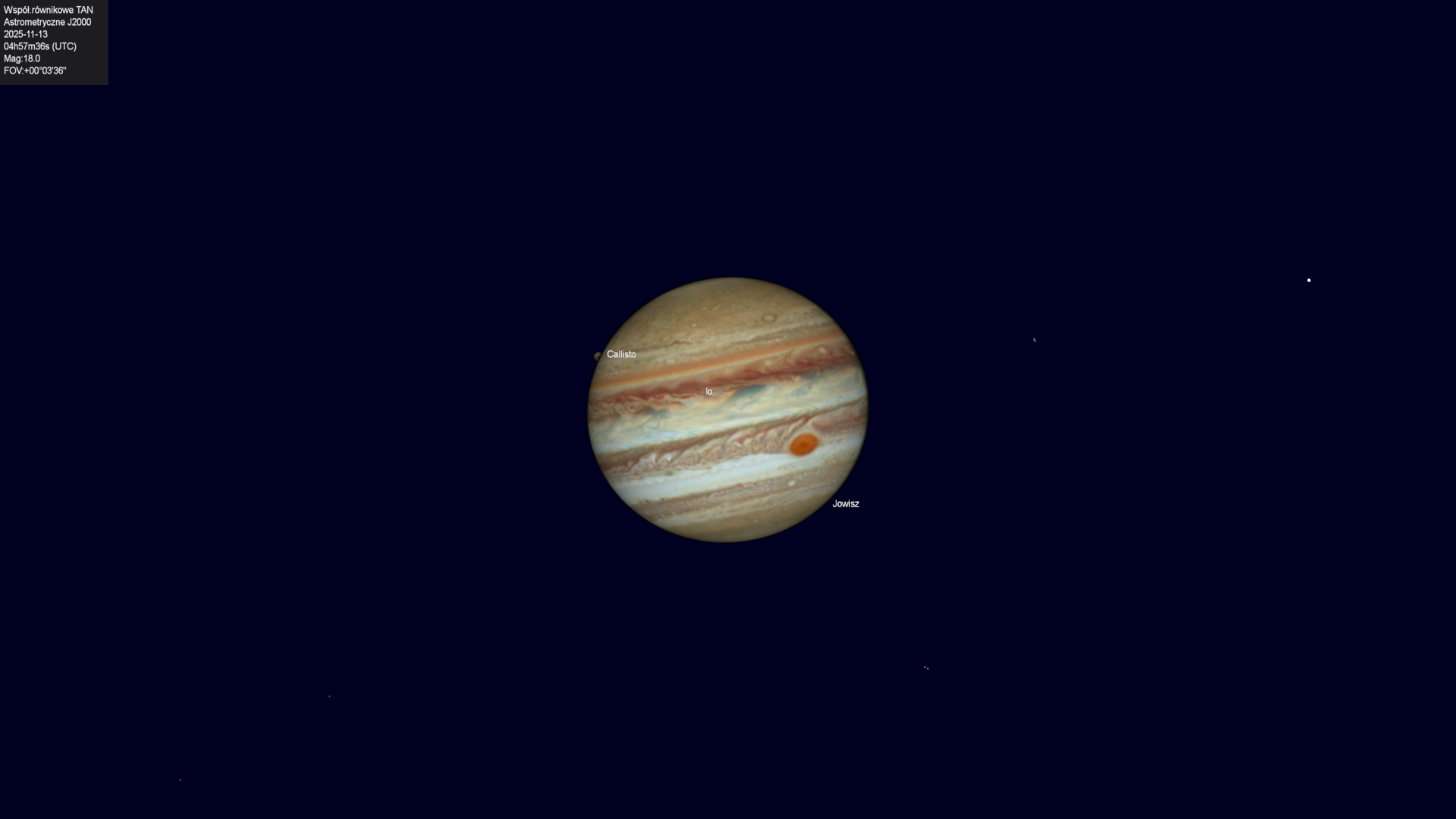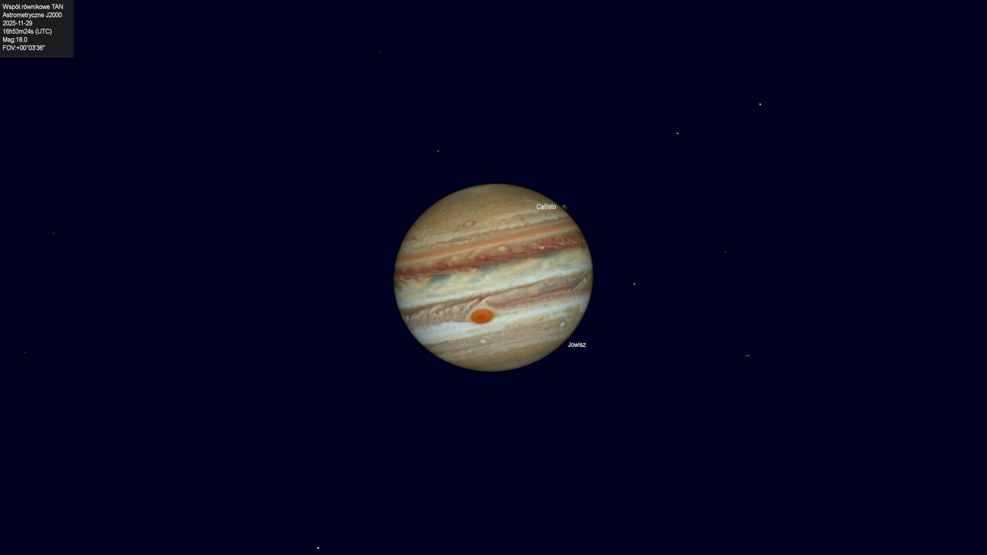 Początek przejścia księżyca Kalisto na tle tarczy planety.