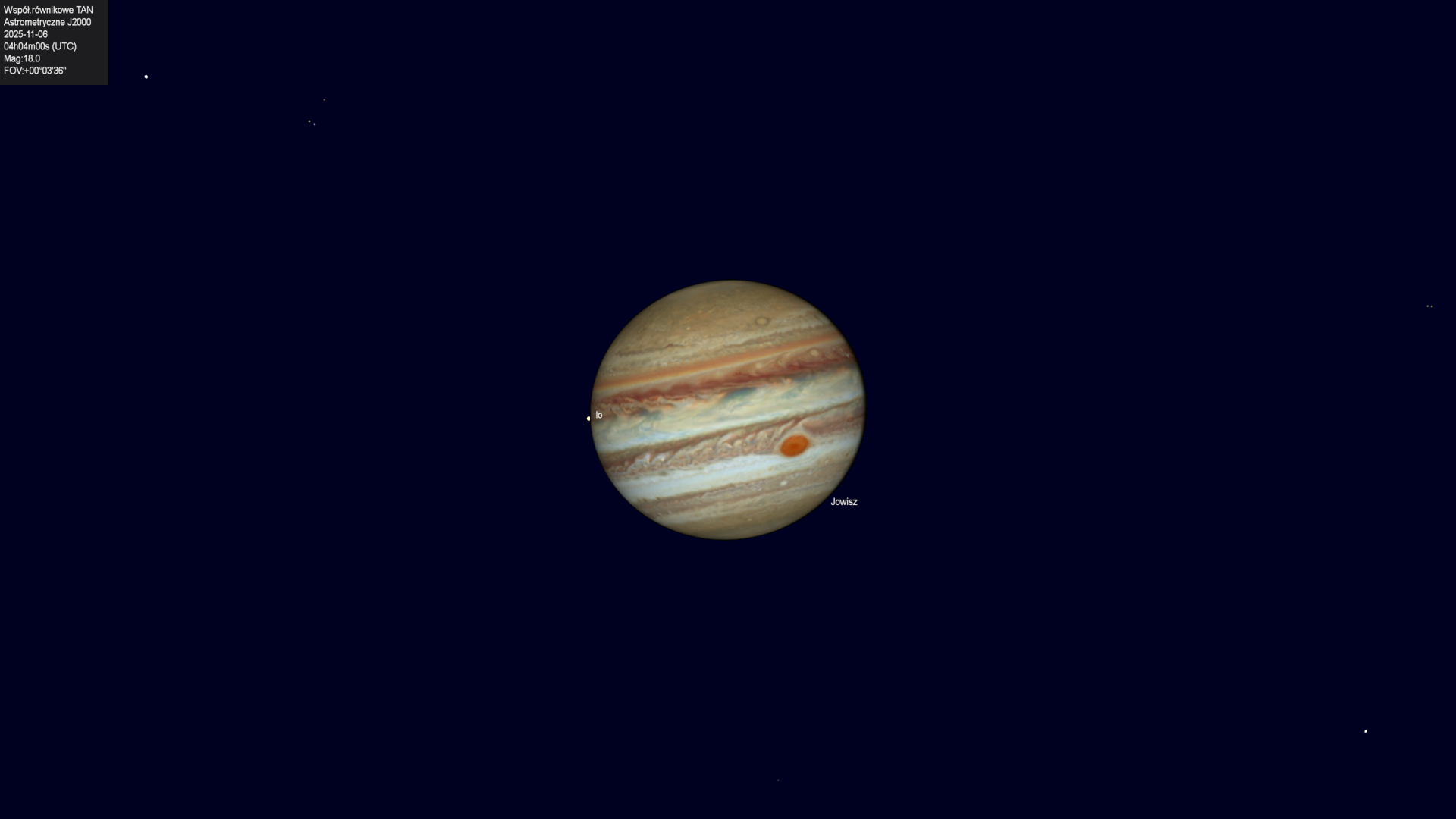 Początek przejścia księżyca Io na tle tarczy planety.