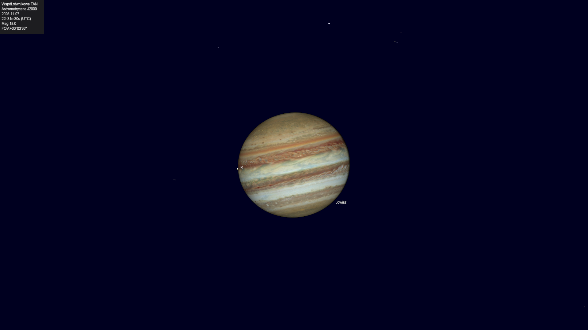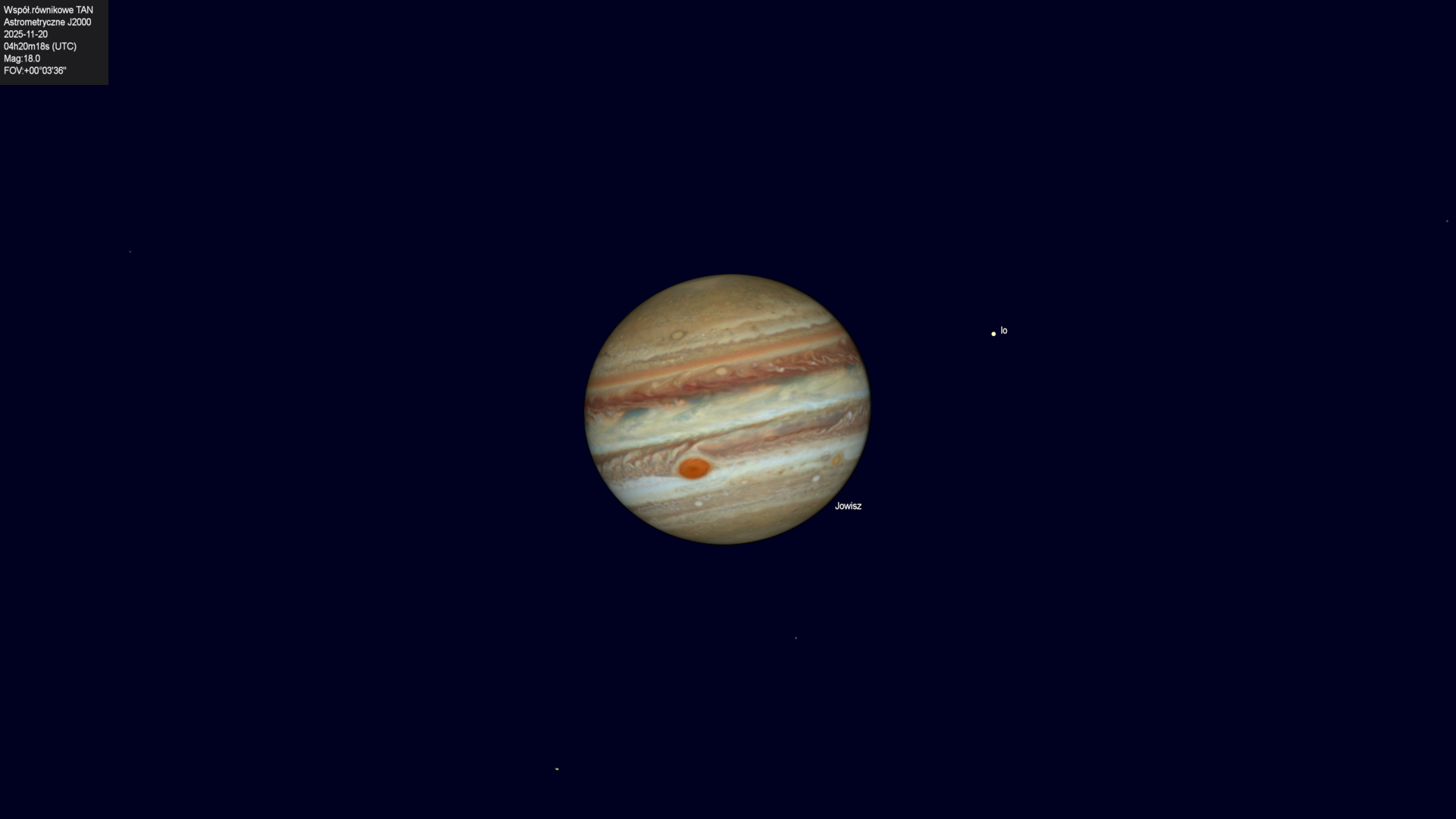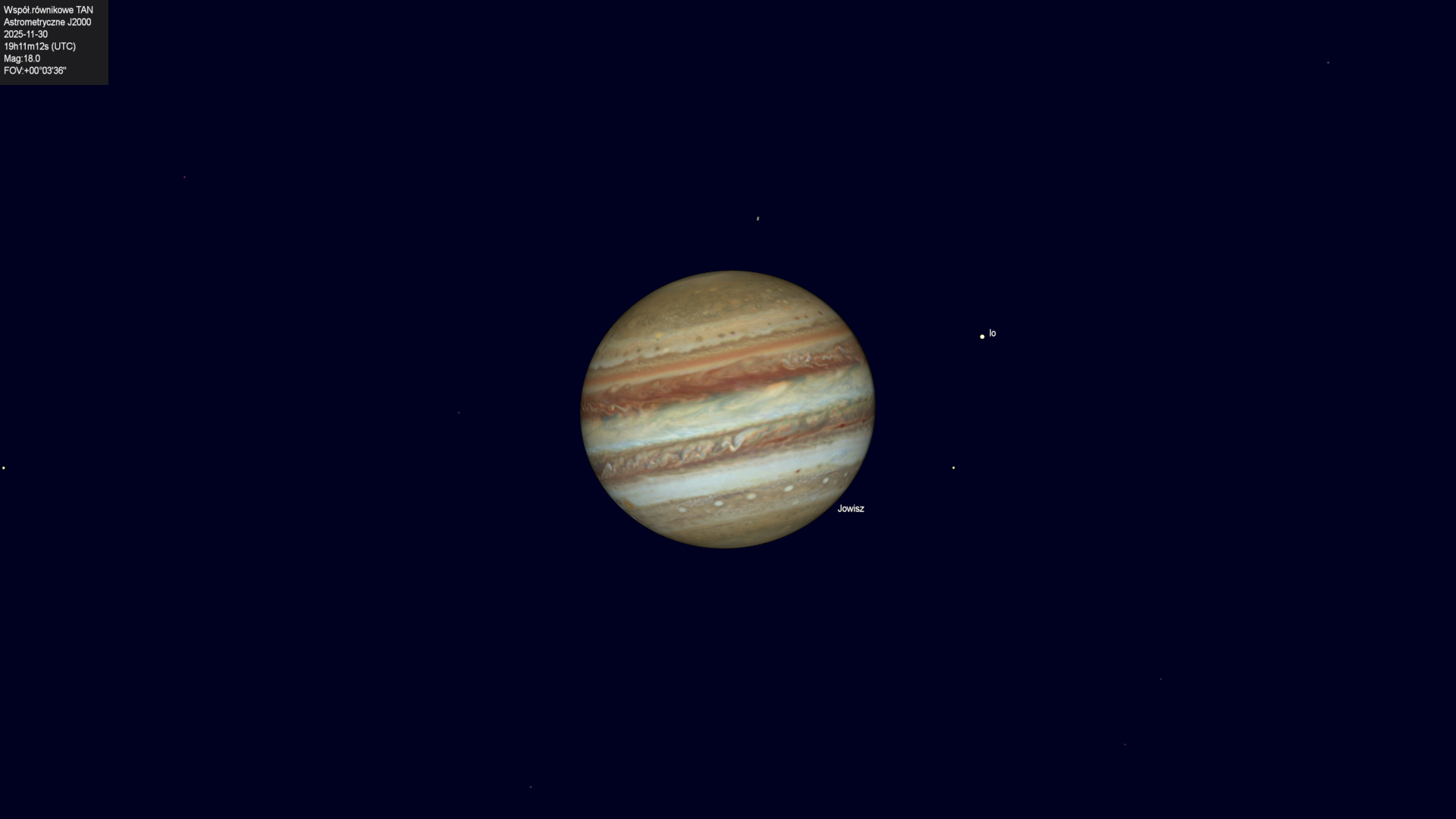 Koniec zakrycia księżyca Io przez tarczę planety.