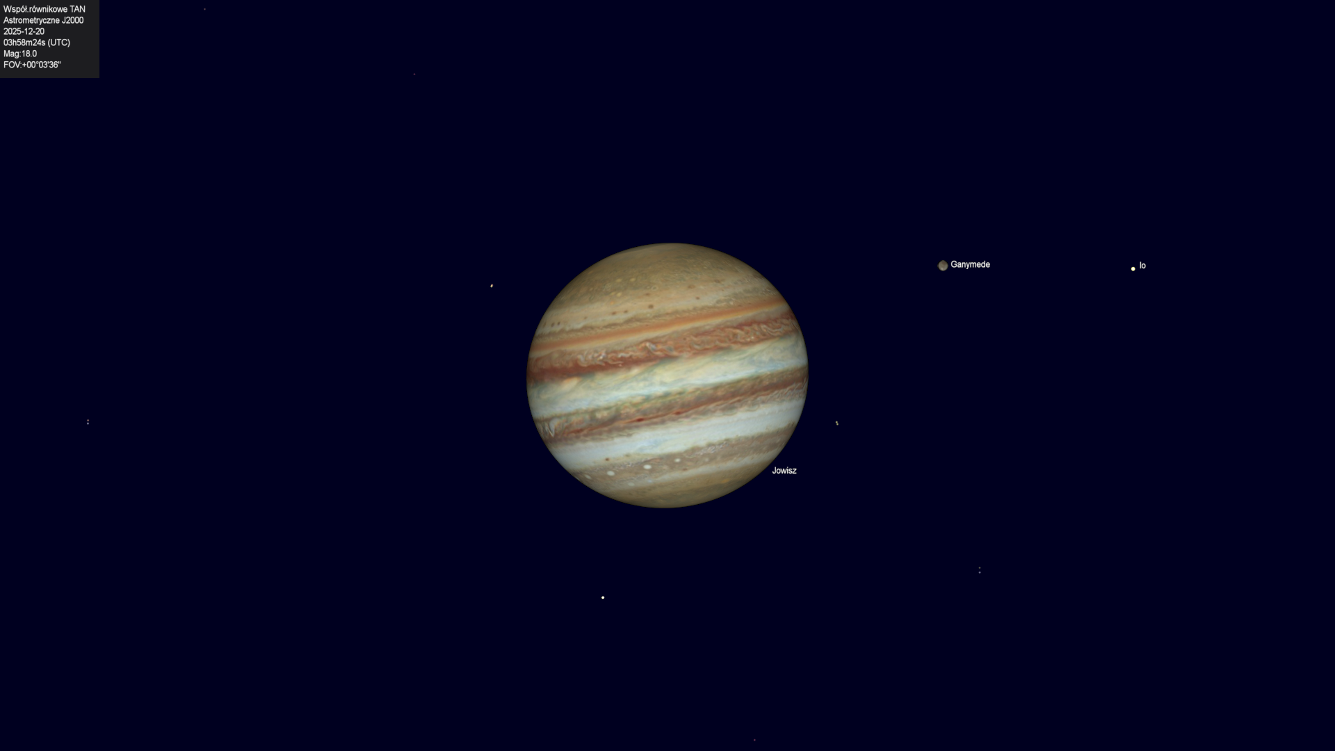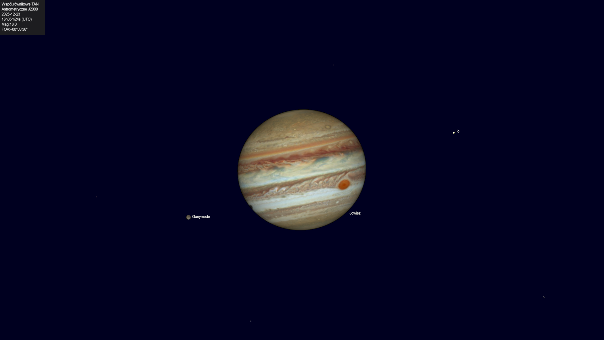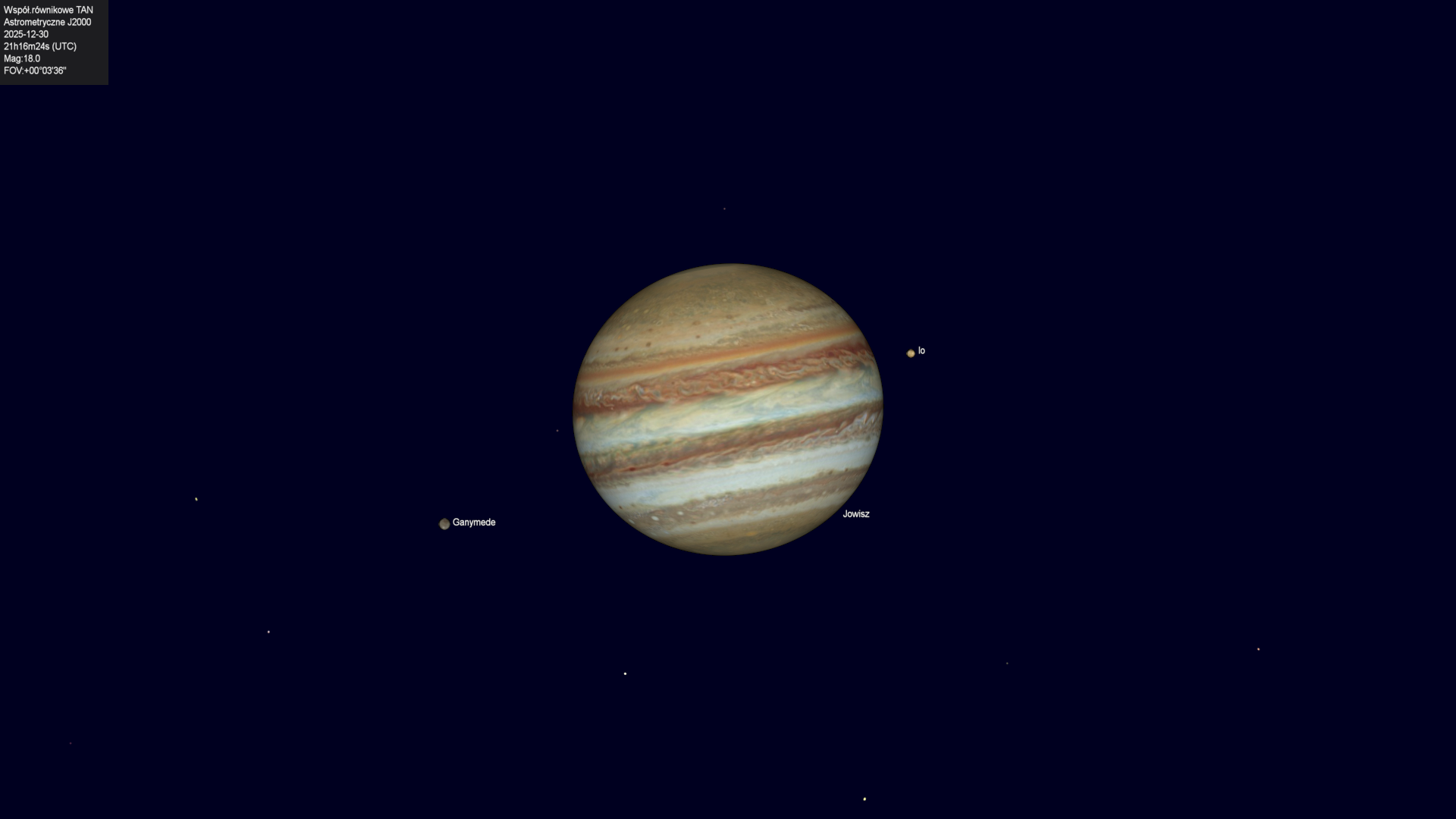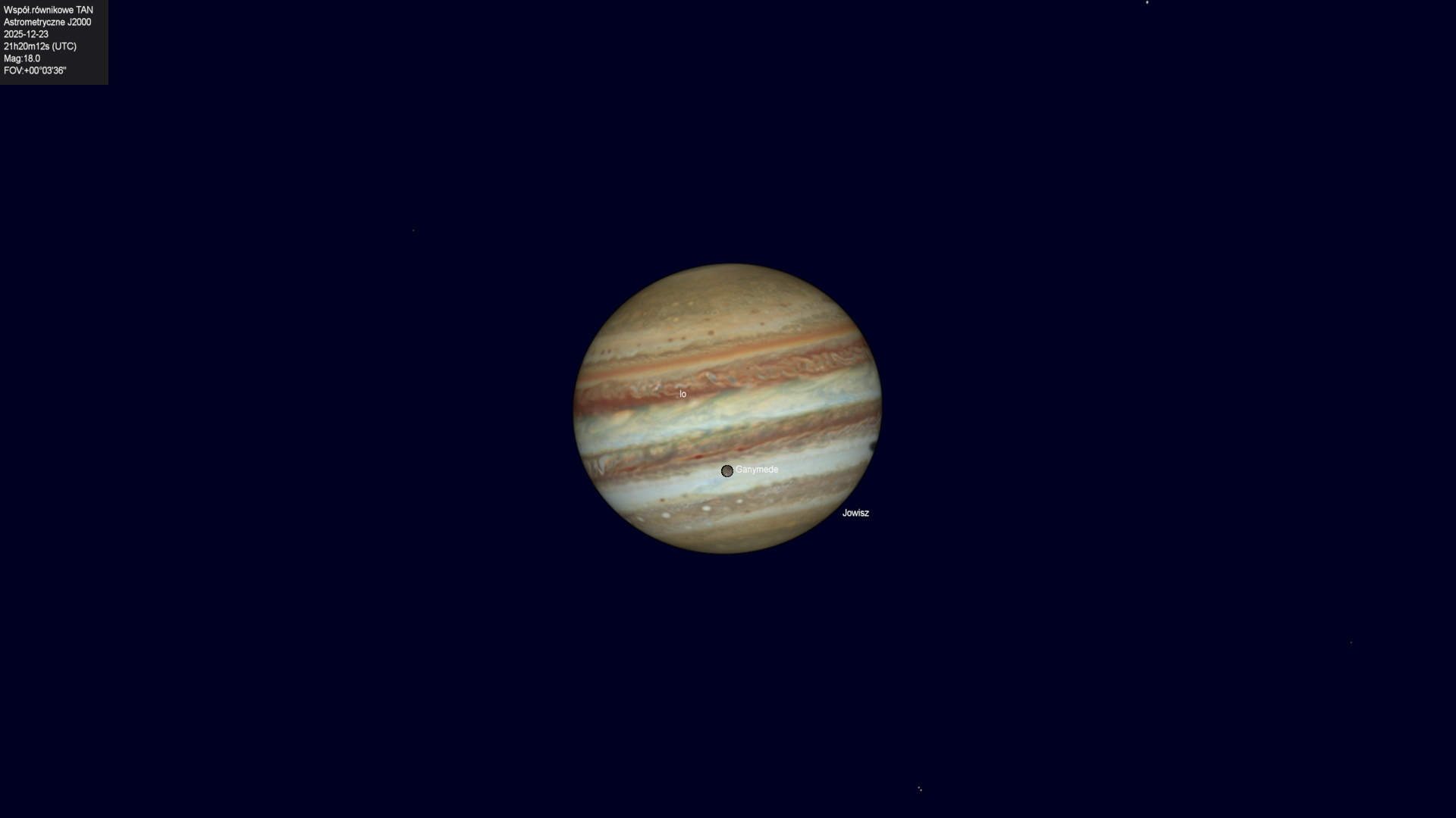 Koniec zakrycia księżyca Gaminedesa przez tarczę planety.