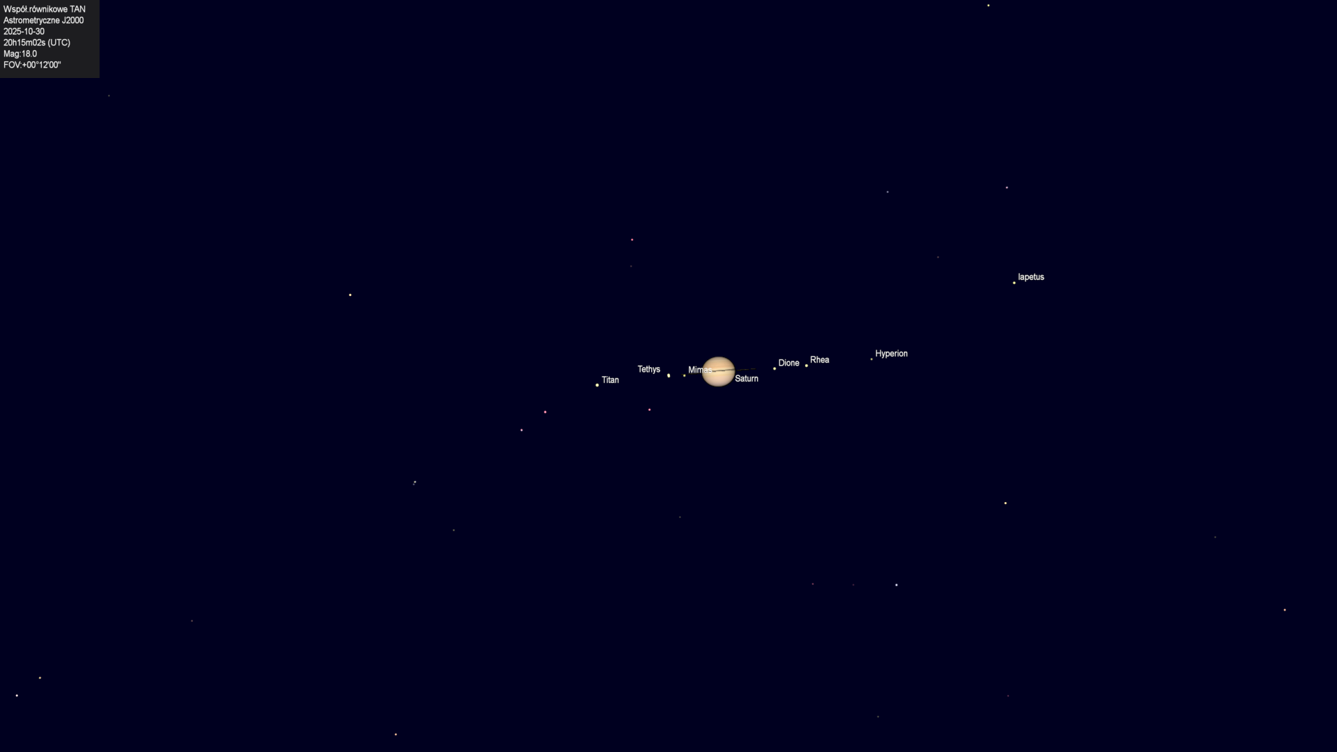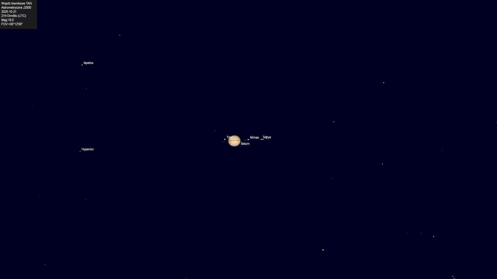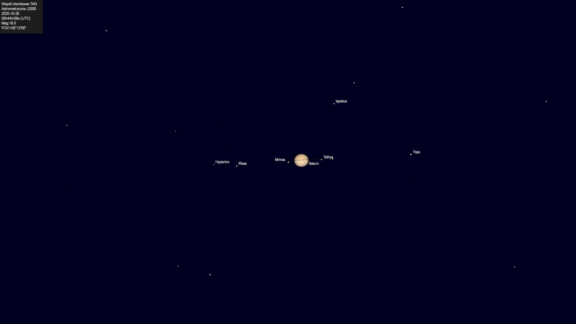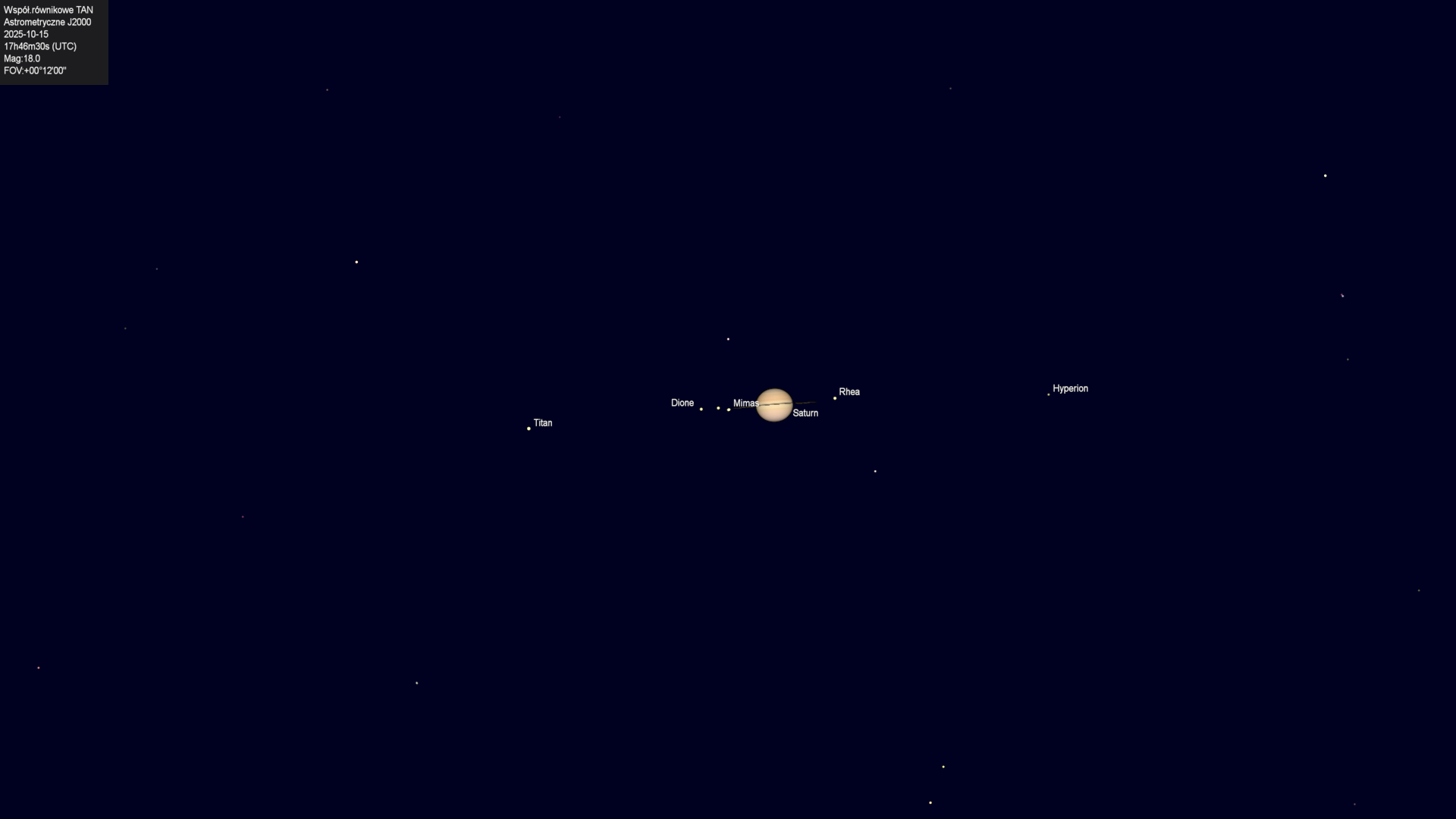 Całkowite zaćmienie księżyca Tethysa przez cień księżyca Mimasa |