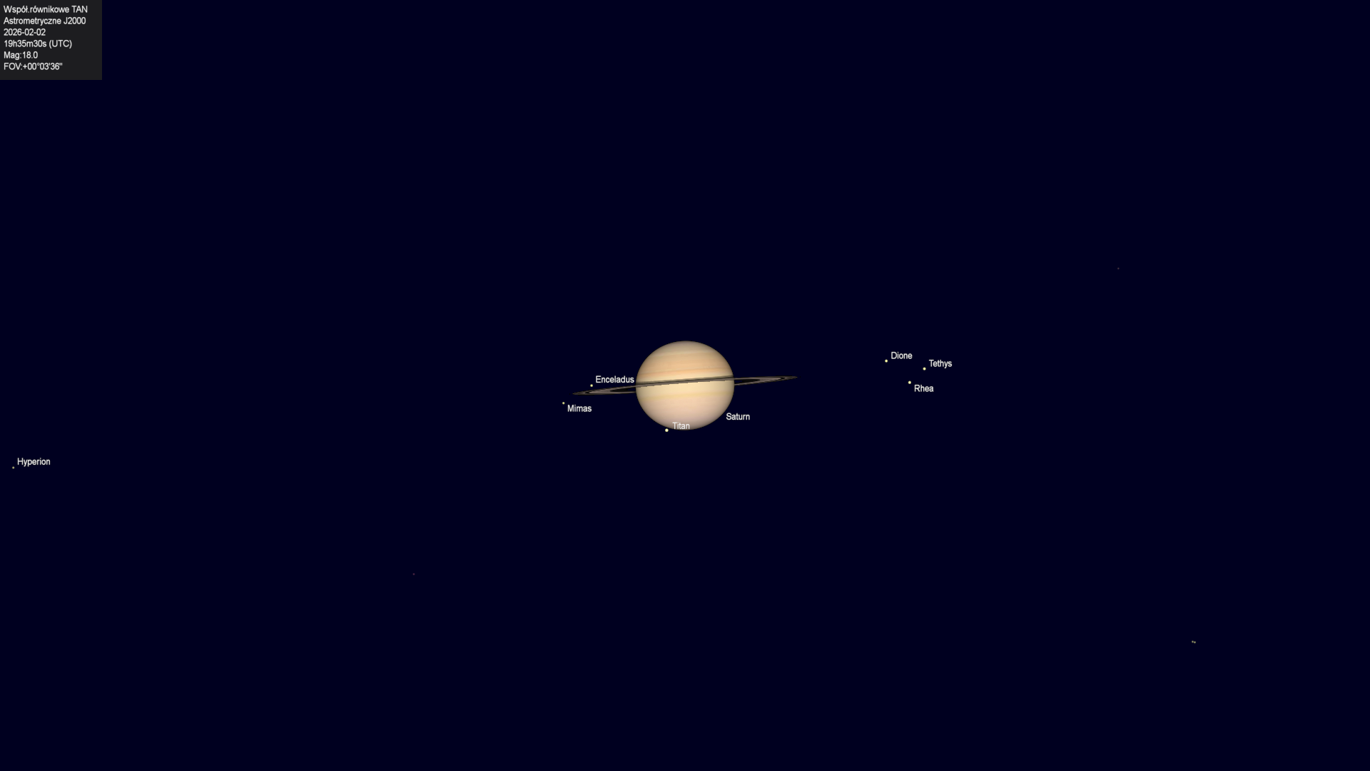 Początek zakrycia księżyca Tytana przez tarczę planety.