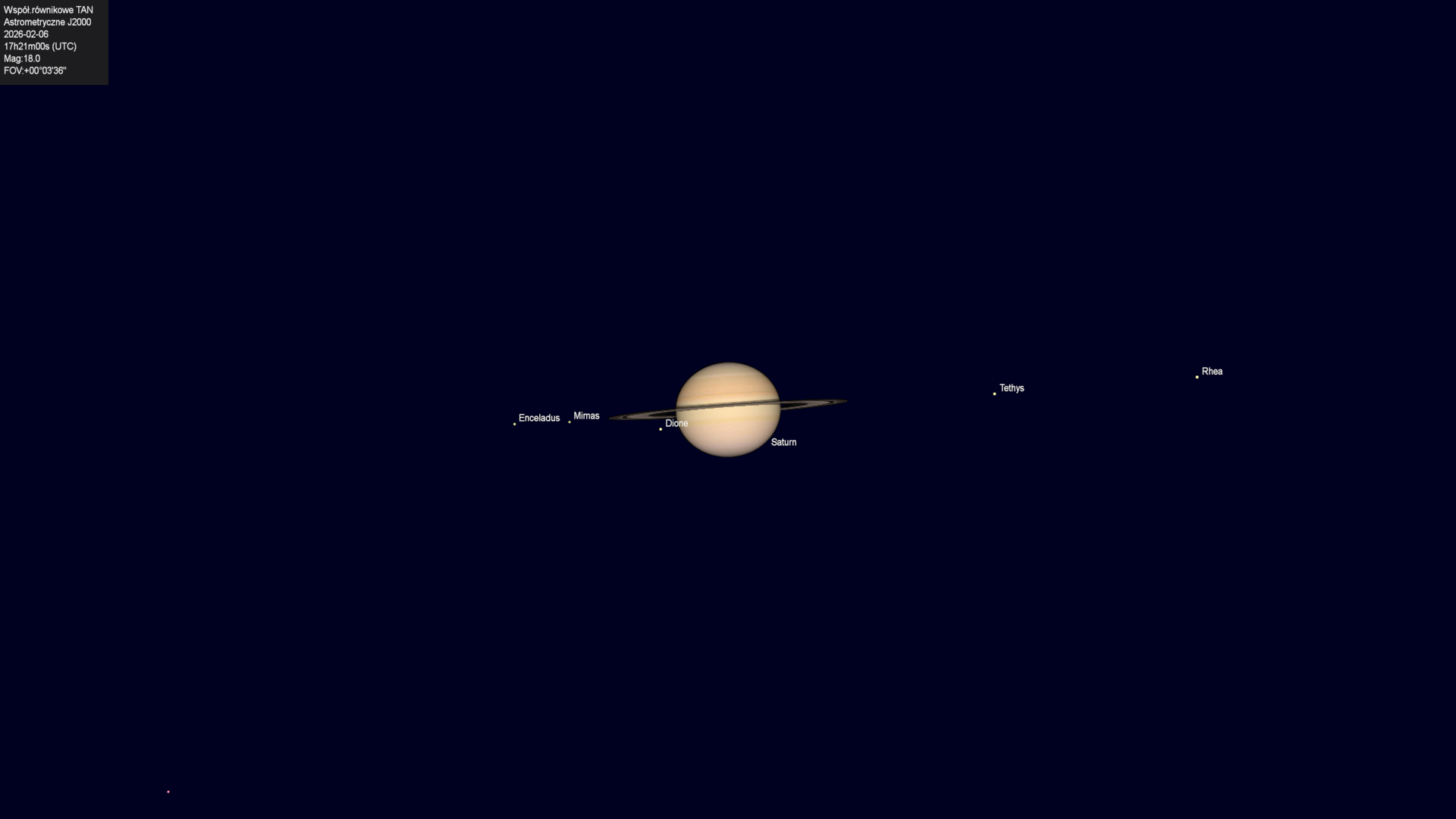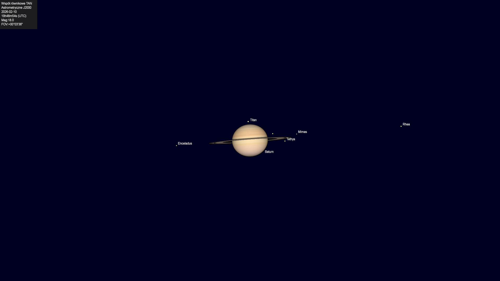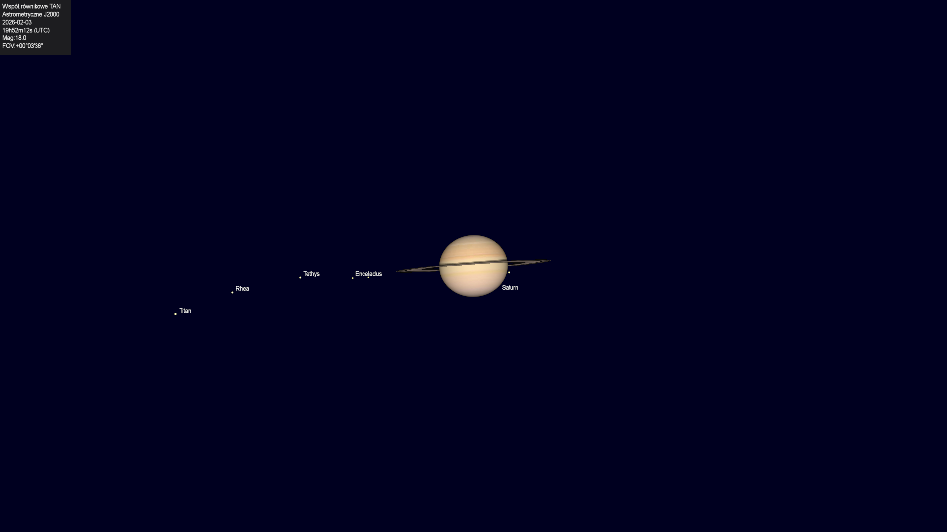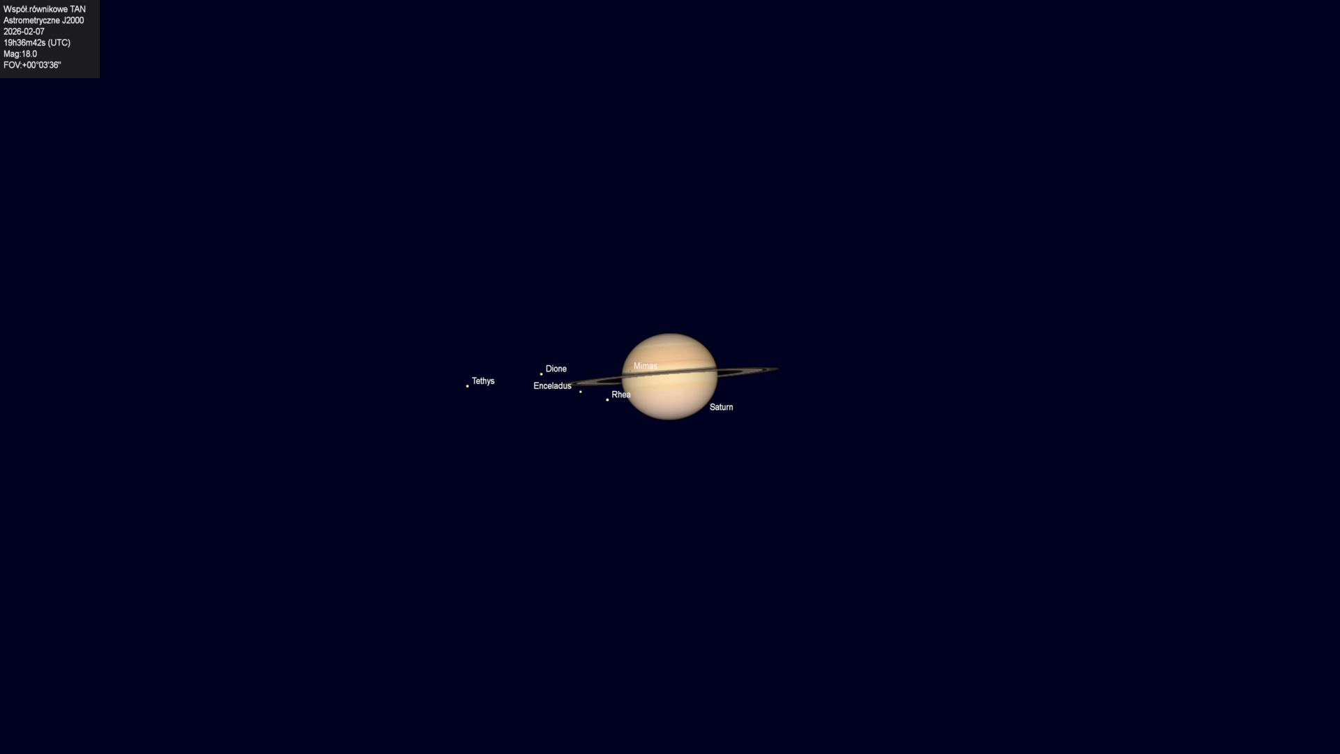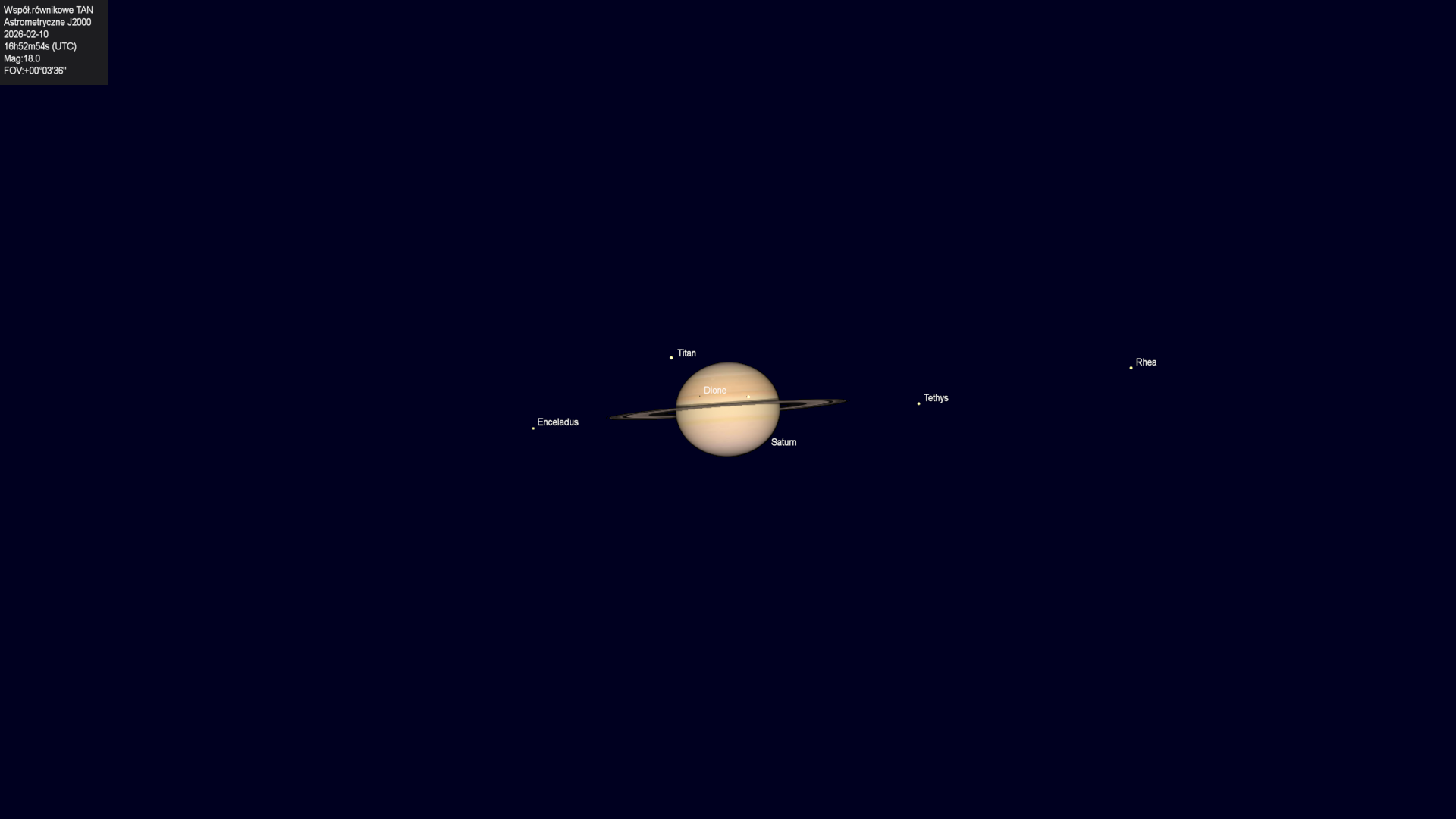 Początek zakrycia księżyca Tethysa przez tarczę planety.