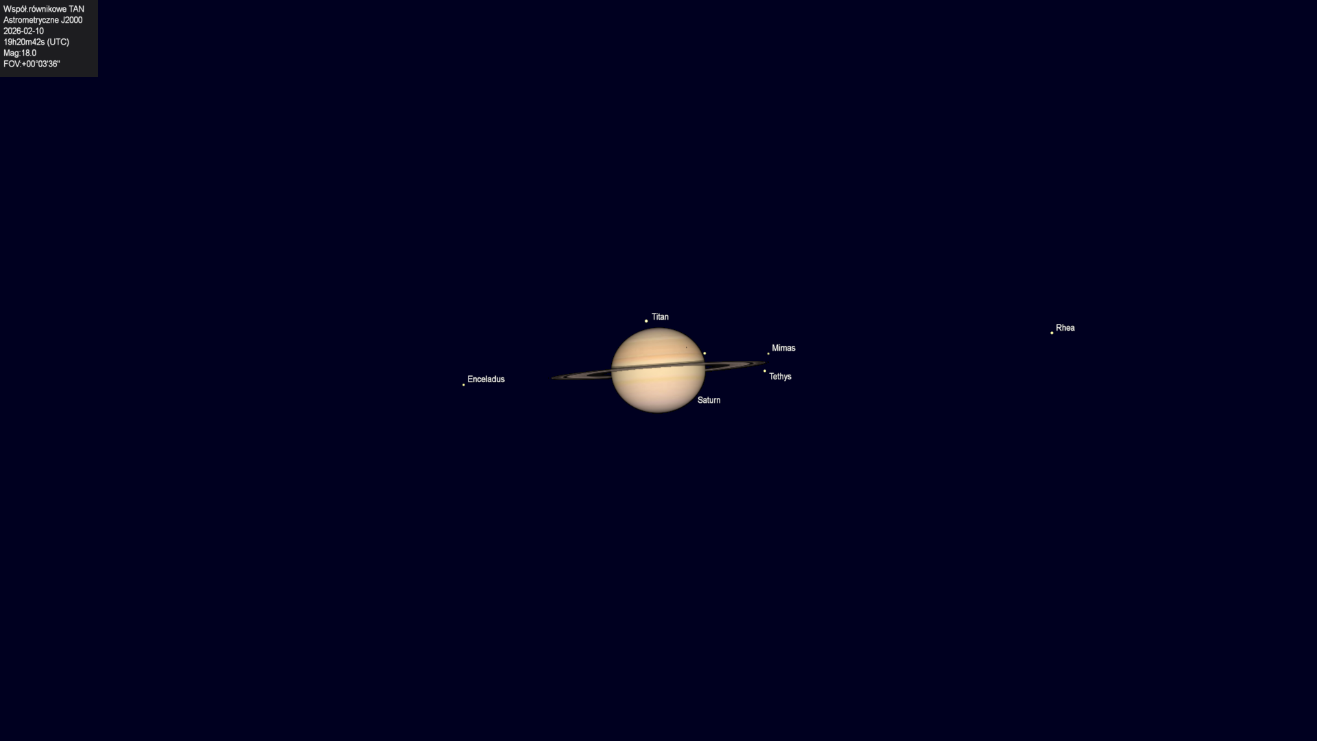 Początek zakrycia księżyca Rhea przez tarczę planety.