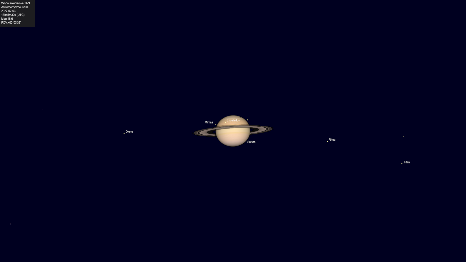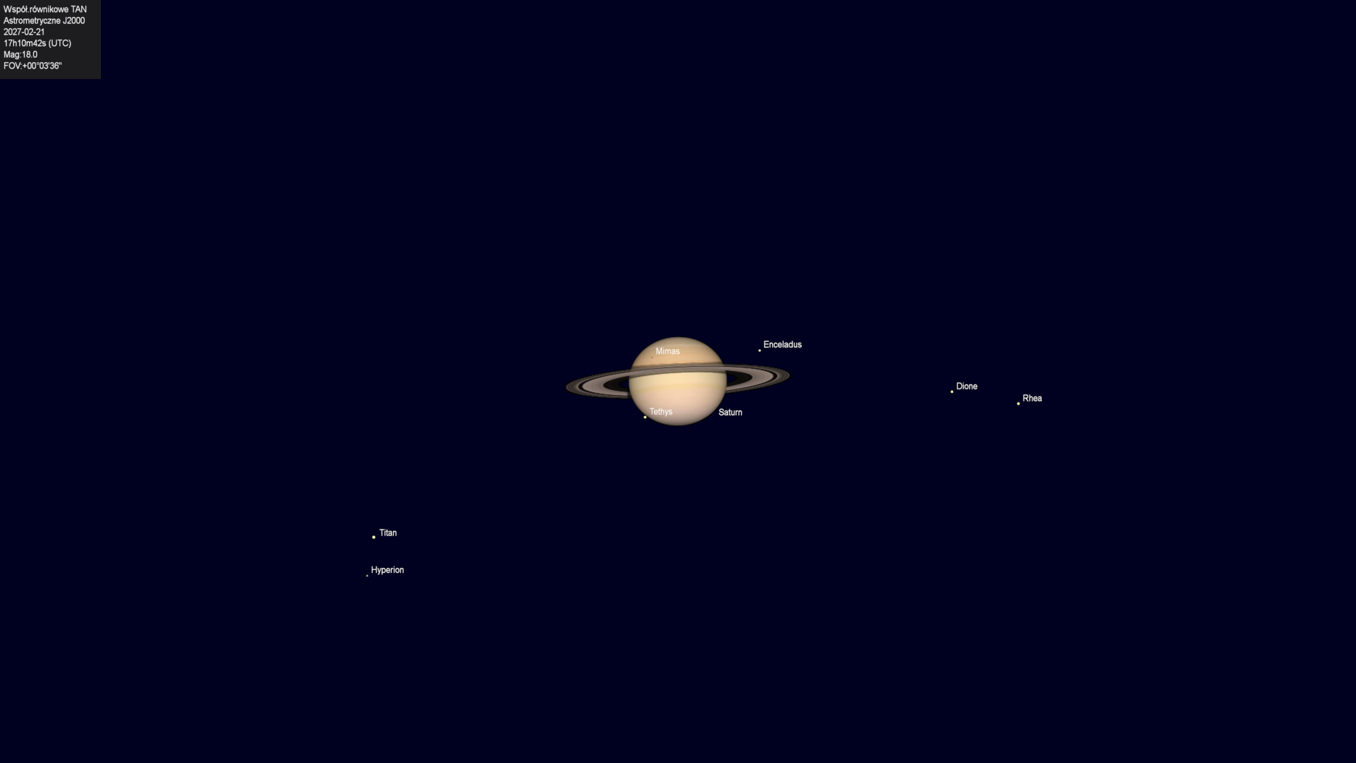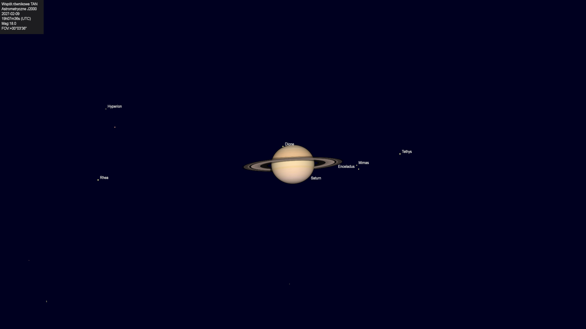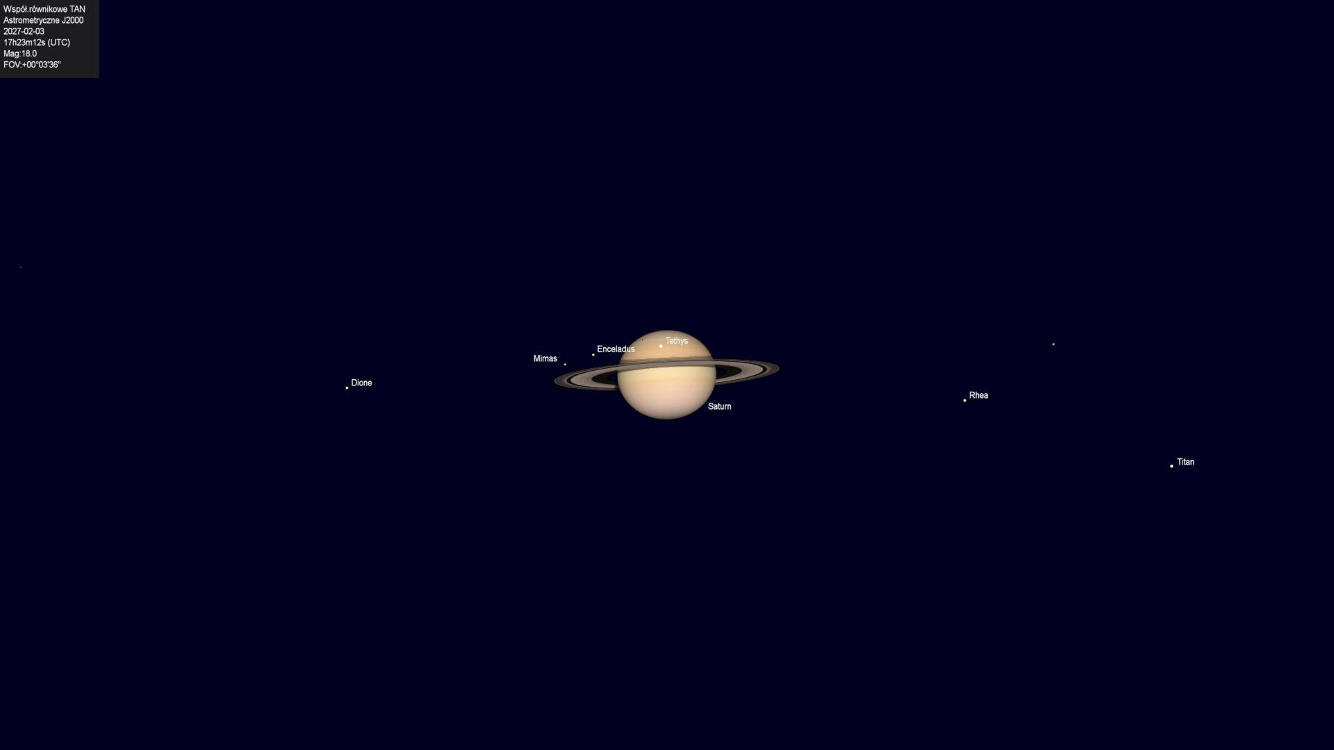 Początek zakrycia księżyca Tethysa przez tarczę planety.