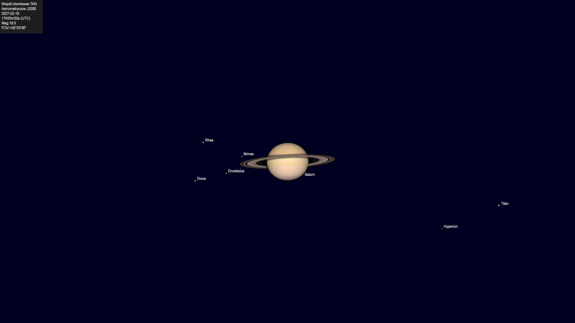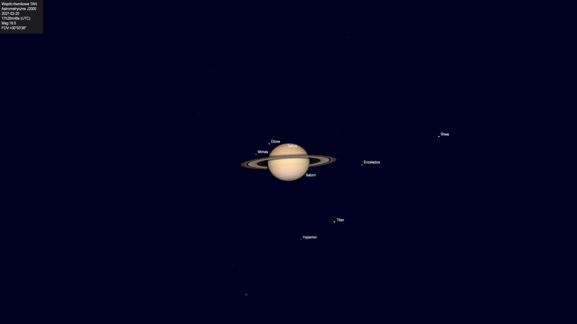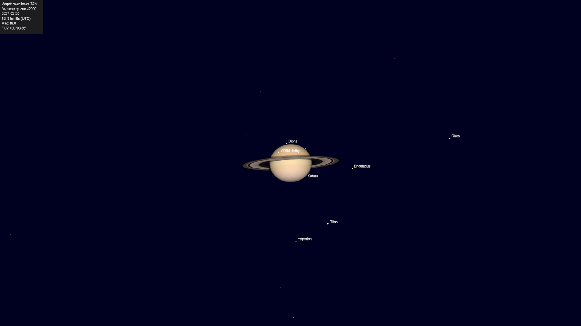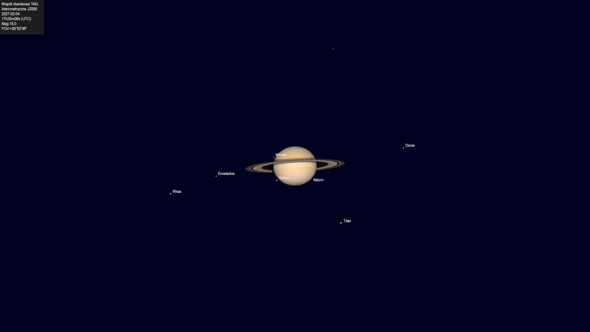 Początek zakrycia księżyca Tethysa przez tarczę planety.