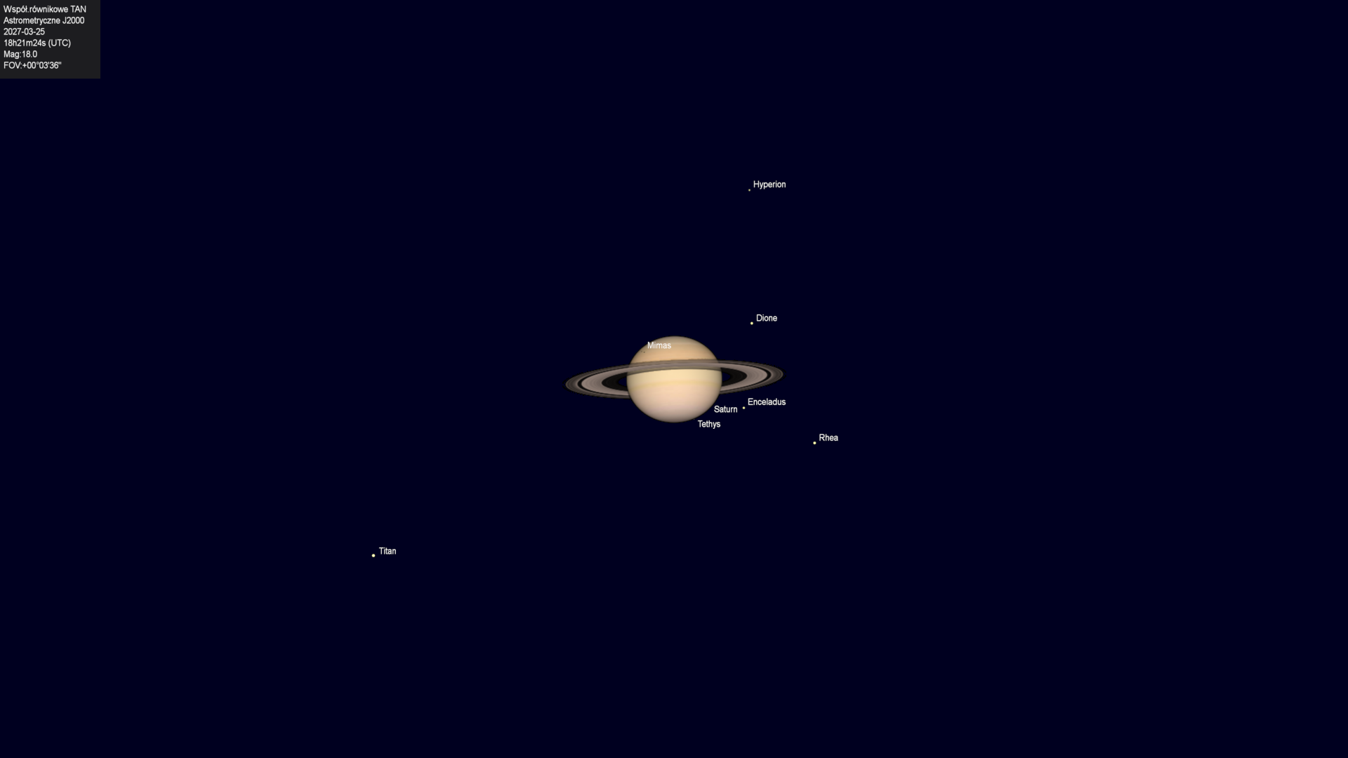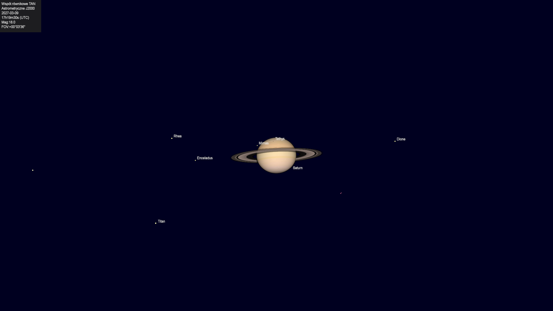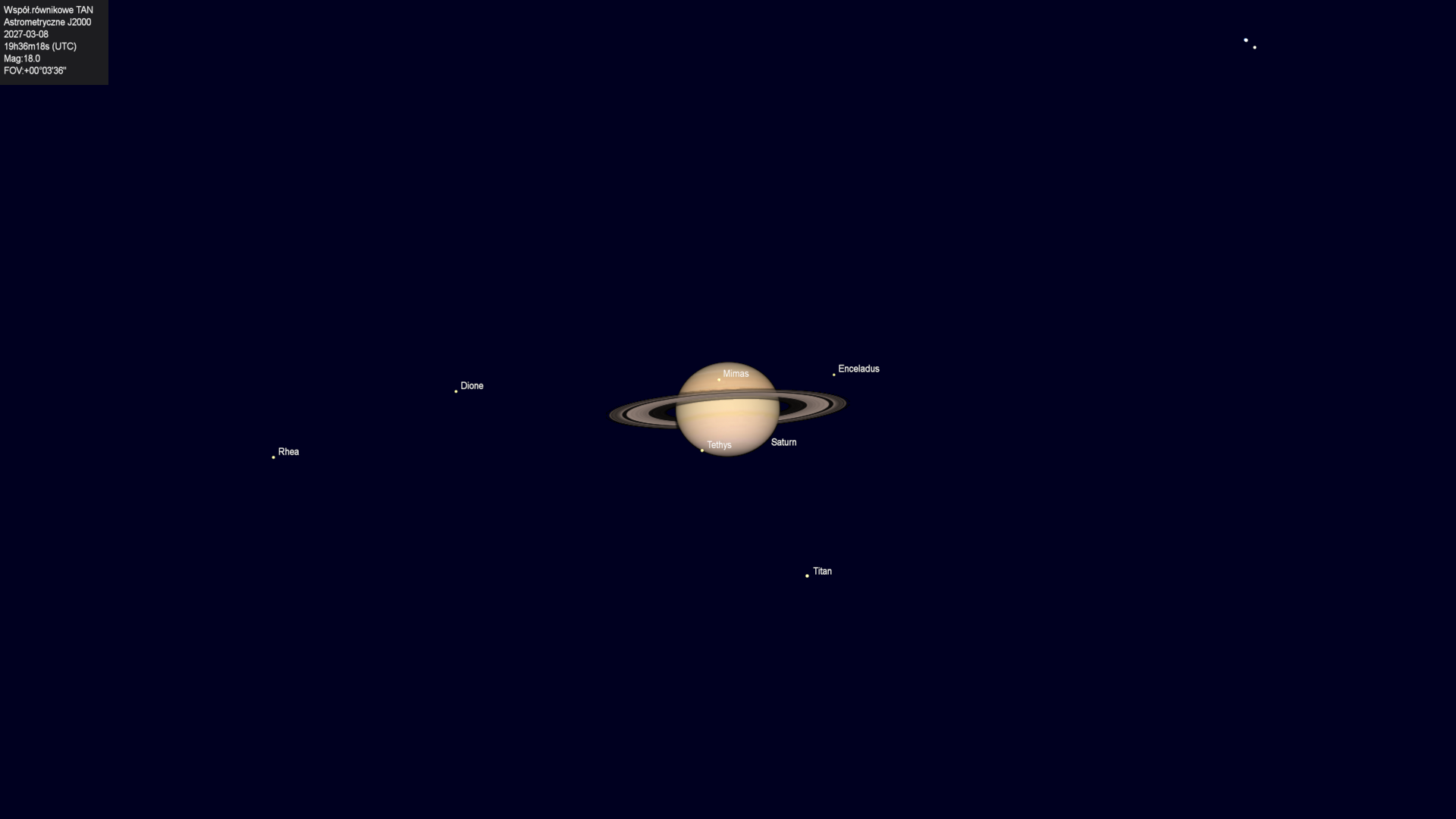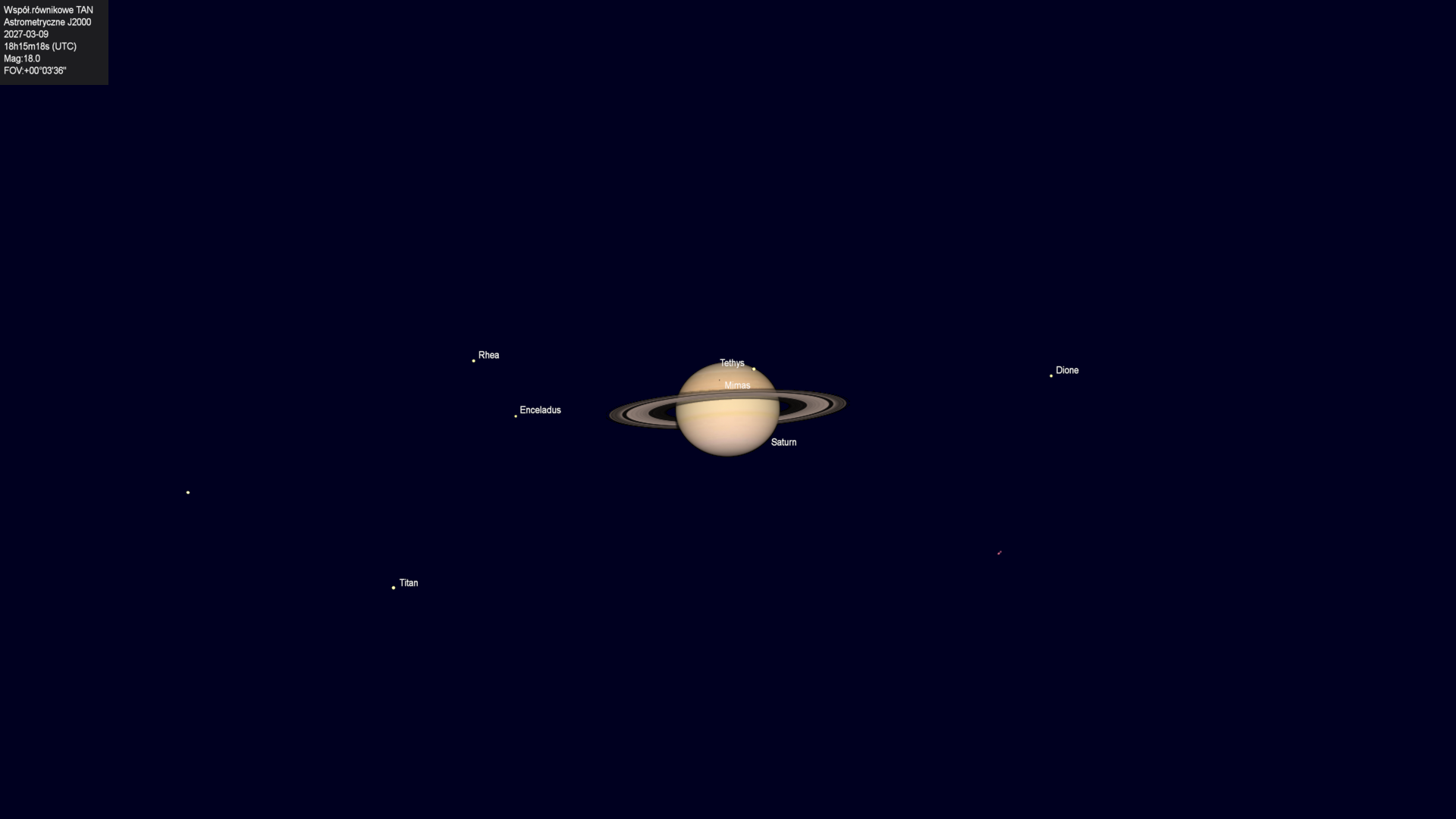 Początek zakrycia księżyca Tethysa przez tarczę planety.