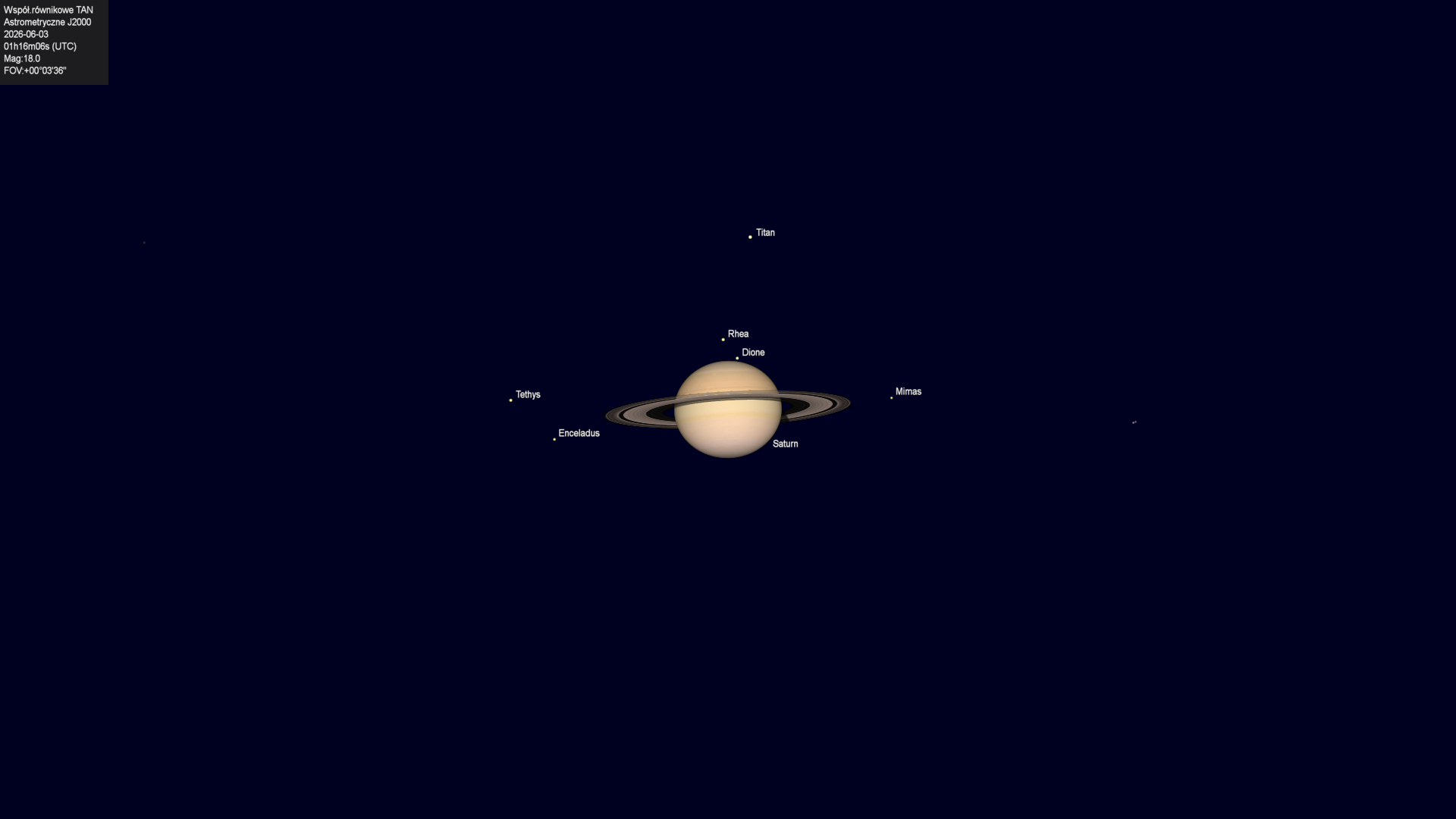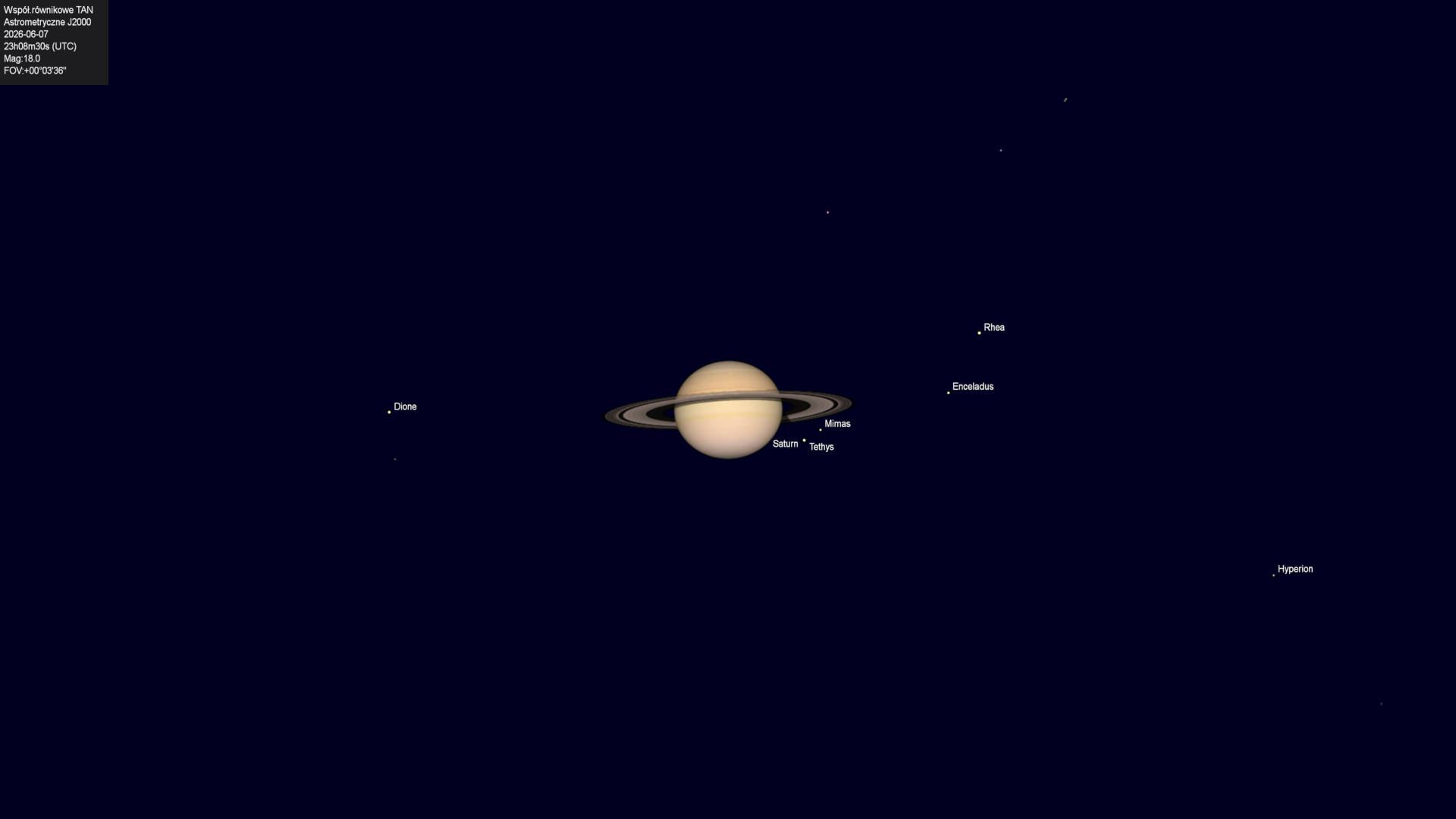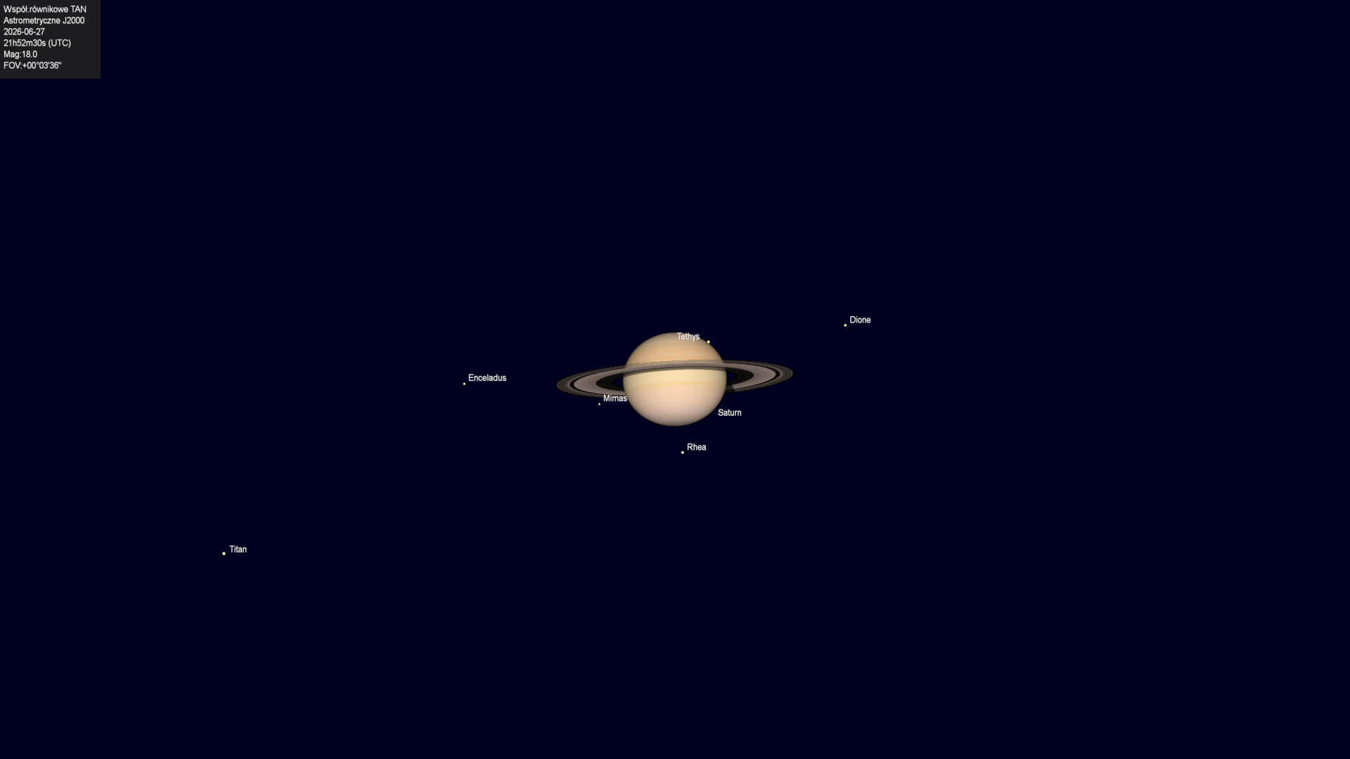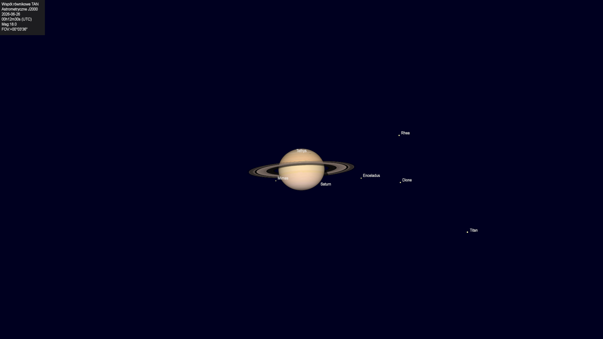 Koniec zakrycia księżyca Tethysa przez tarczę planety.