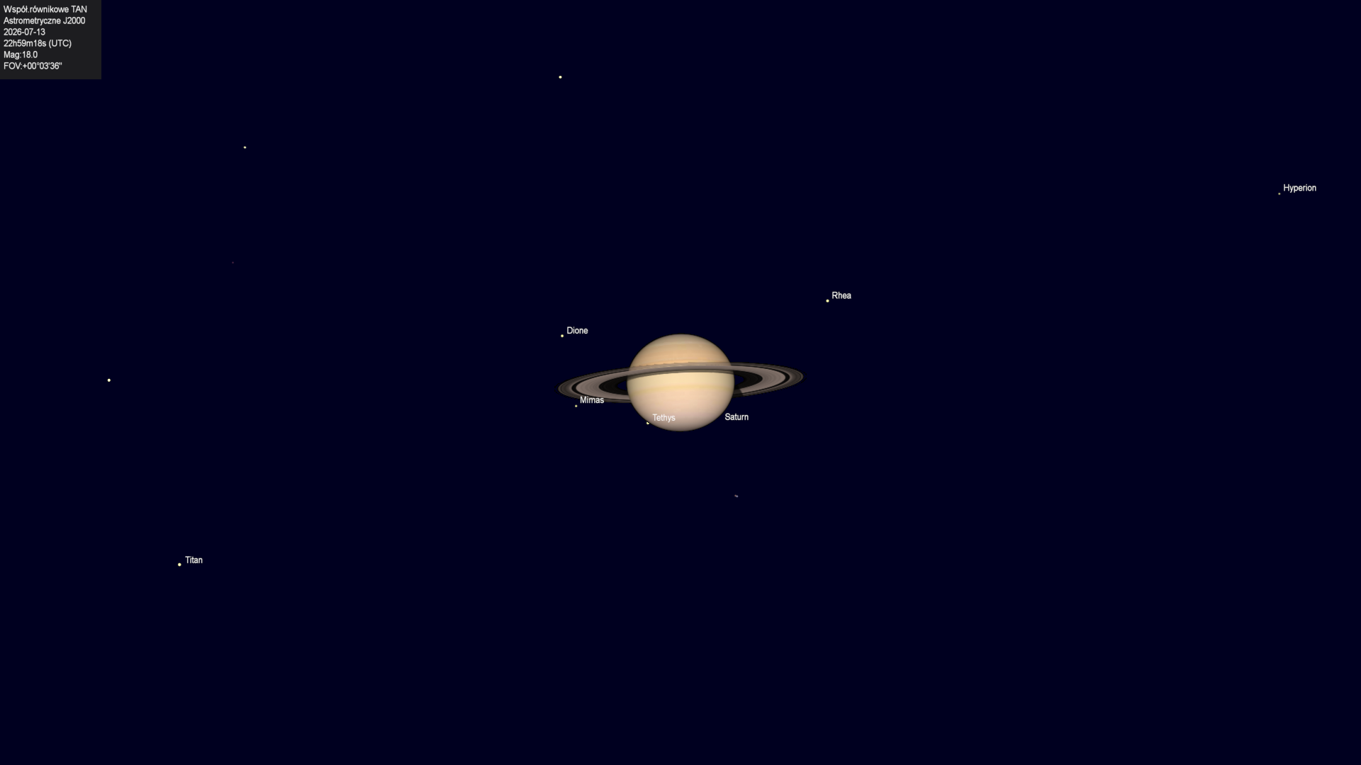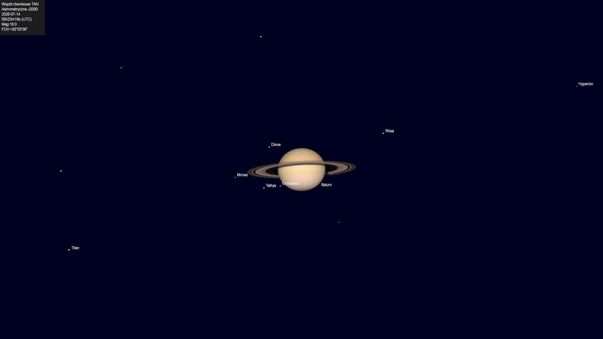 Koniec zakrycia księżyca Tethysa przez tarczę planety.