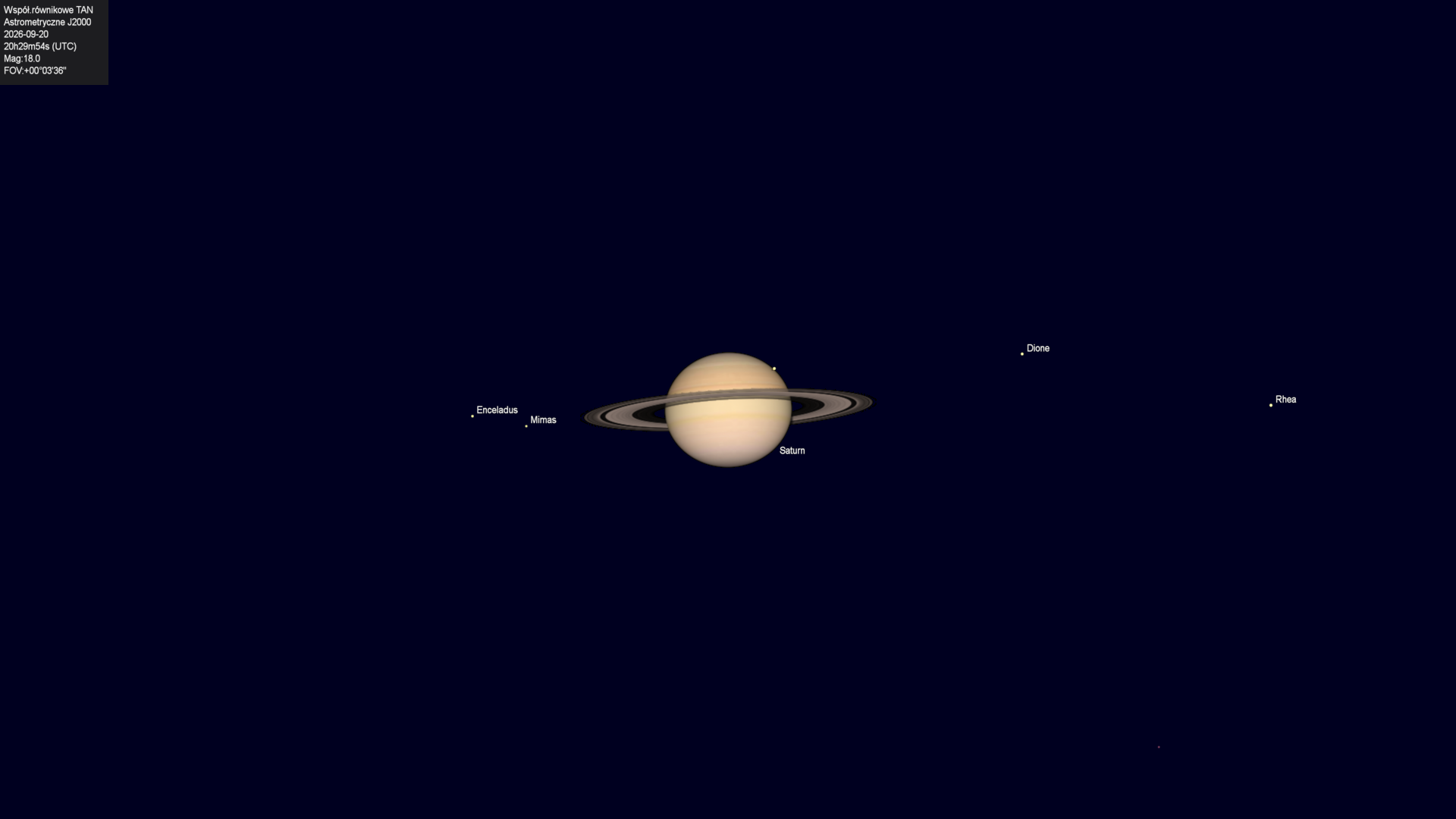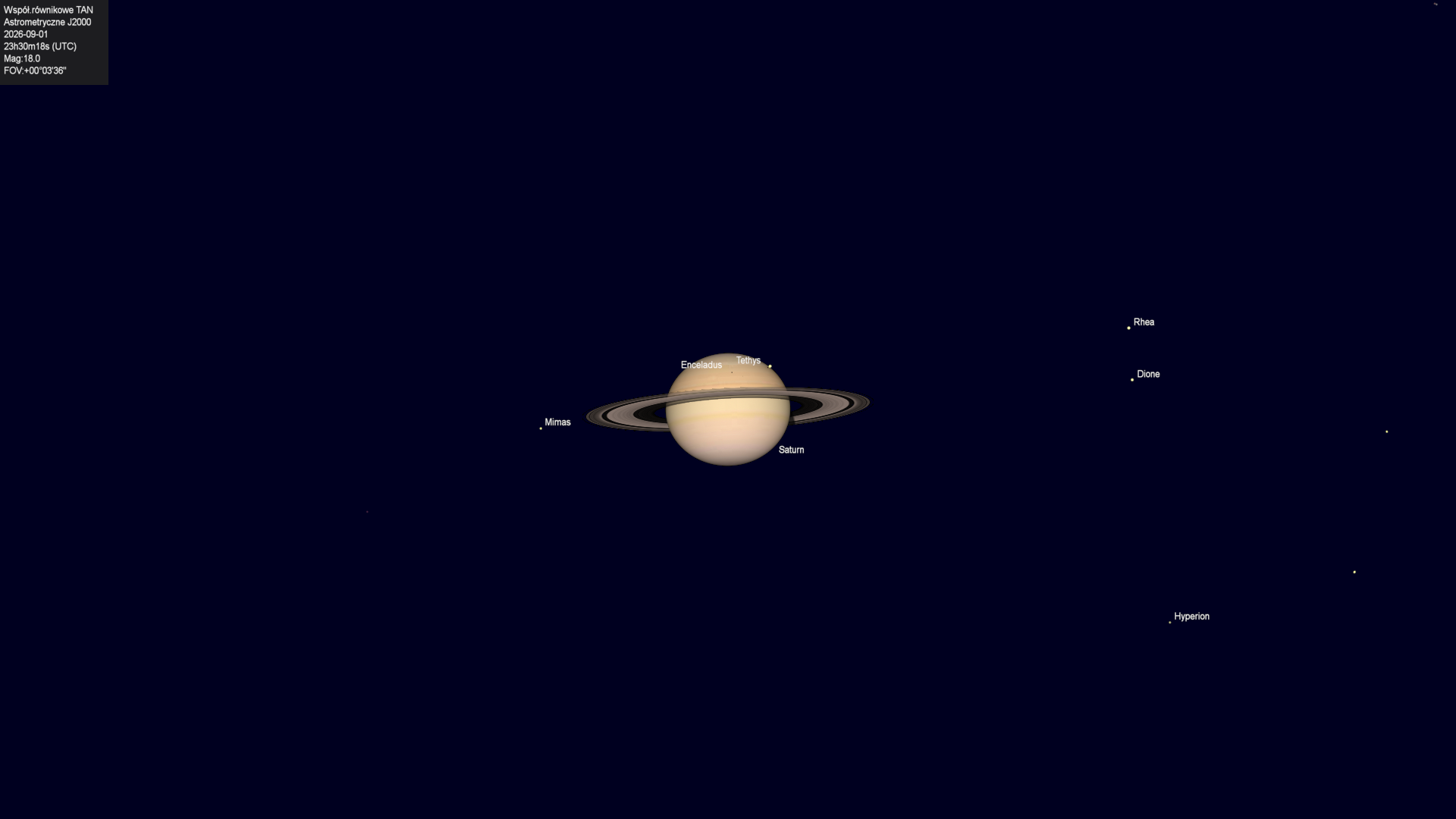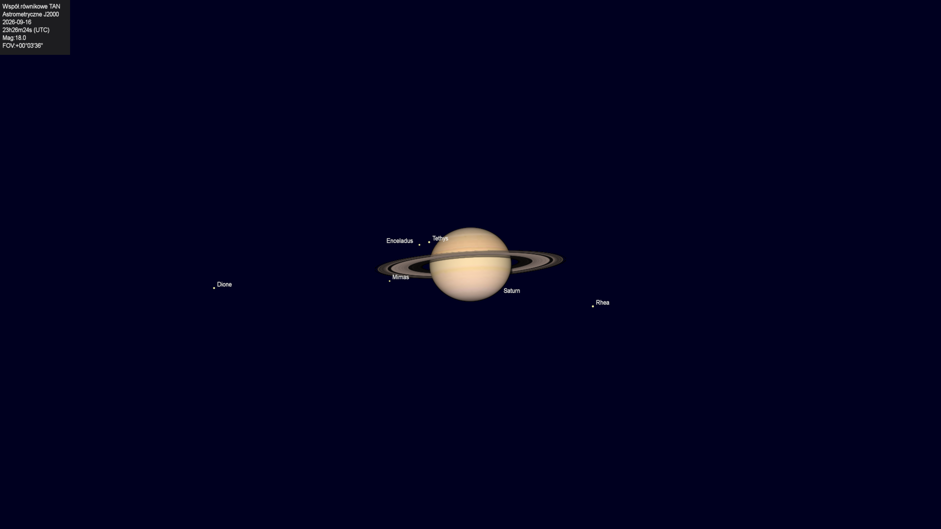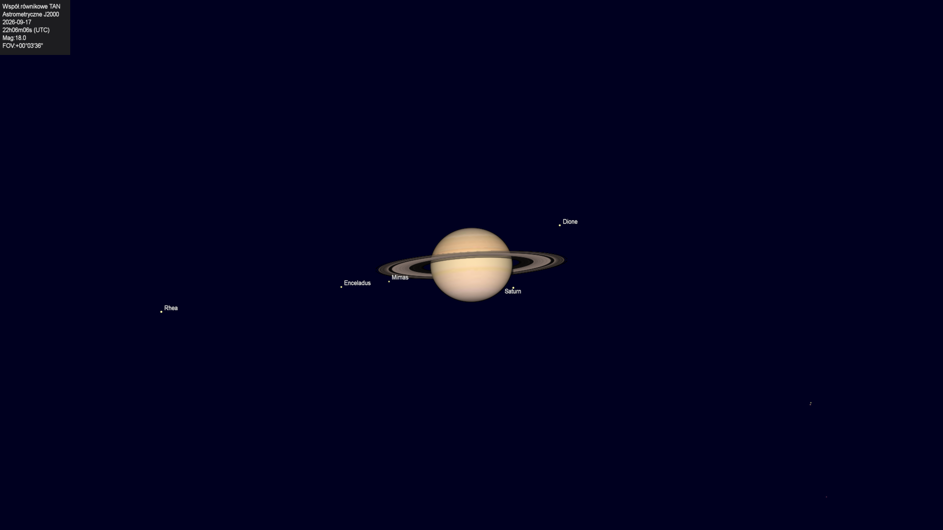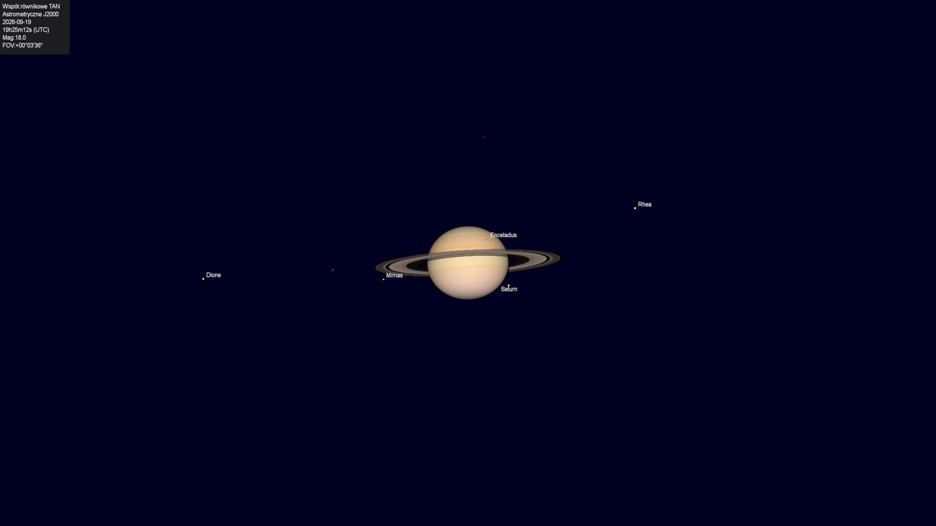 Koniec zakrycia księżyca Dione przez tarczę planety.