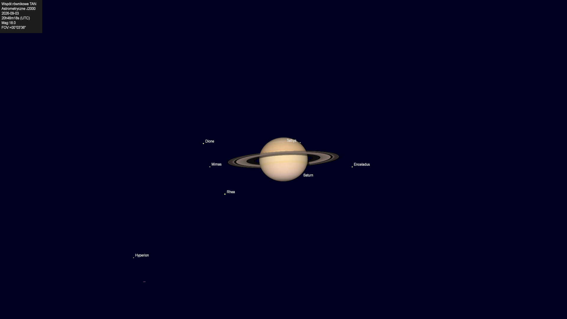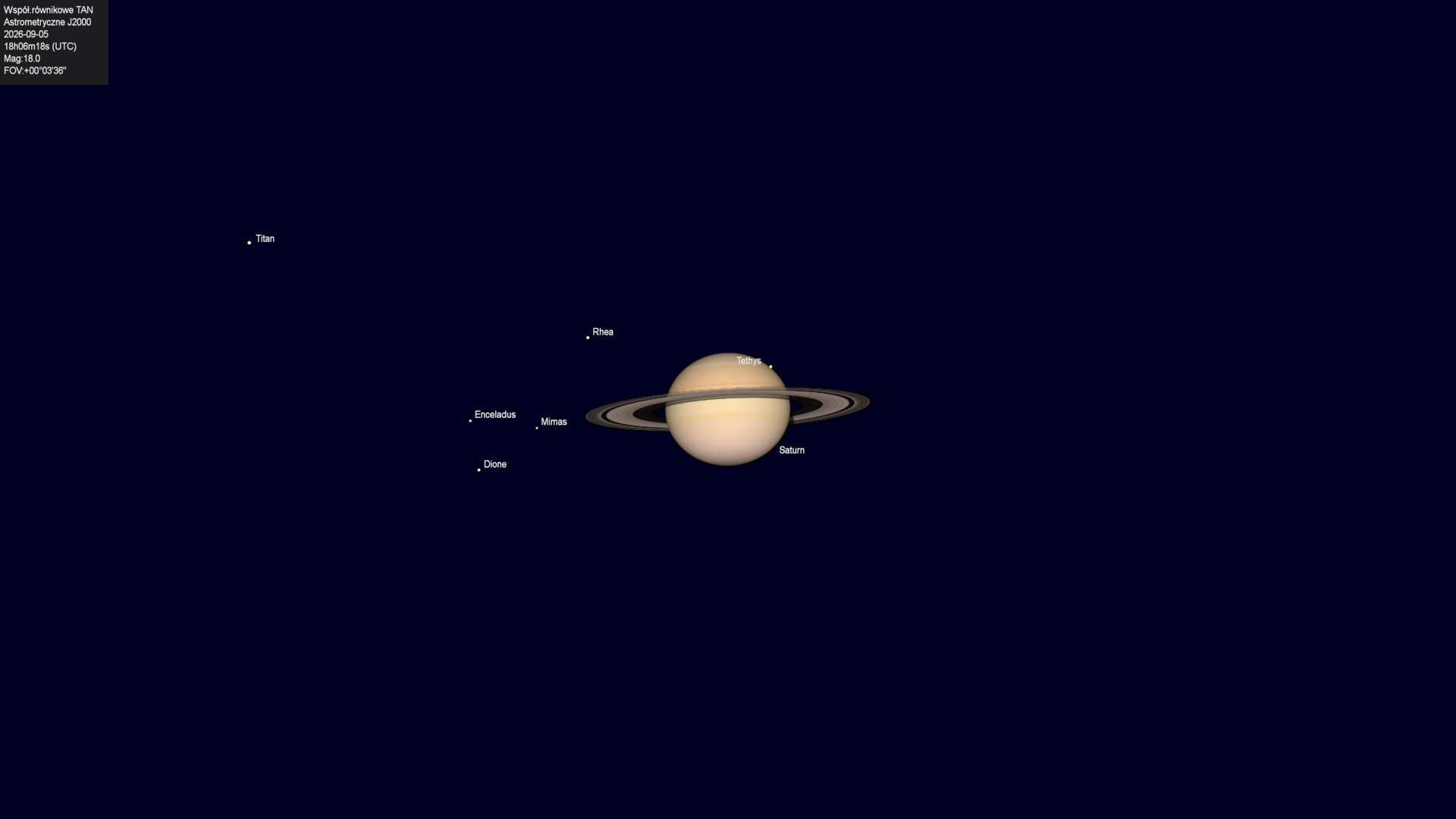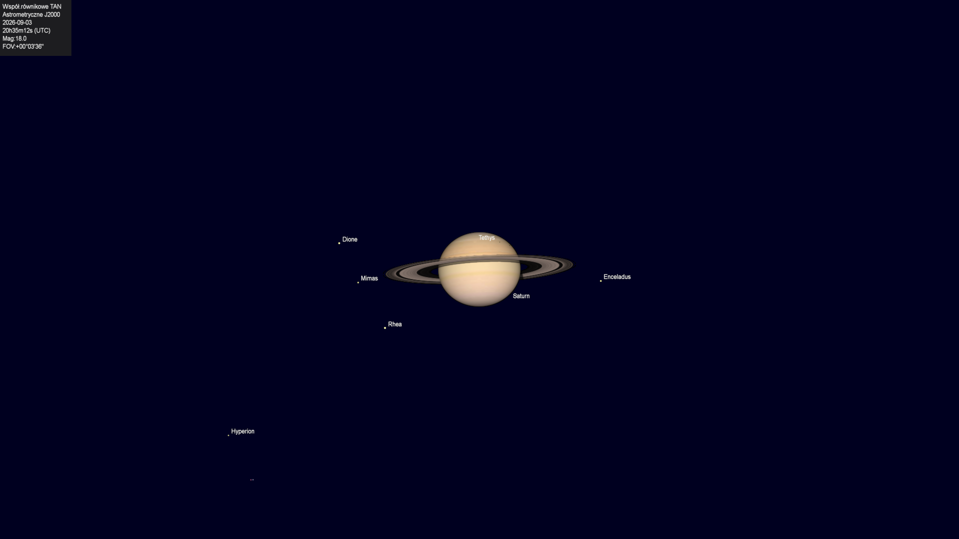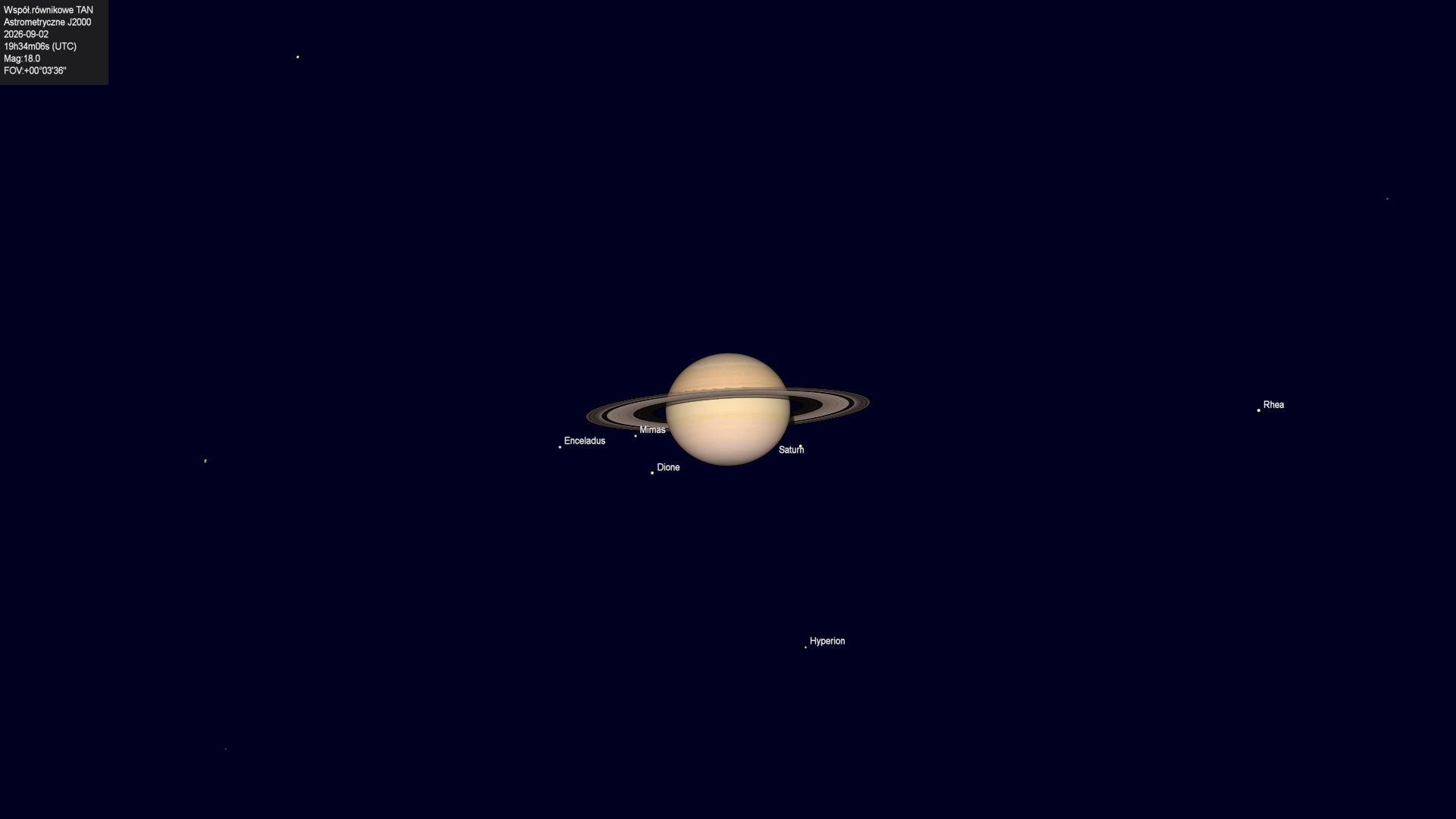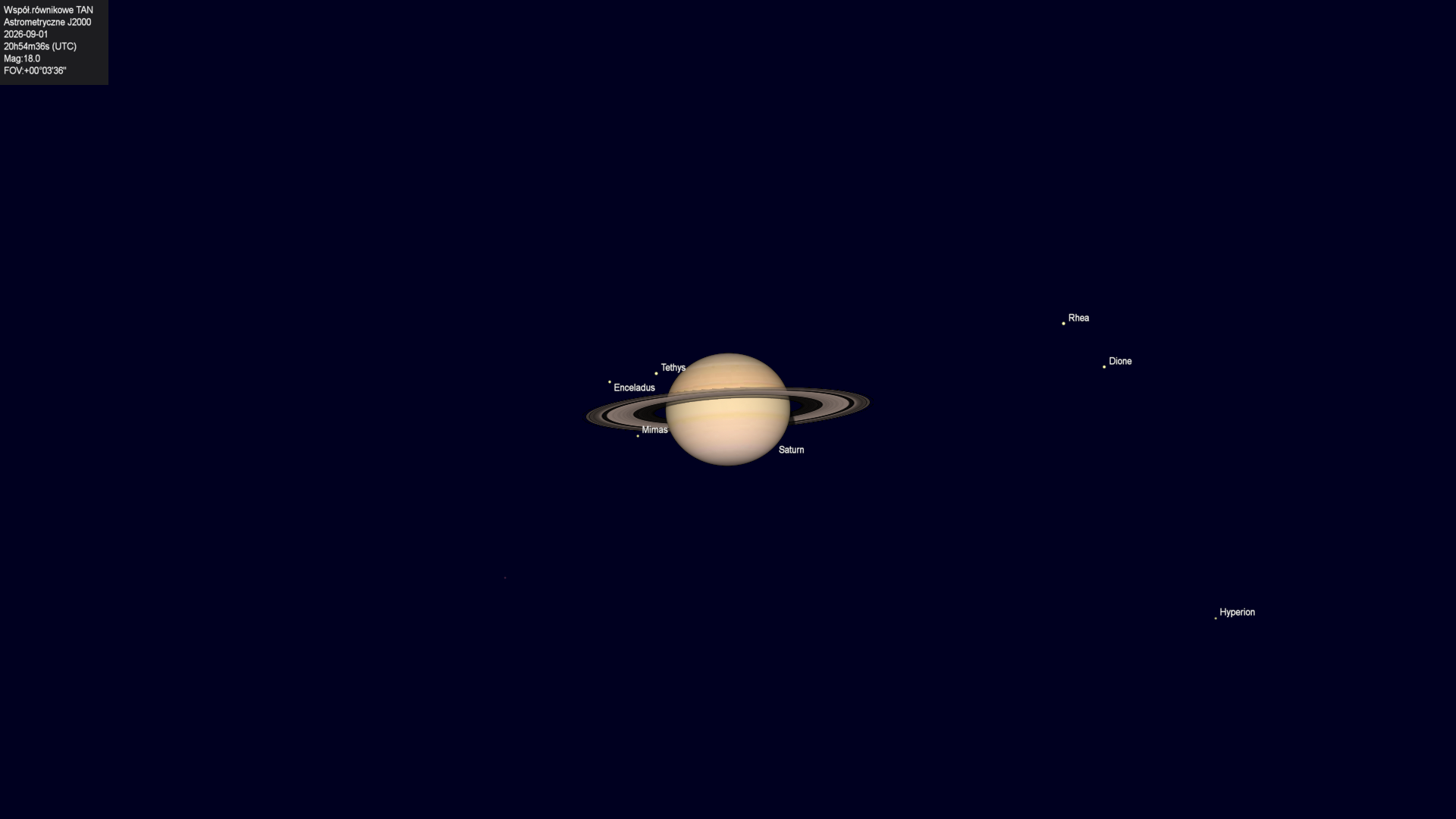 Koniec zakrycia księżyca Dione przez tarczę planety.