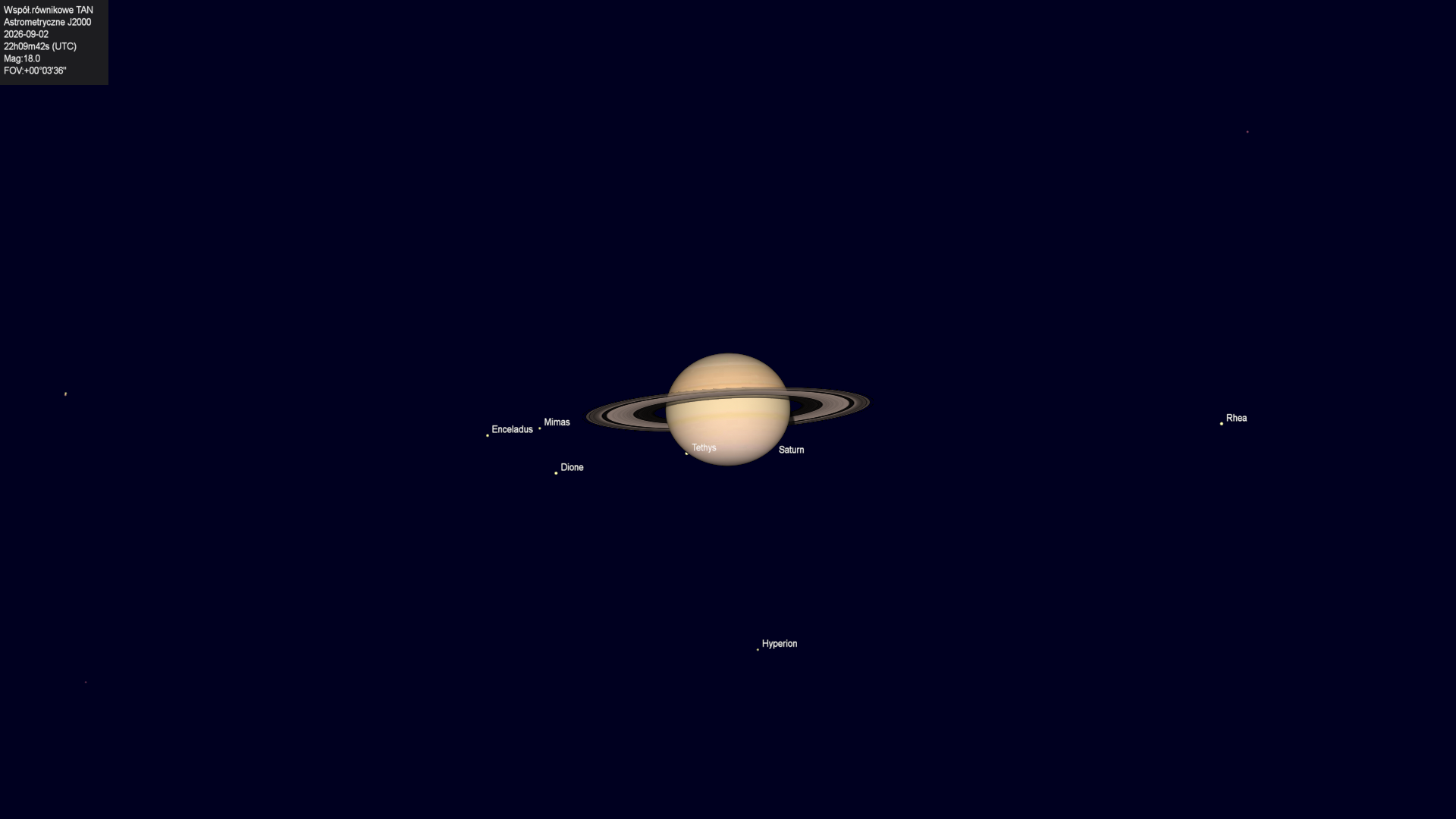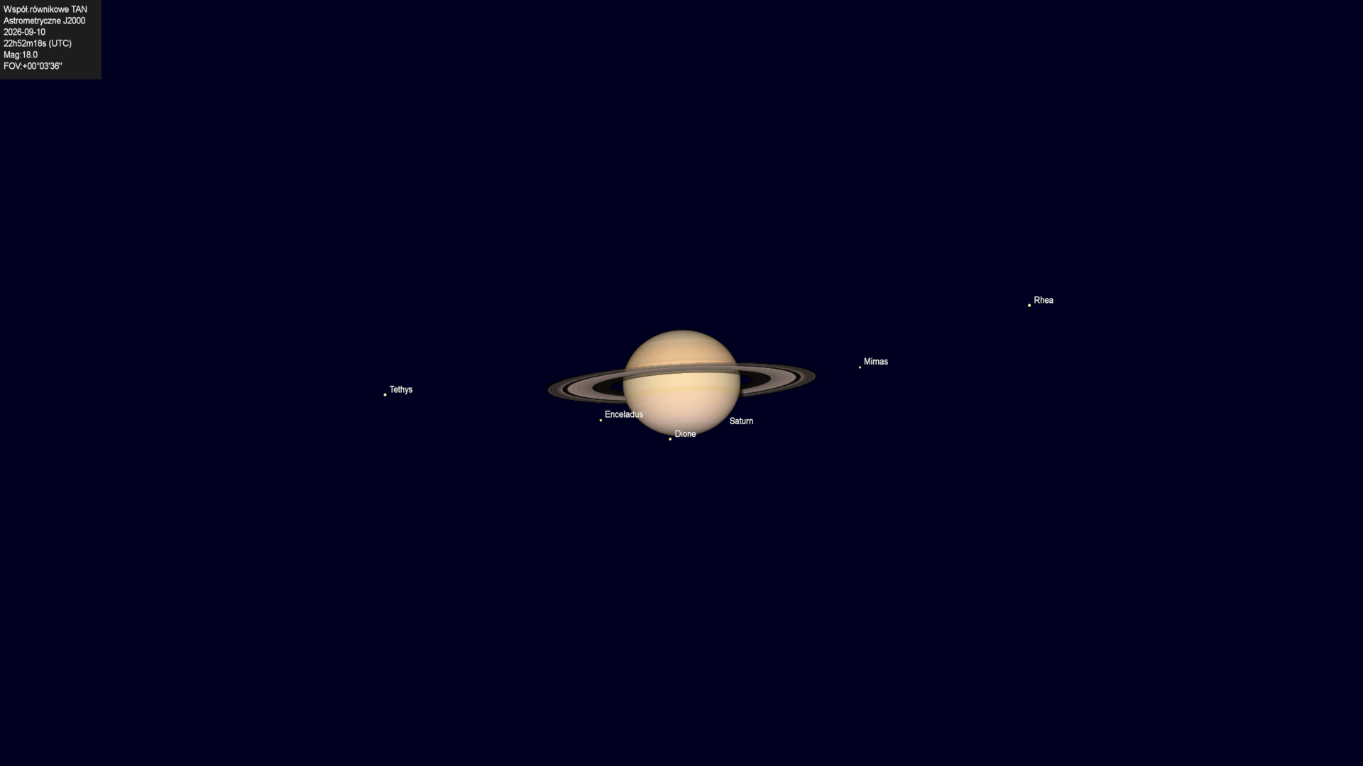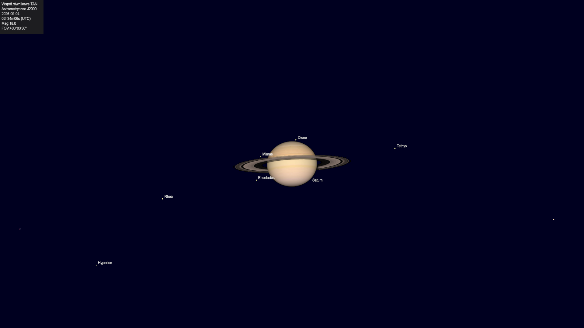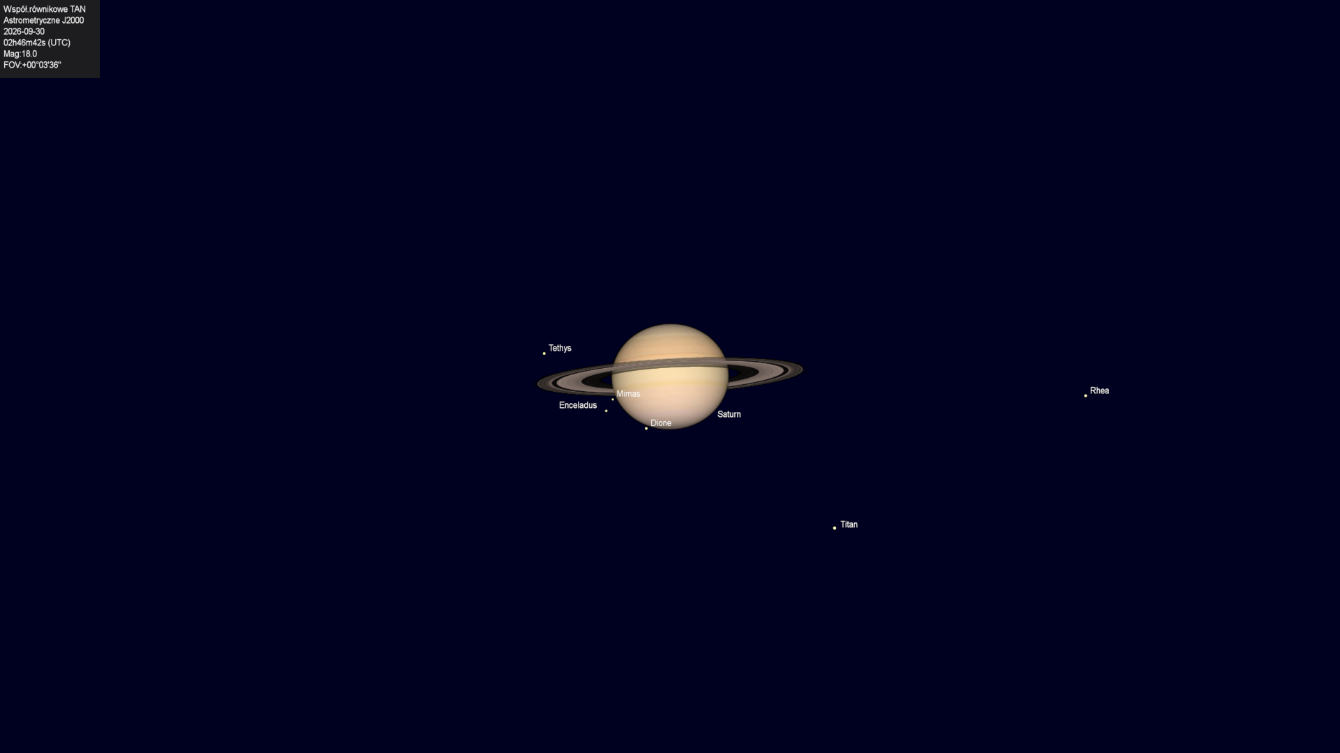 Koniec zakrycia księżyca Tethysa przez tarczę planety.