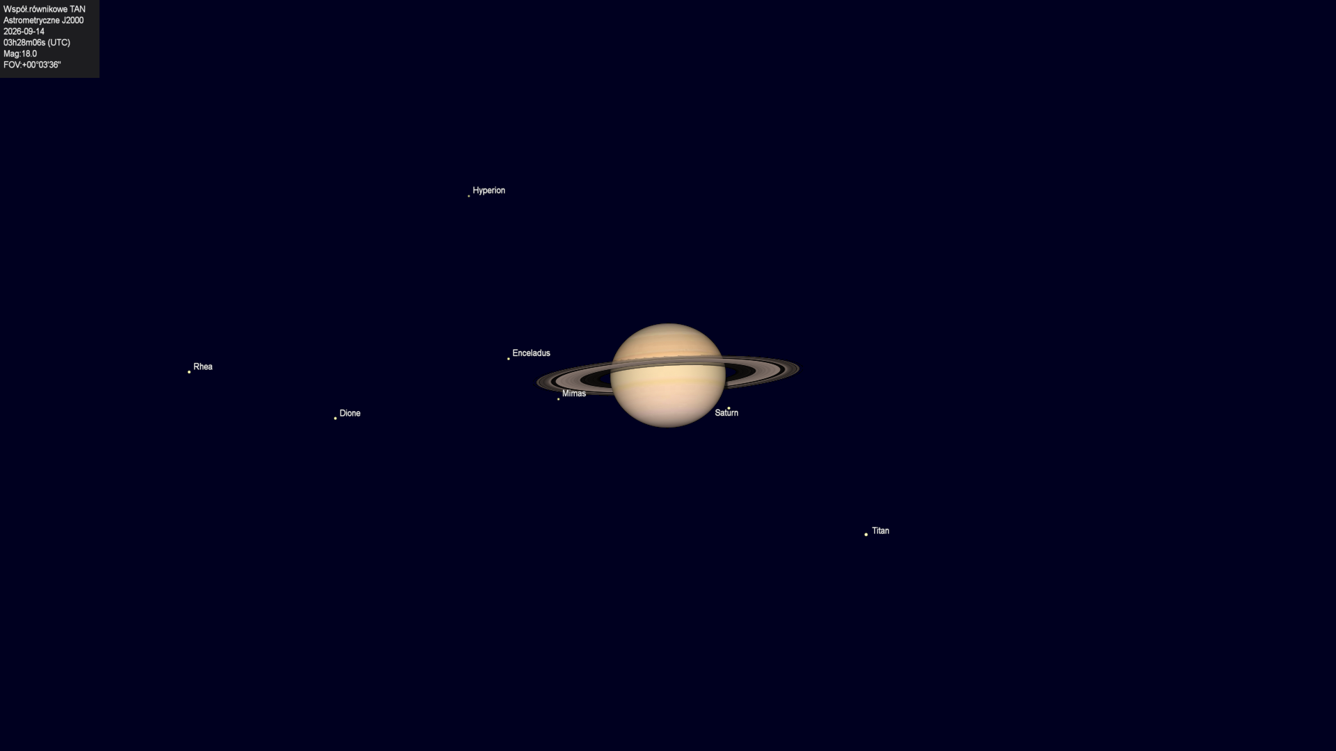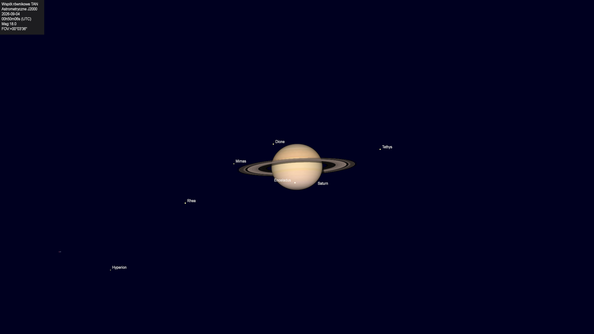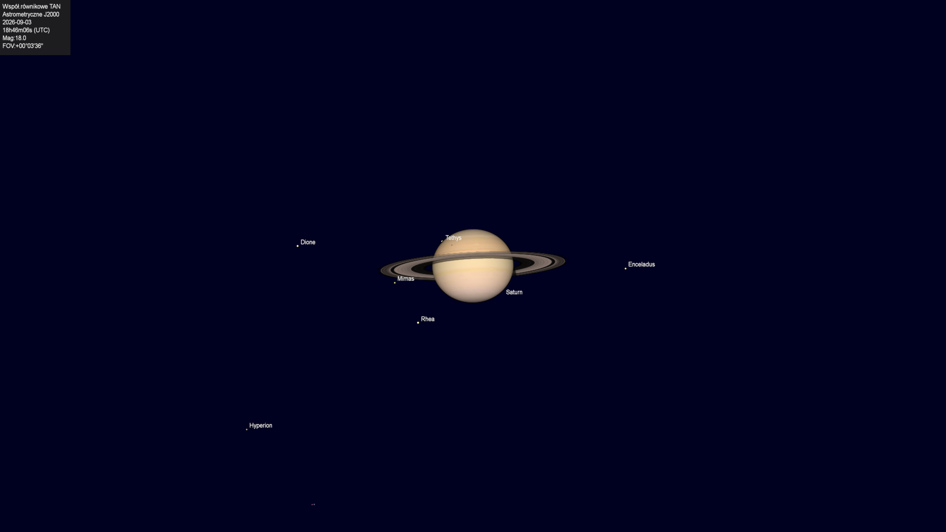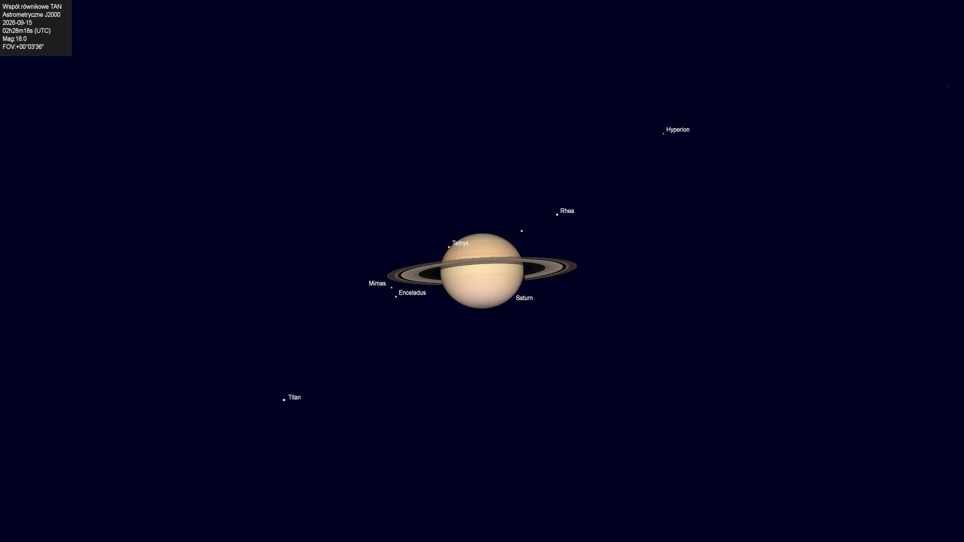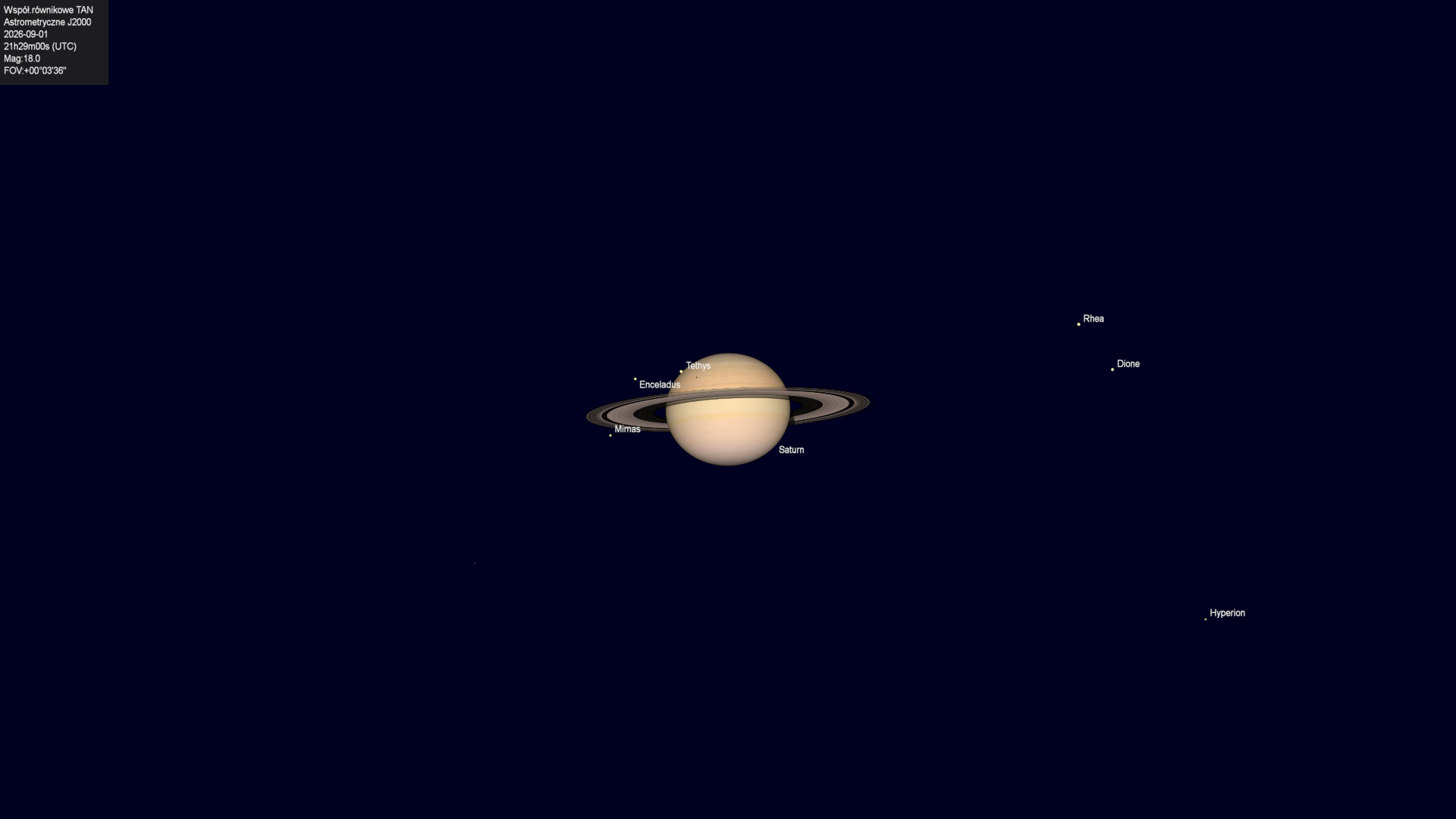 Koniec zakrycia księżyca Tethysa przez tarczę planety.