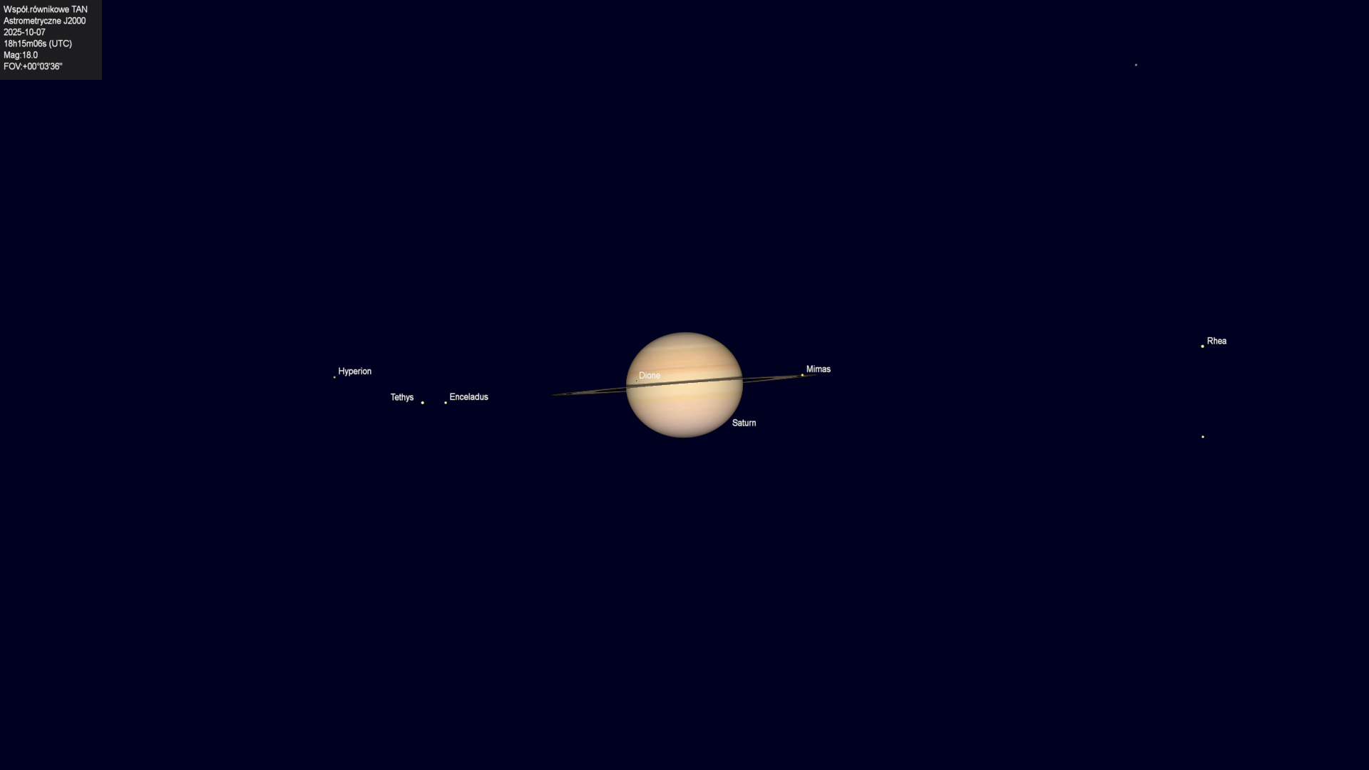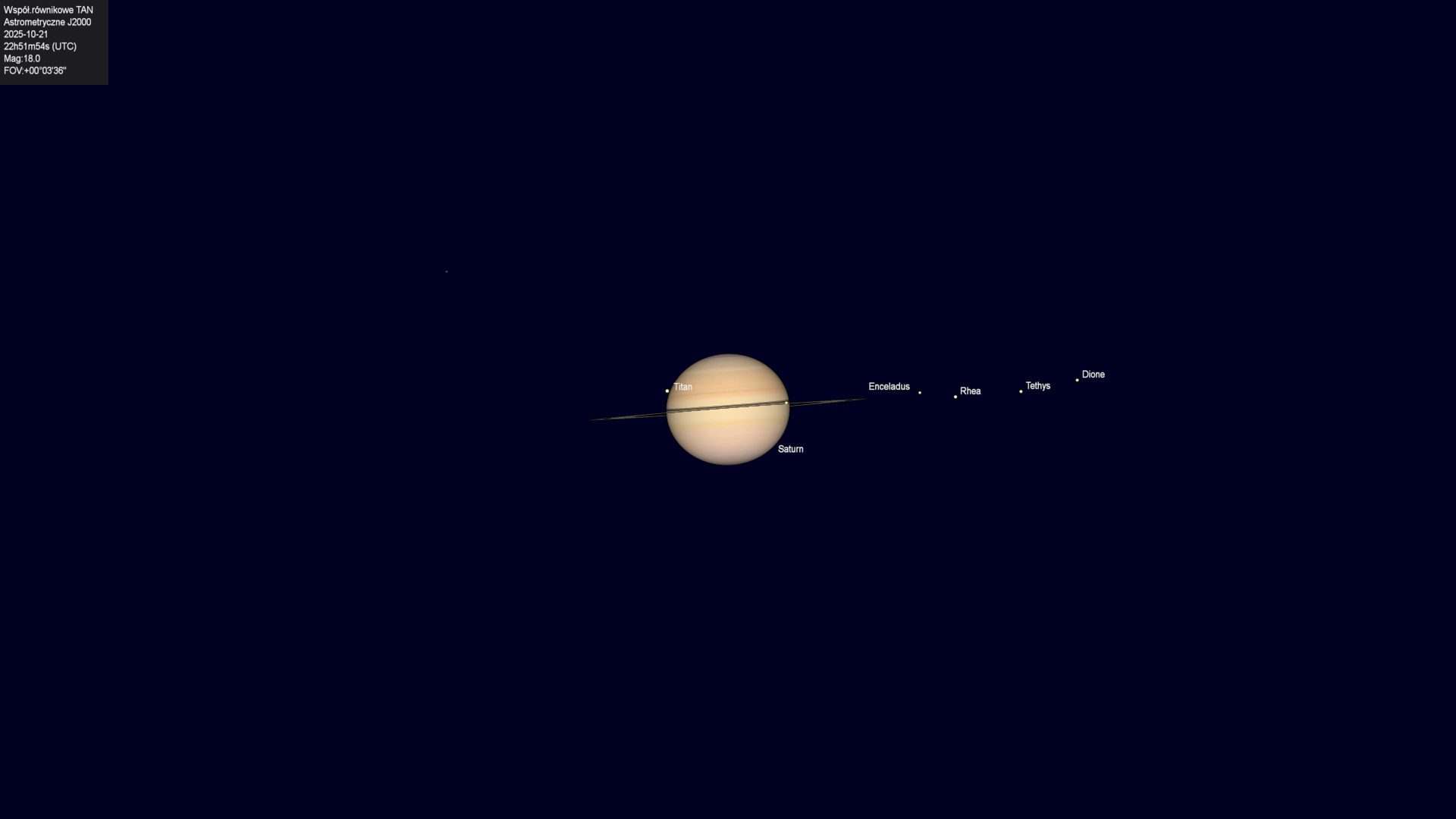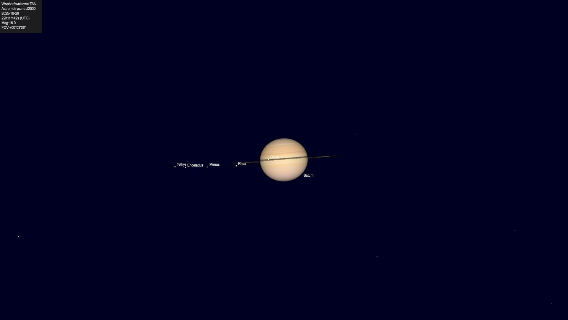 Początek zakrycia księżyca Tethysa przez tarczę planety.