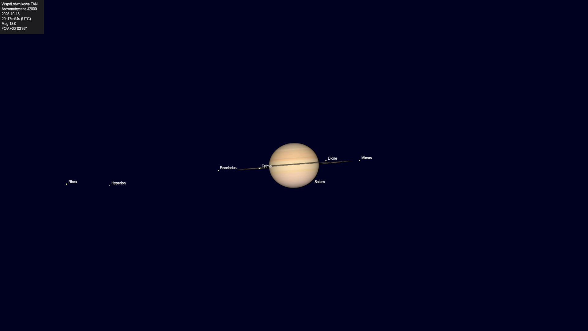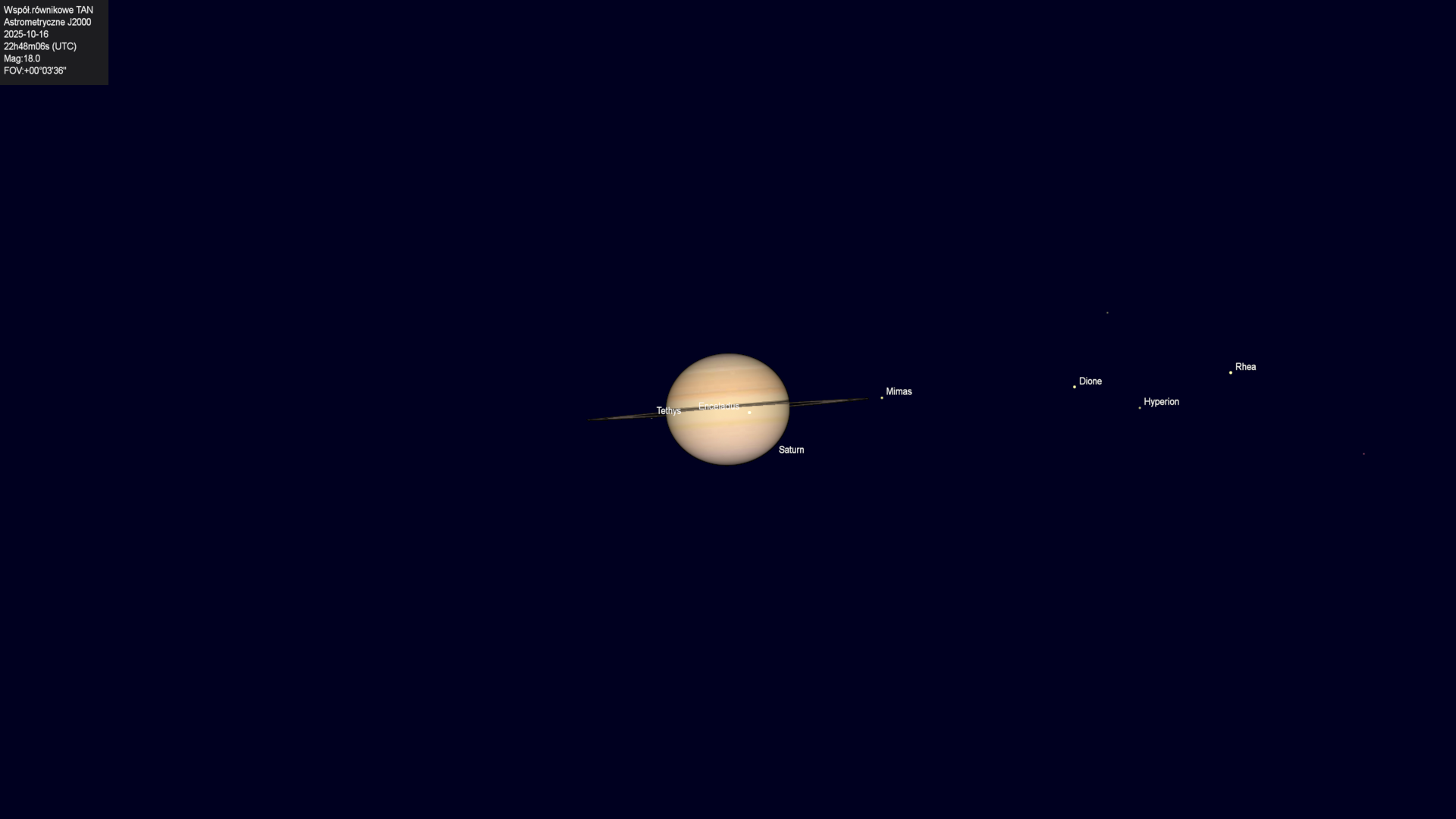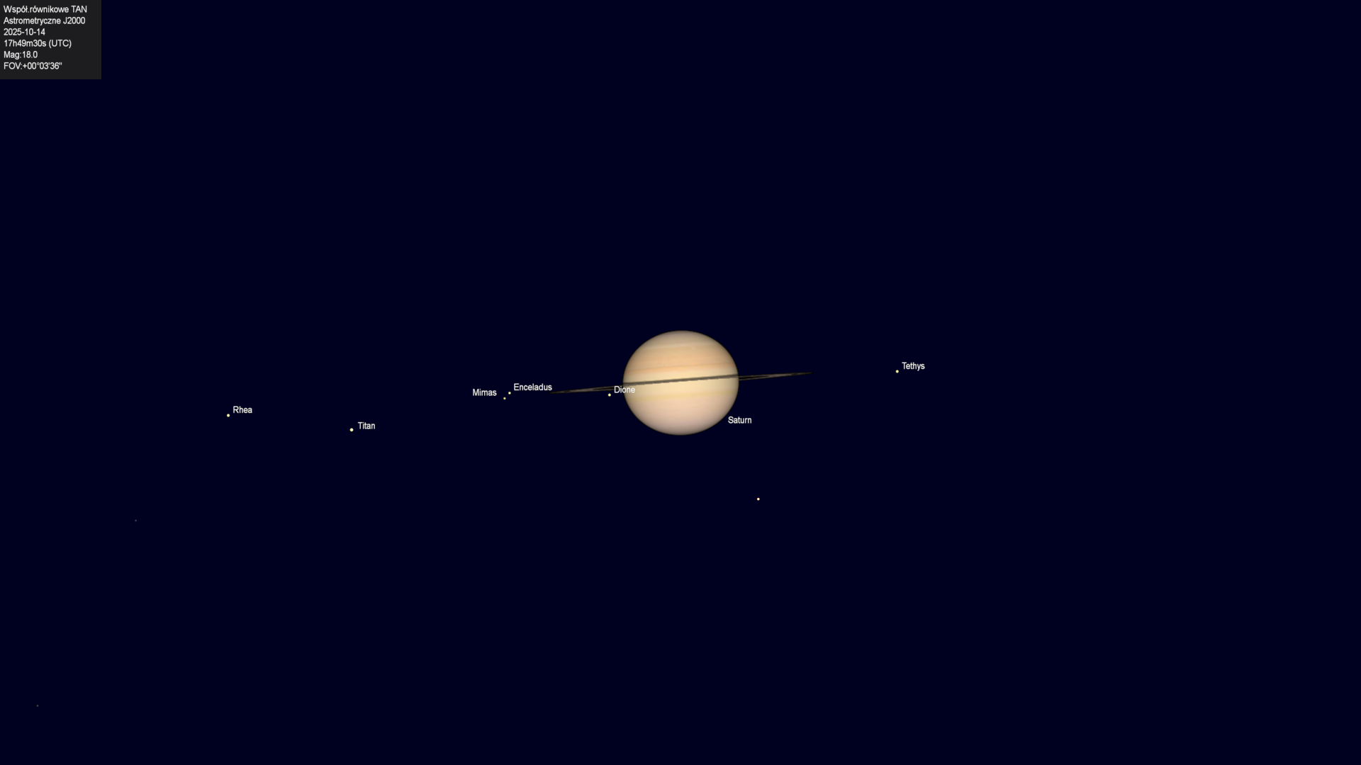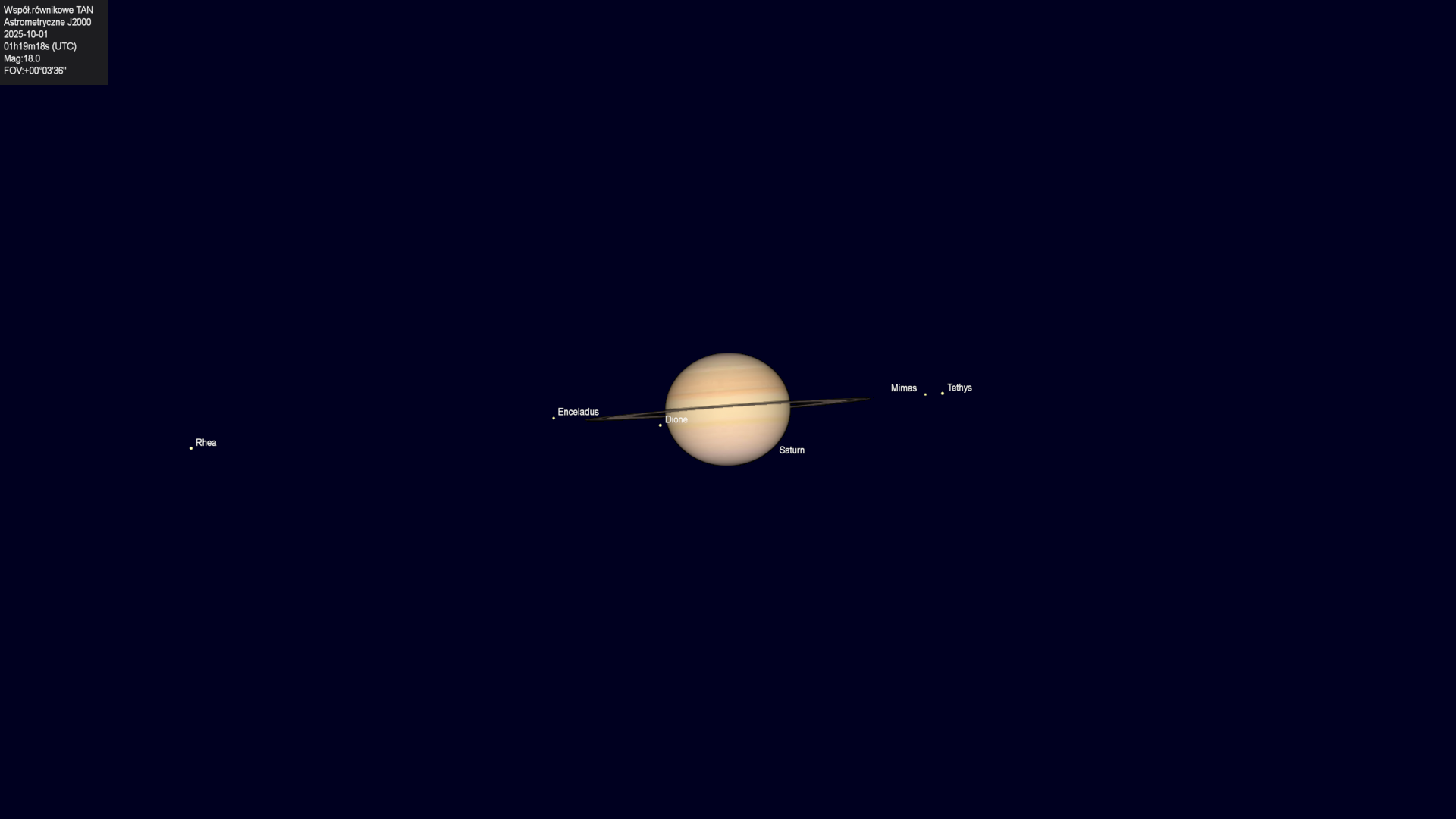 Początek zakrycia księżyca Tethysa przez tarczę planety.