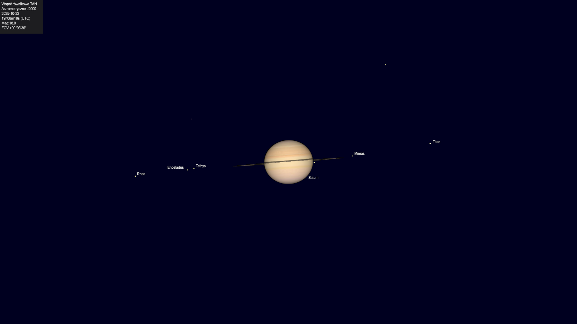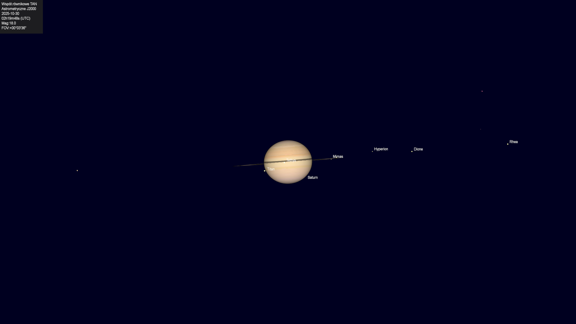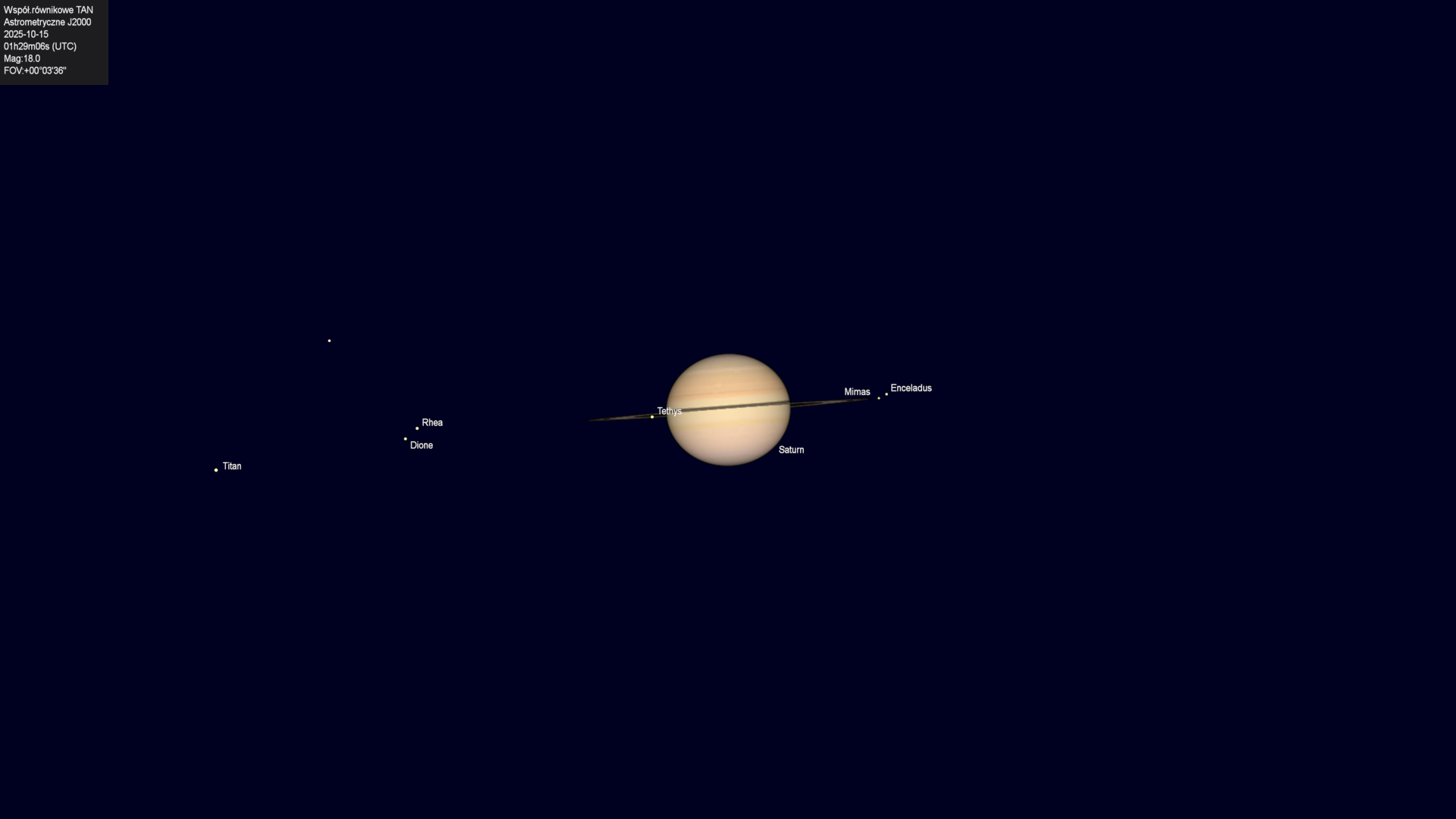 Koniec zakrycia księżyca Tytana przez tarczę planety.