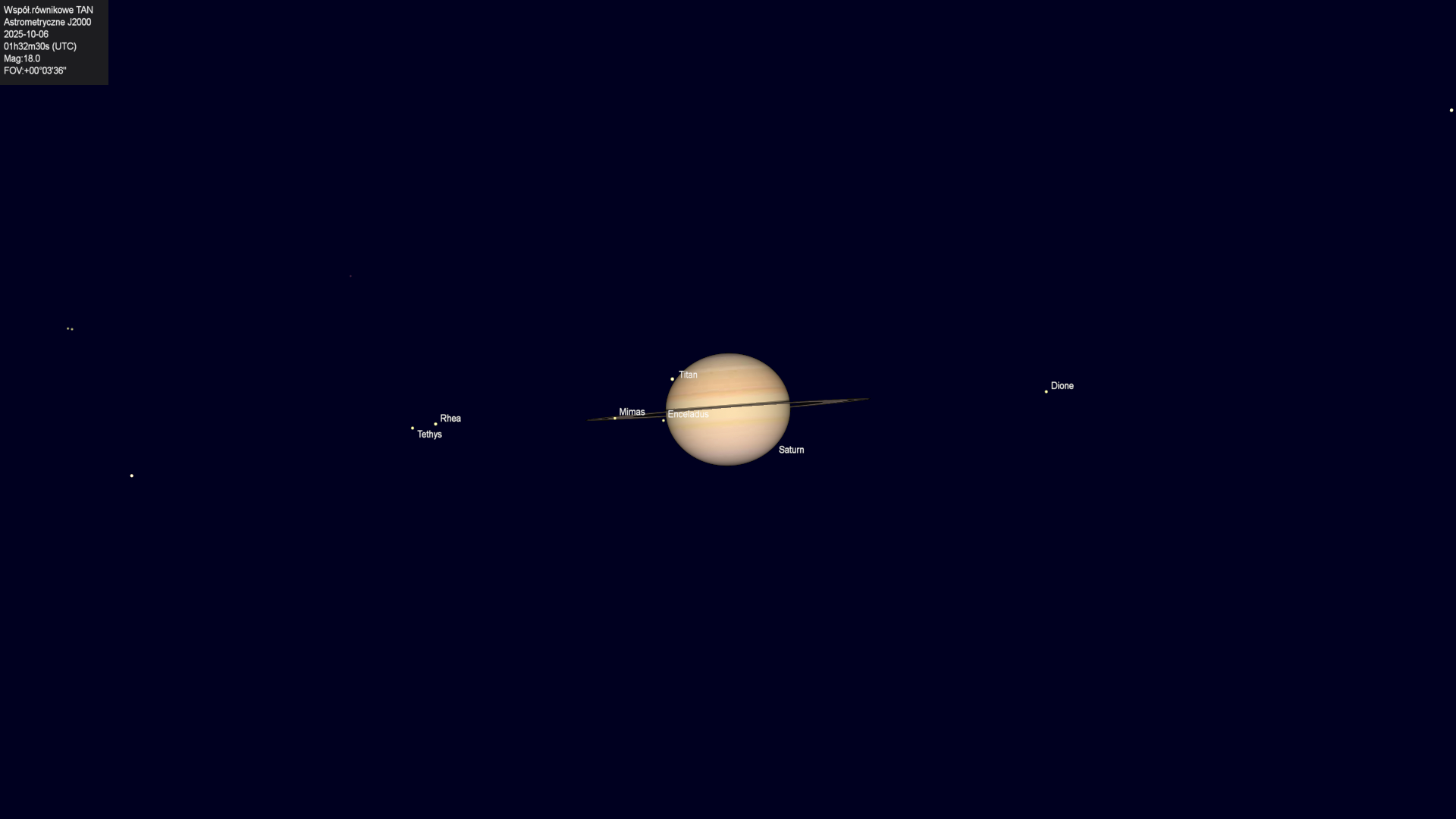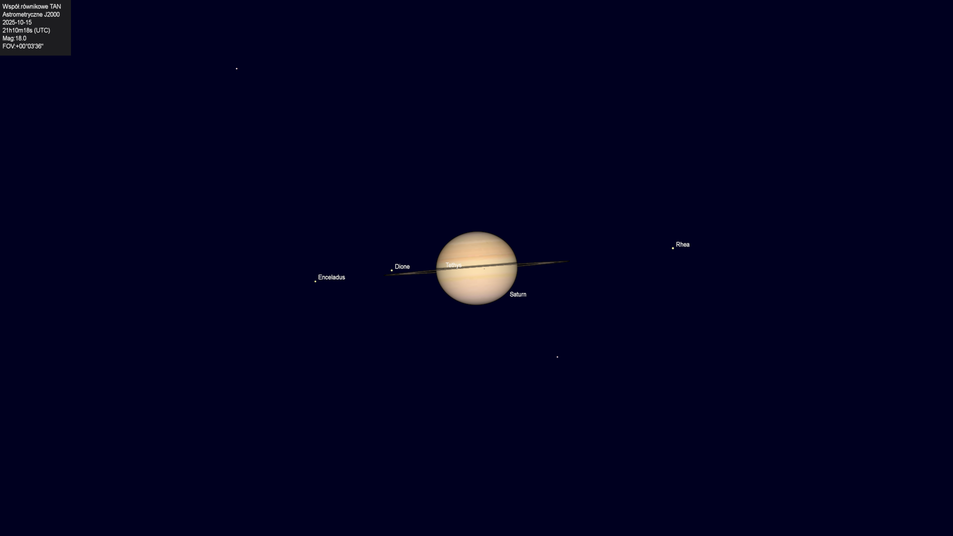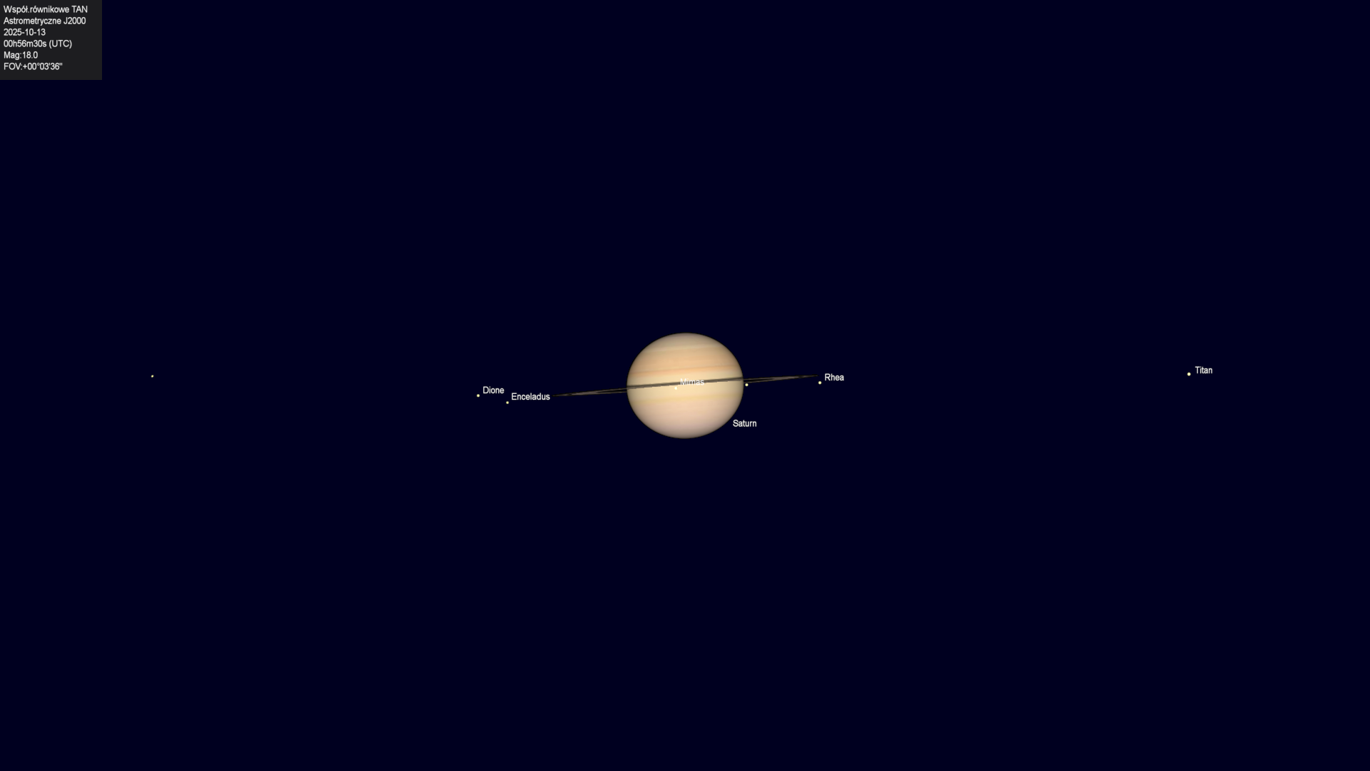 Koniec zakrycia księżyca Tytana przez tarczę planety.