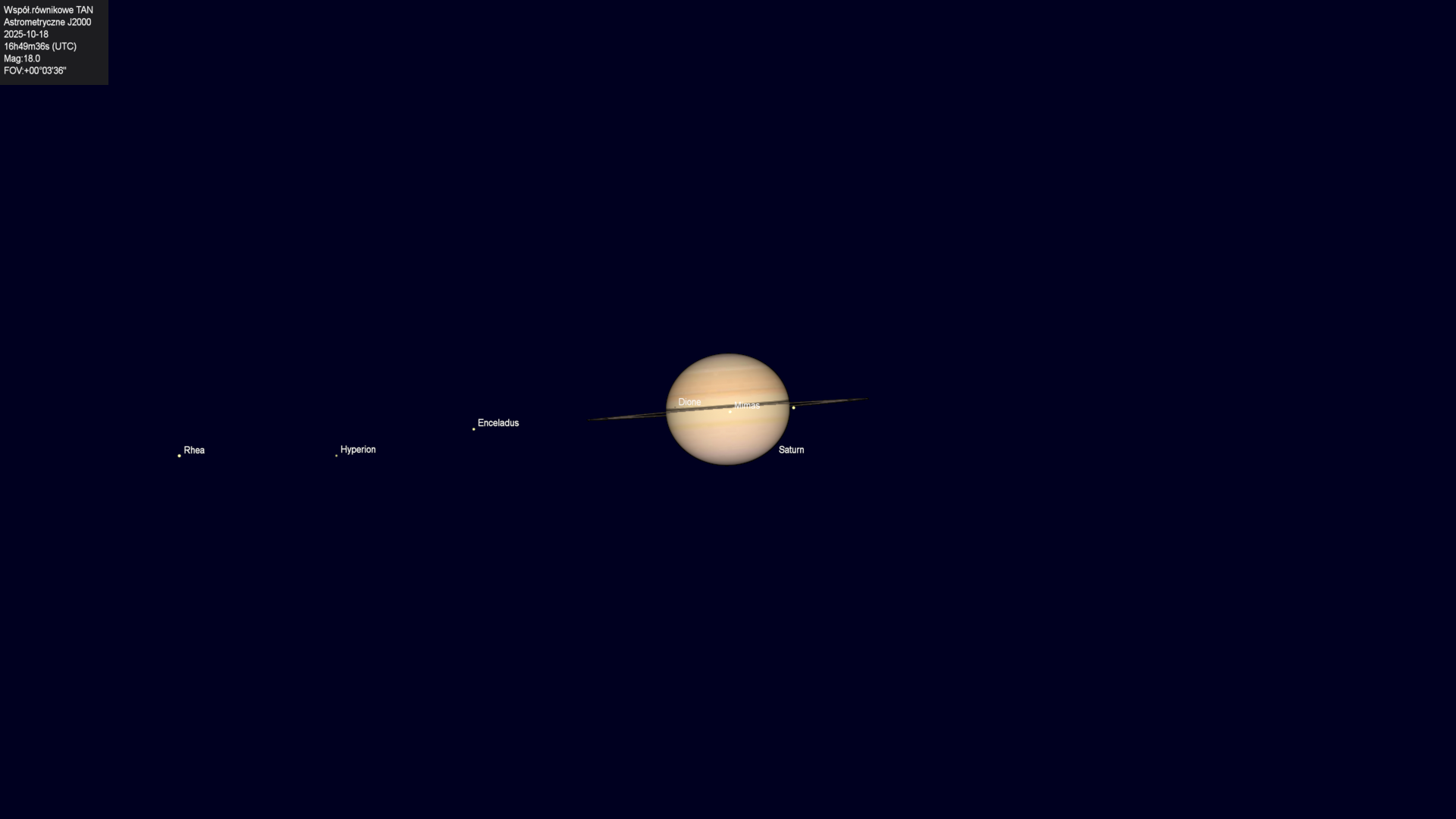 Początek zakrycia księżyca Rhea przez tarczę planety.