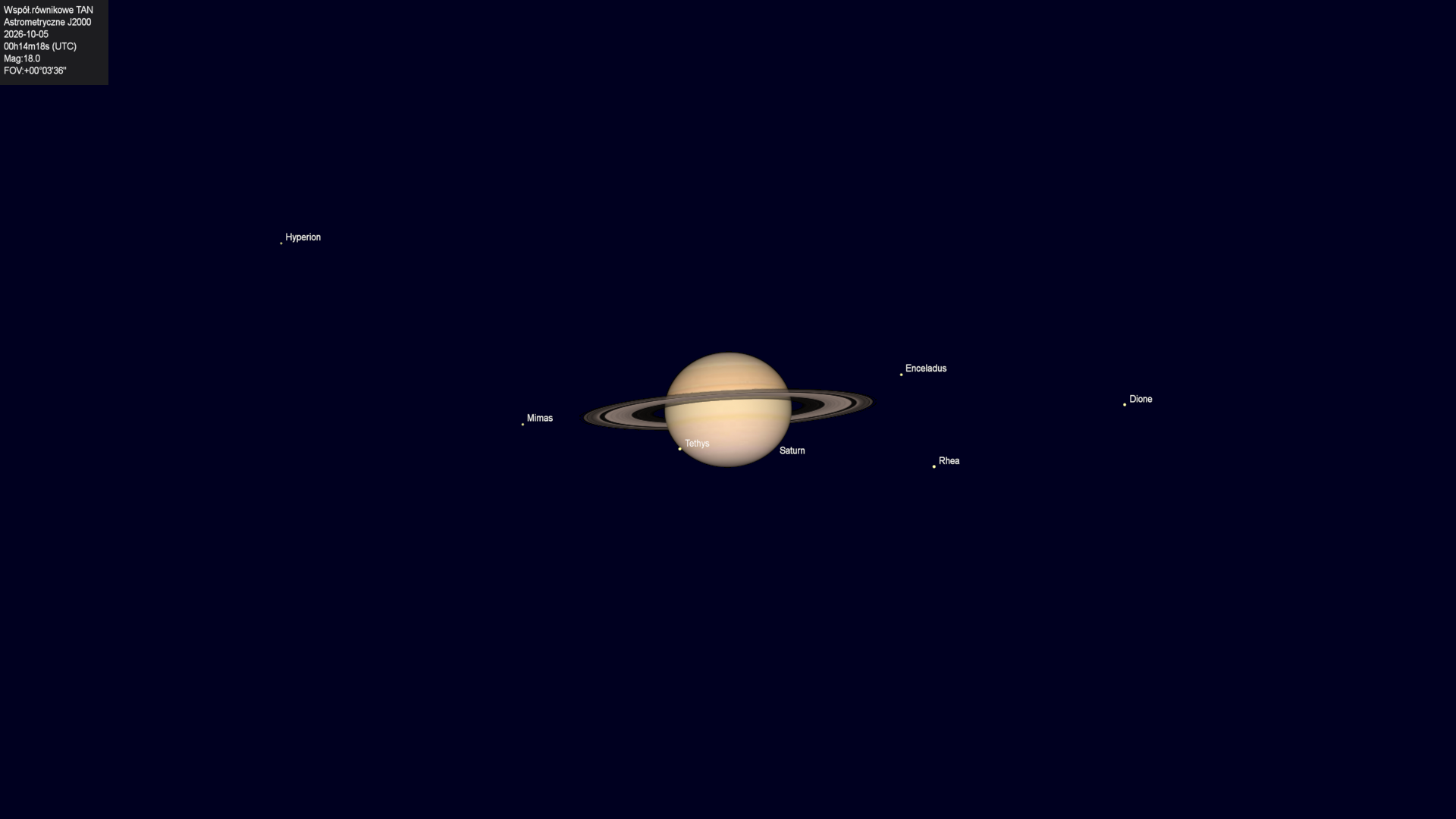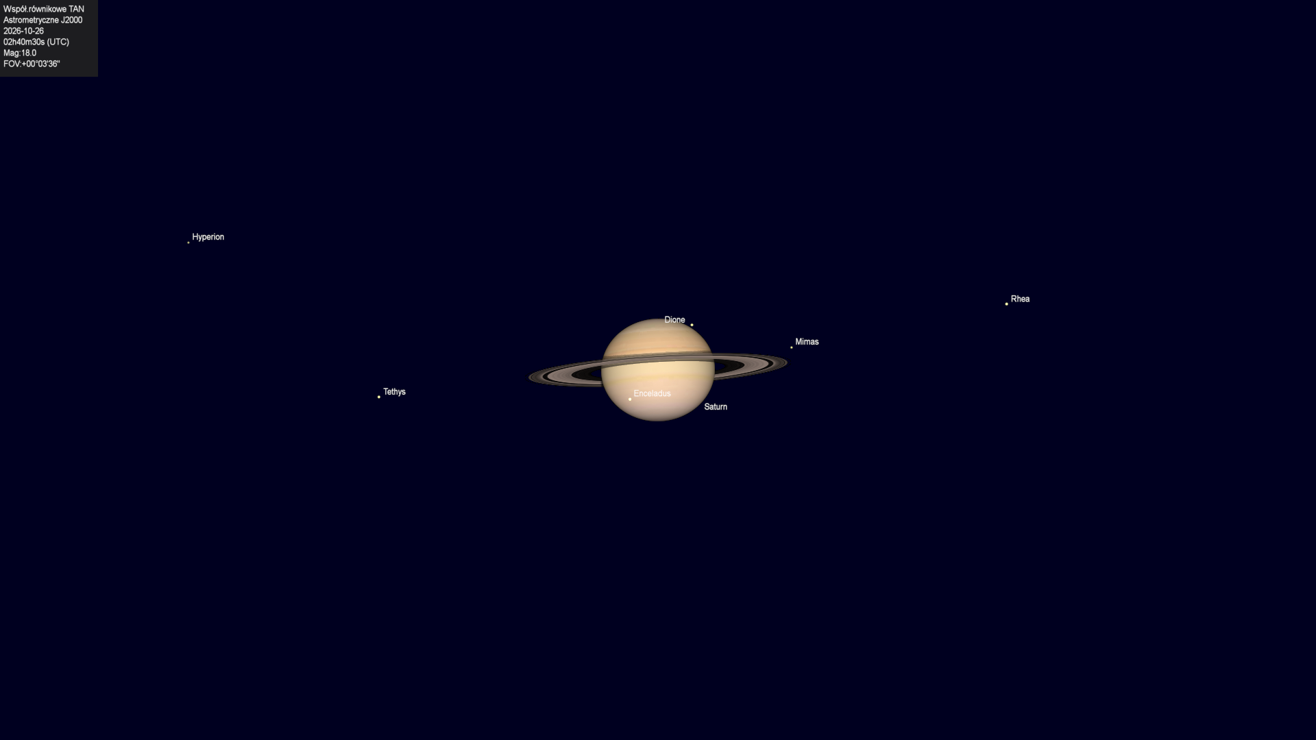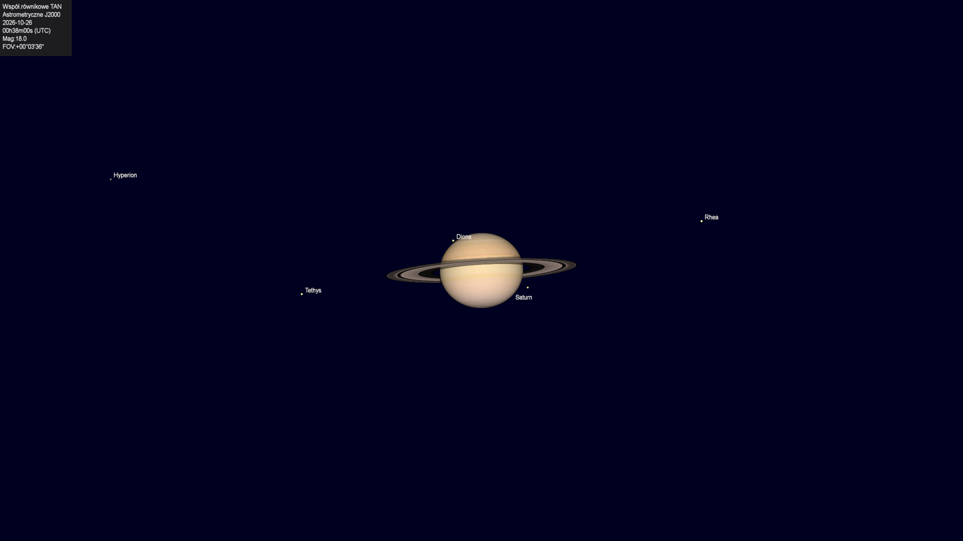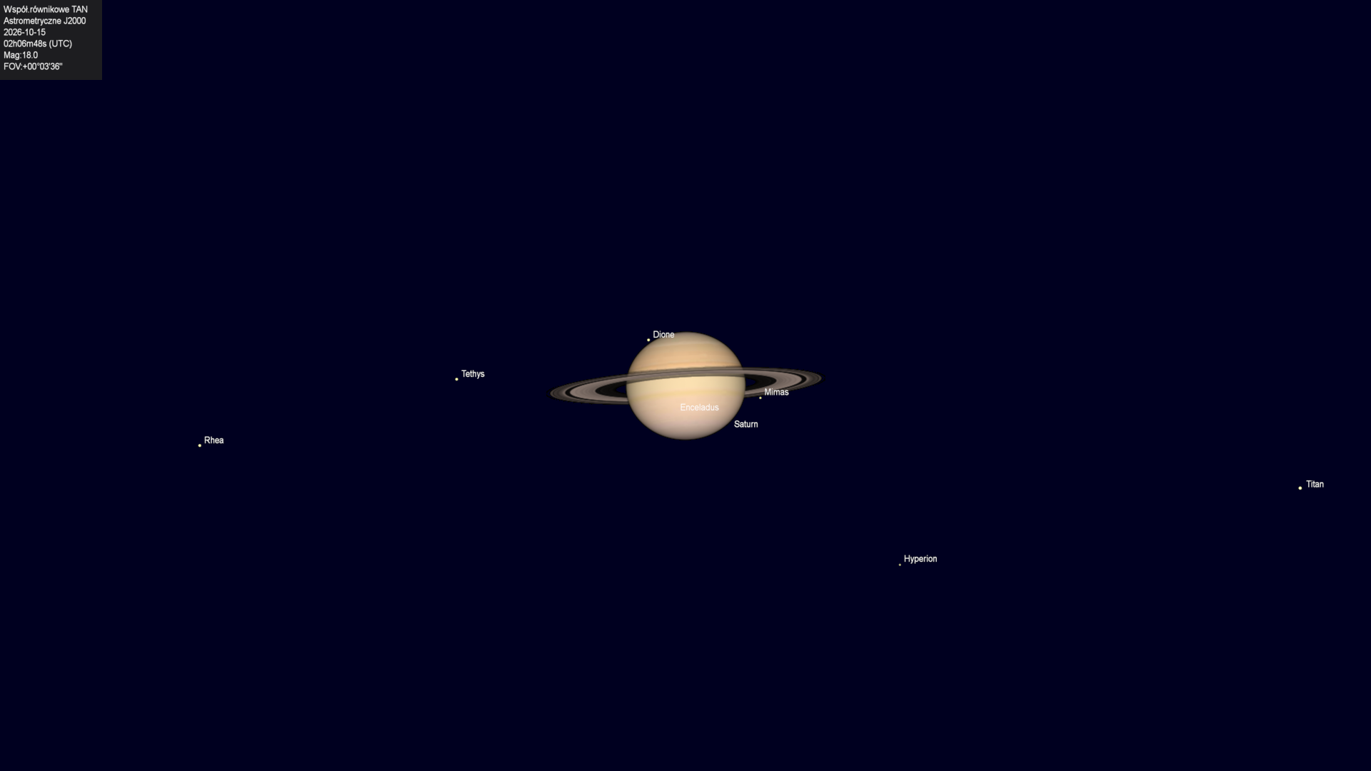 Początek zakrycia księżyca Tethysa przez tarczę planety.