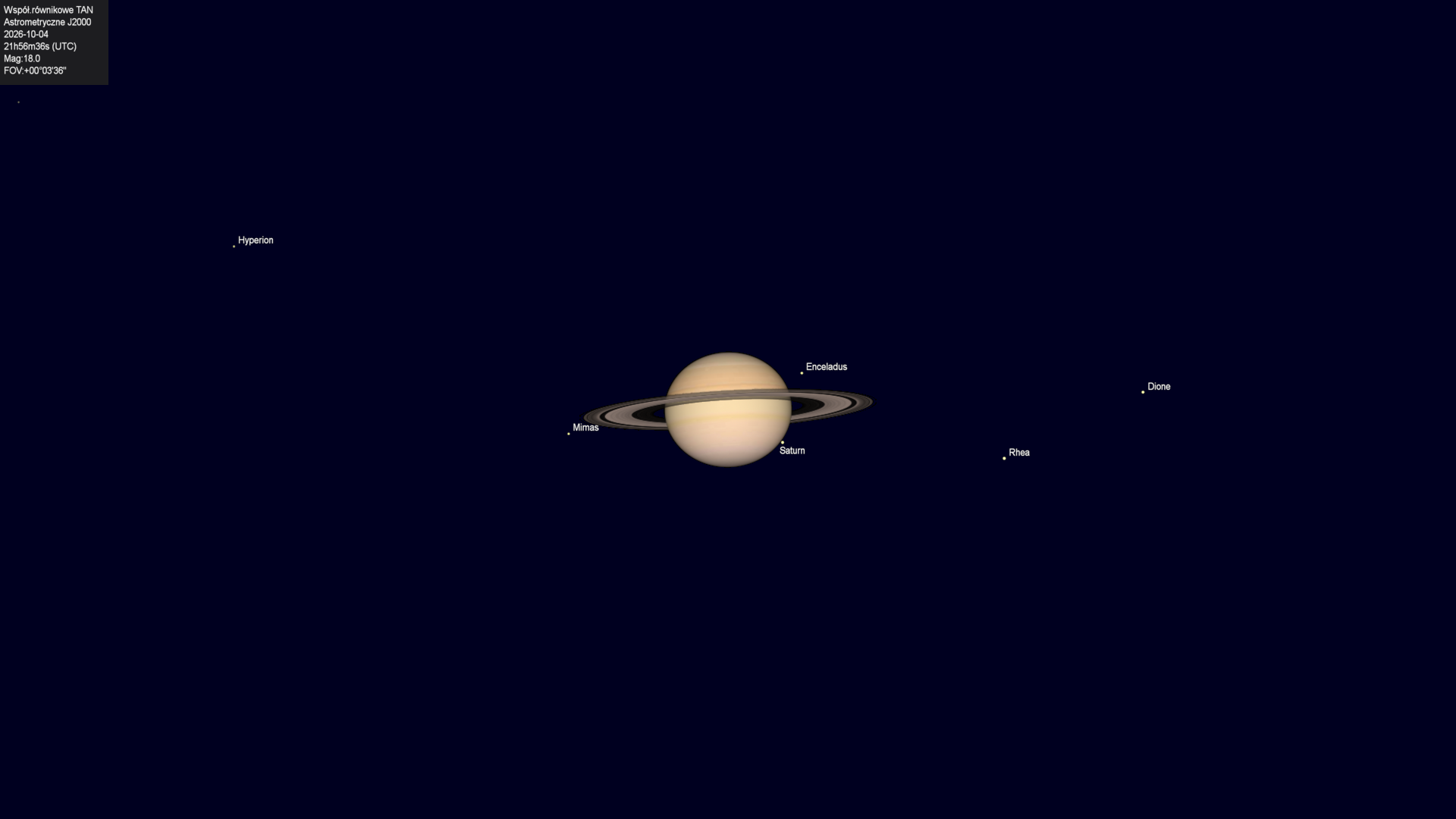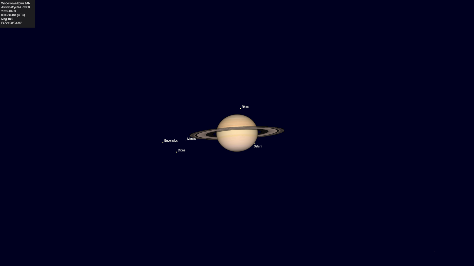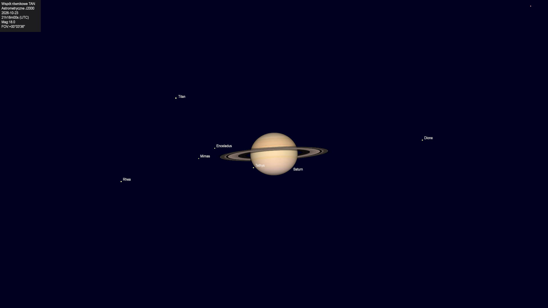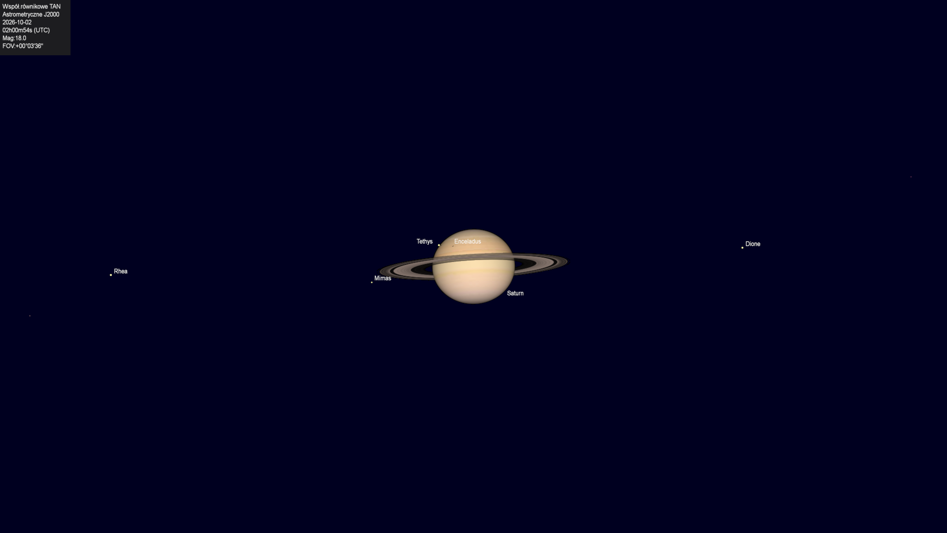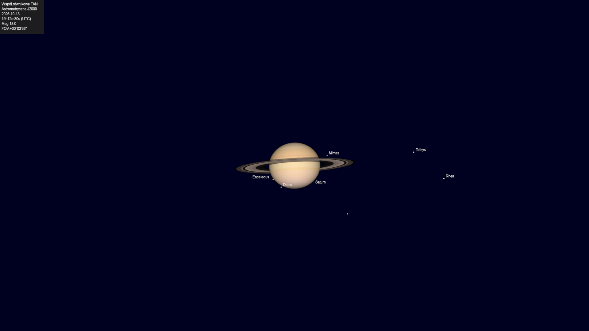 Początek zakrycia księżyca Tethysa przez tarczę planety.