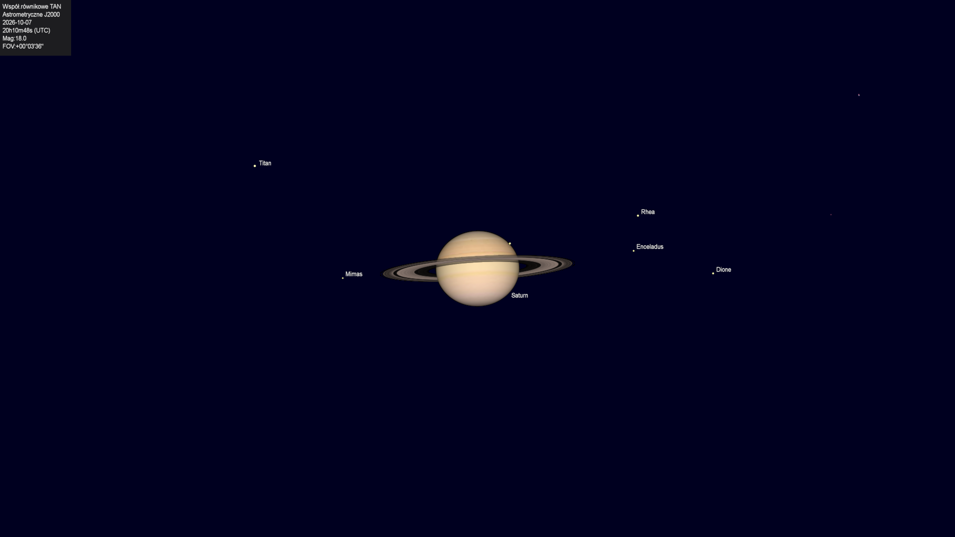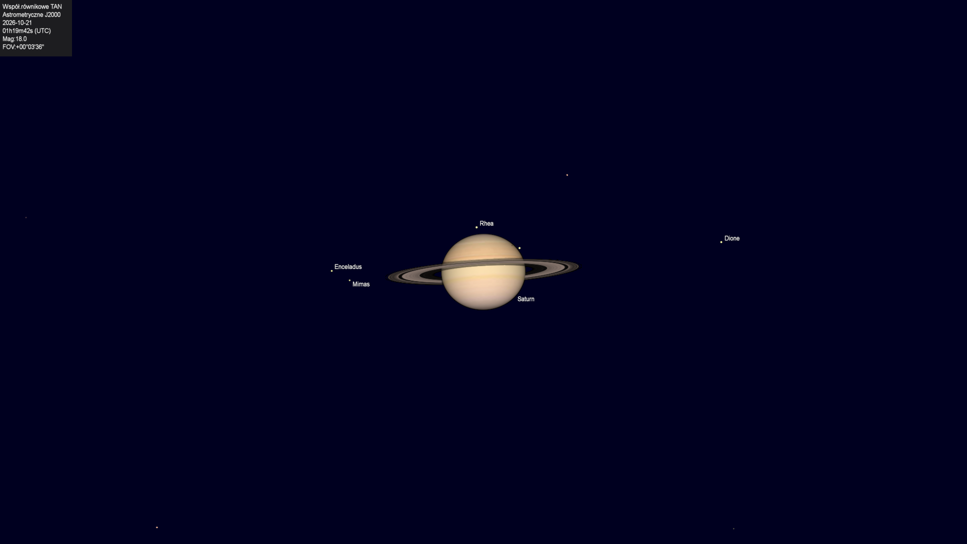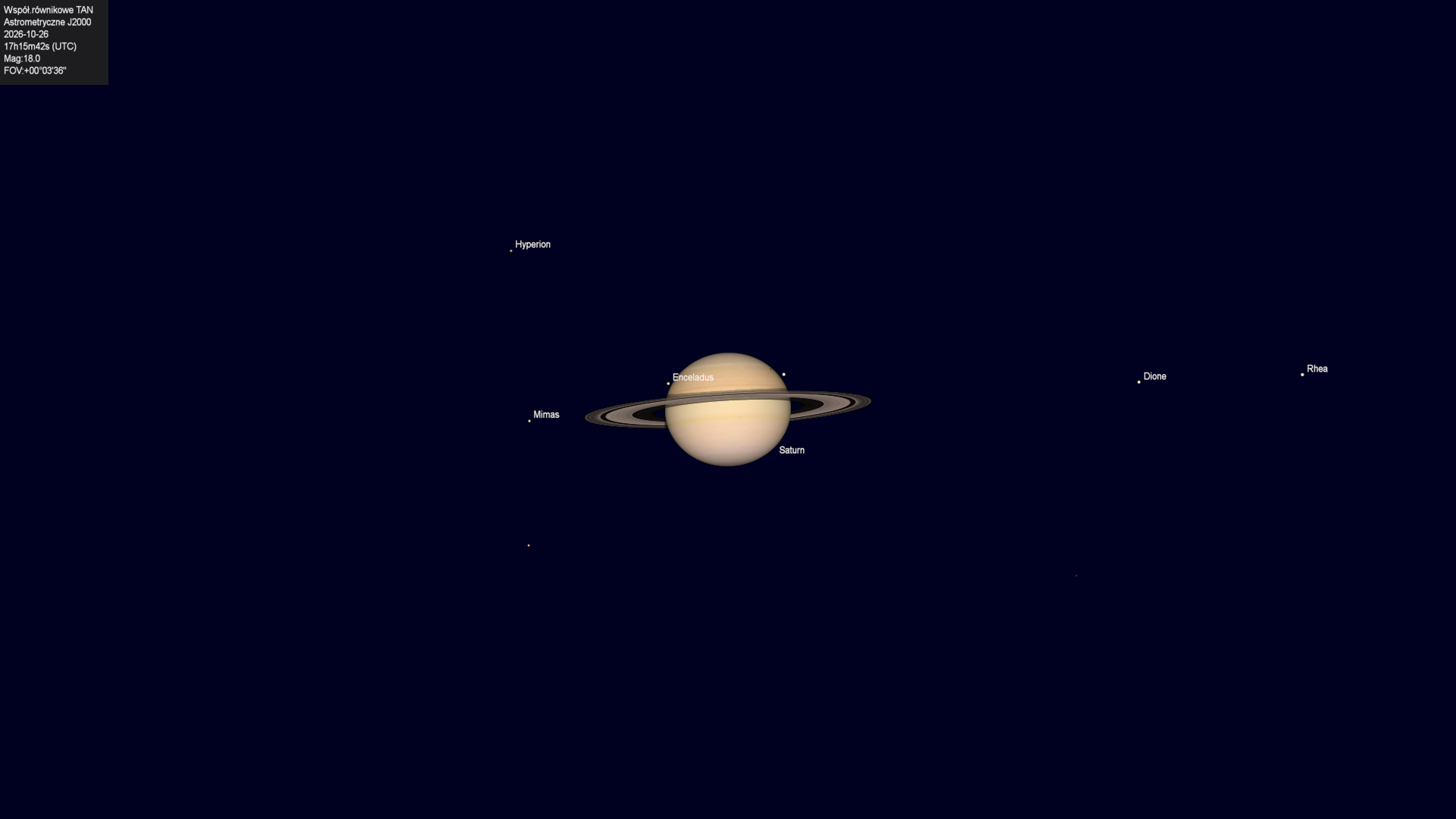 Koniec zakrycia księżyca Dione przez tarczę planety.
