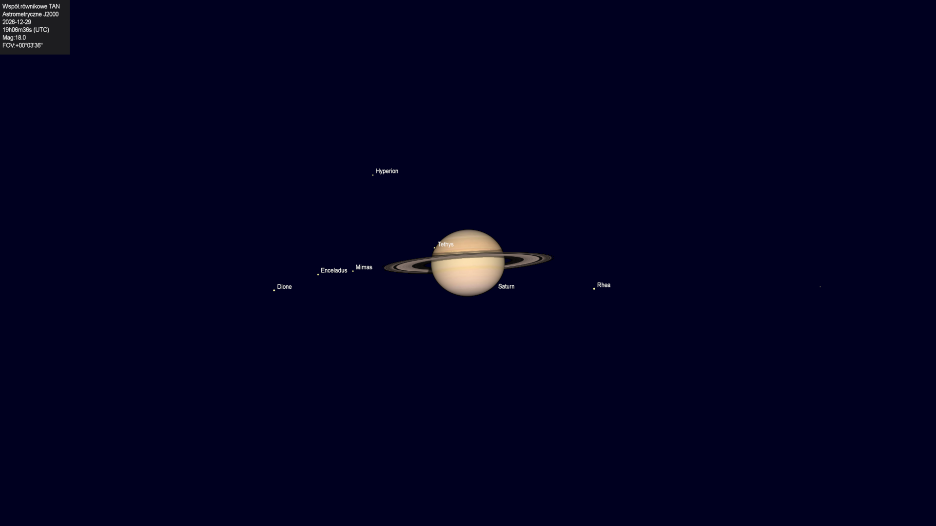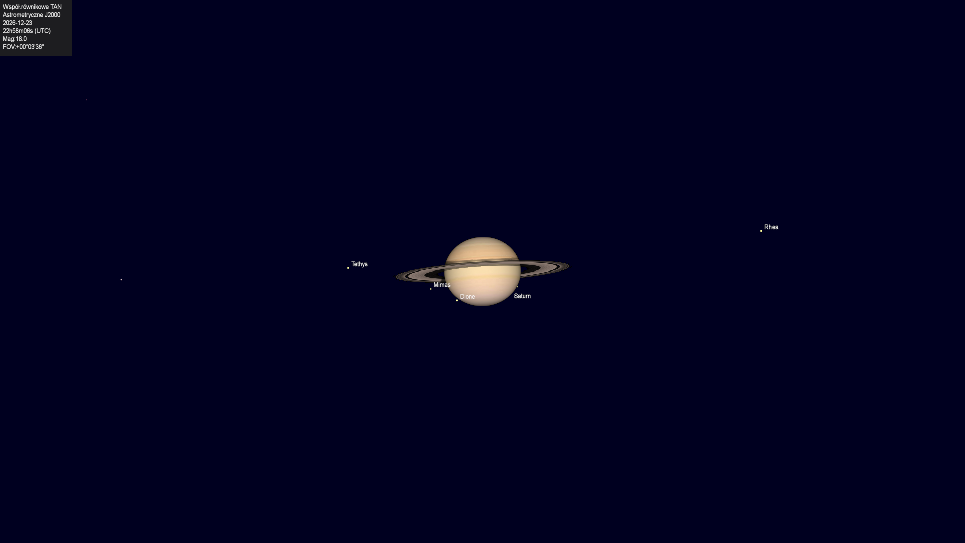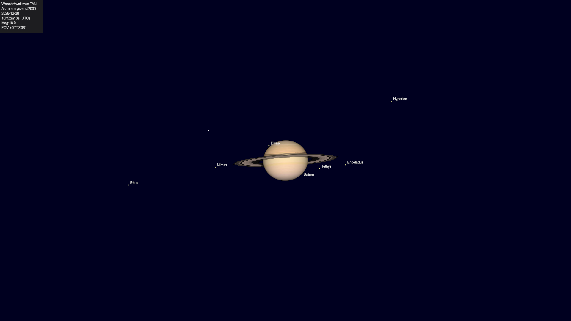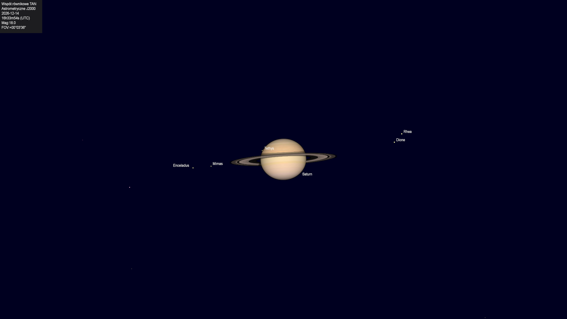 Początek zakrycia księżyca Tethysa przez tarczę planety.