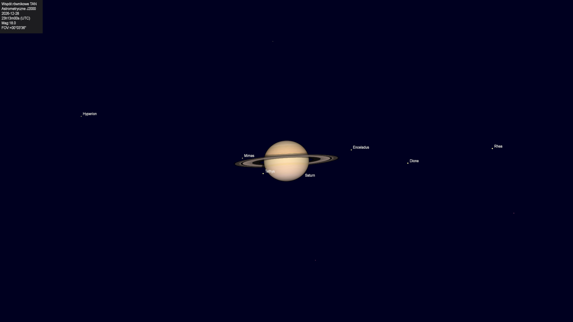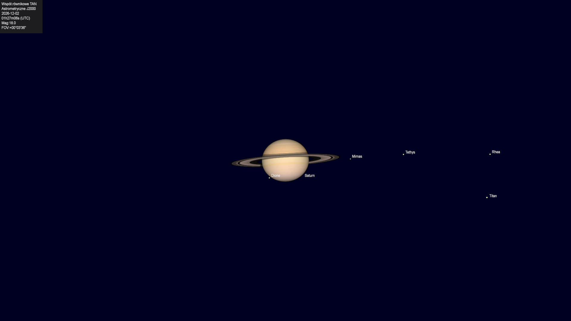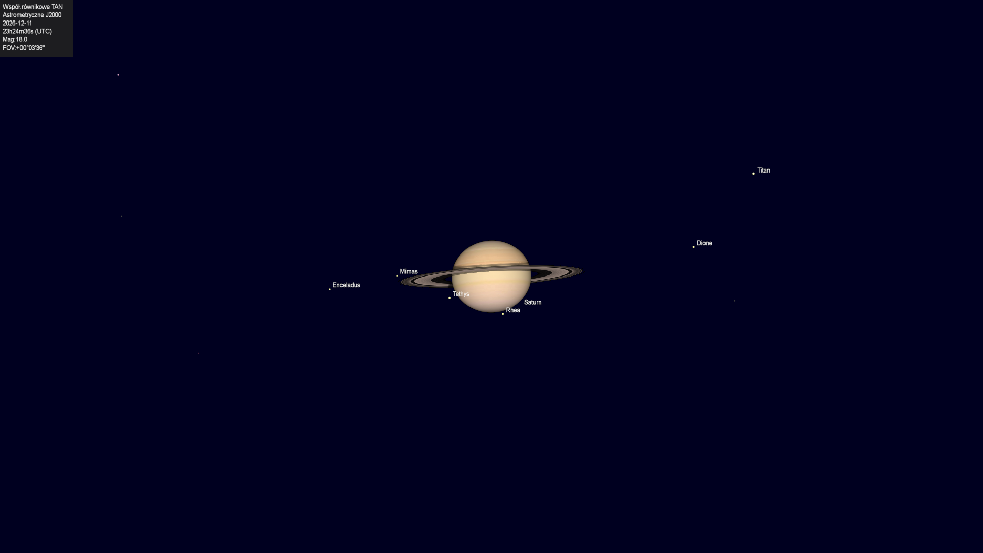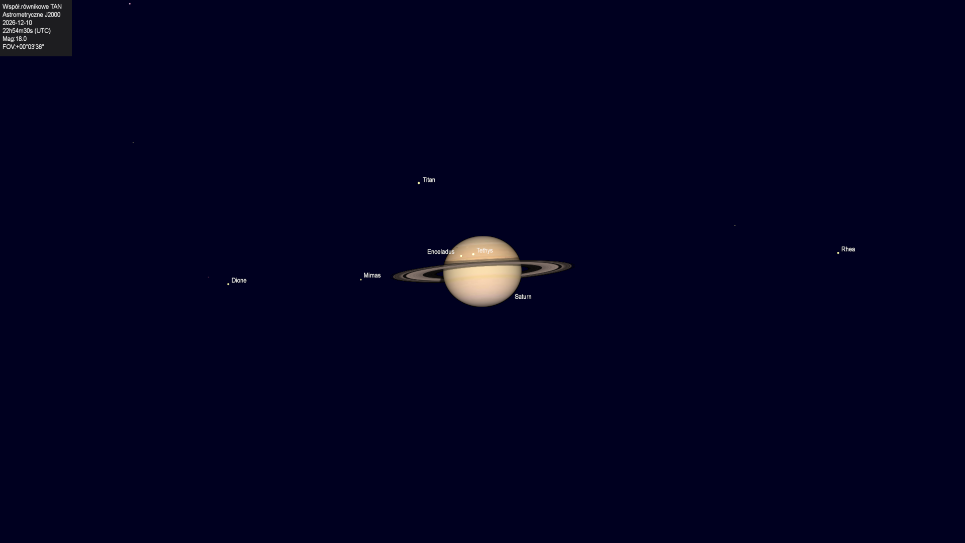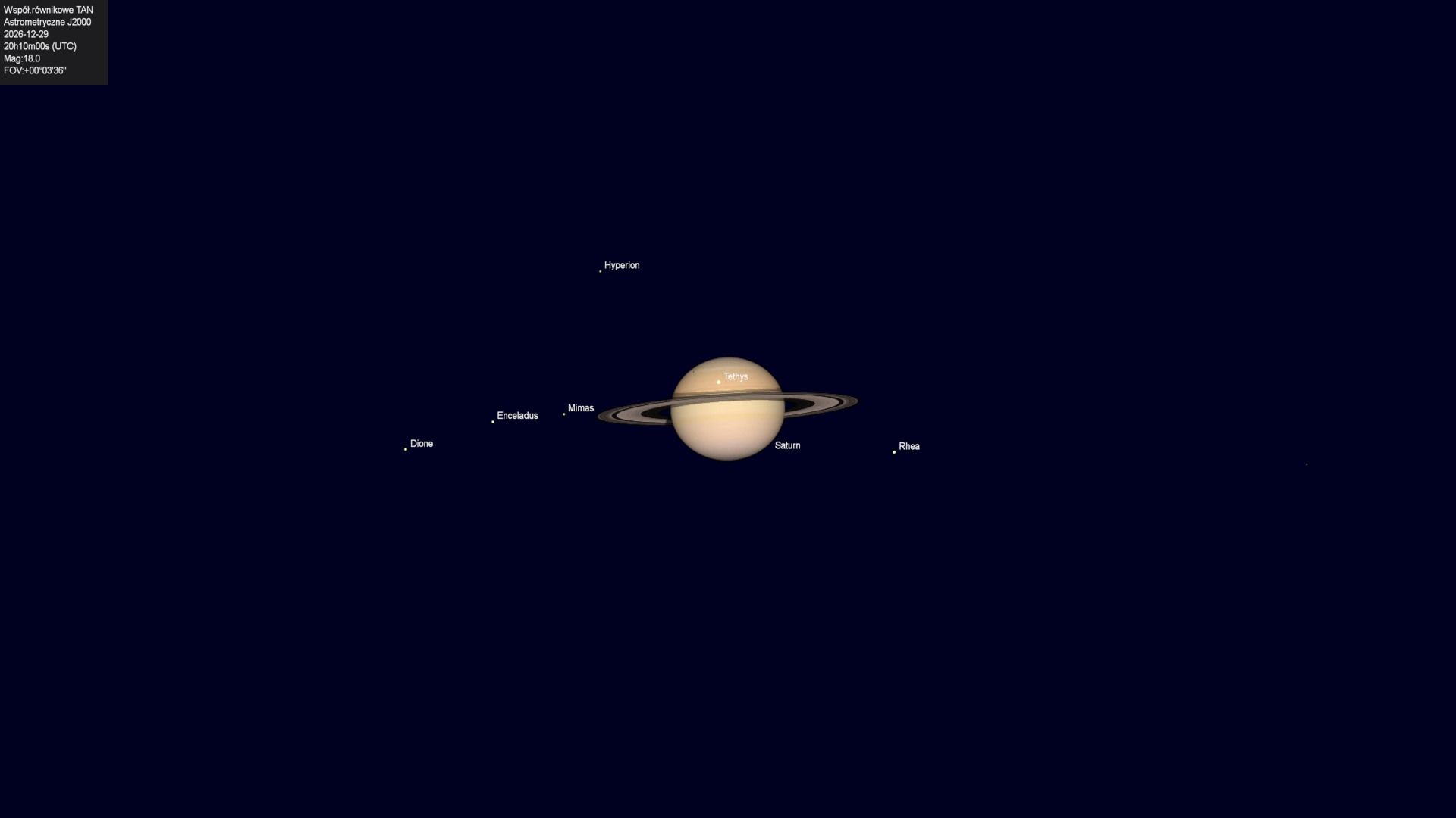 Początek zakrycia księżyca Tethysa przez tarczę planety.