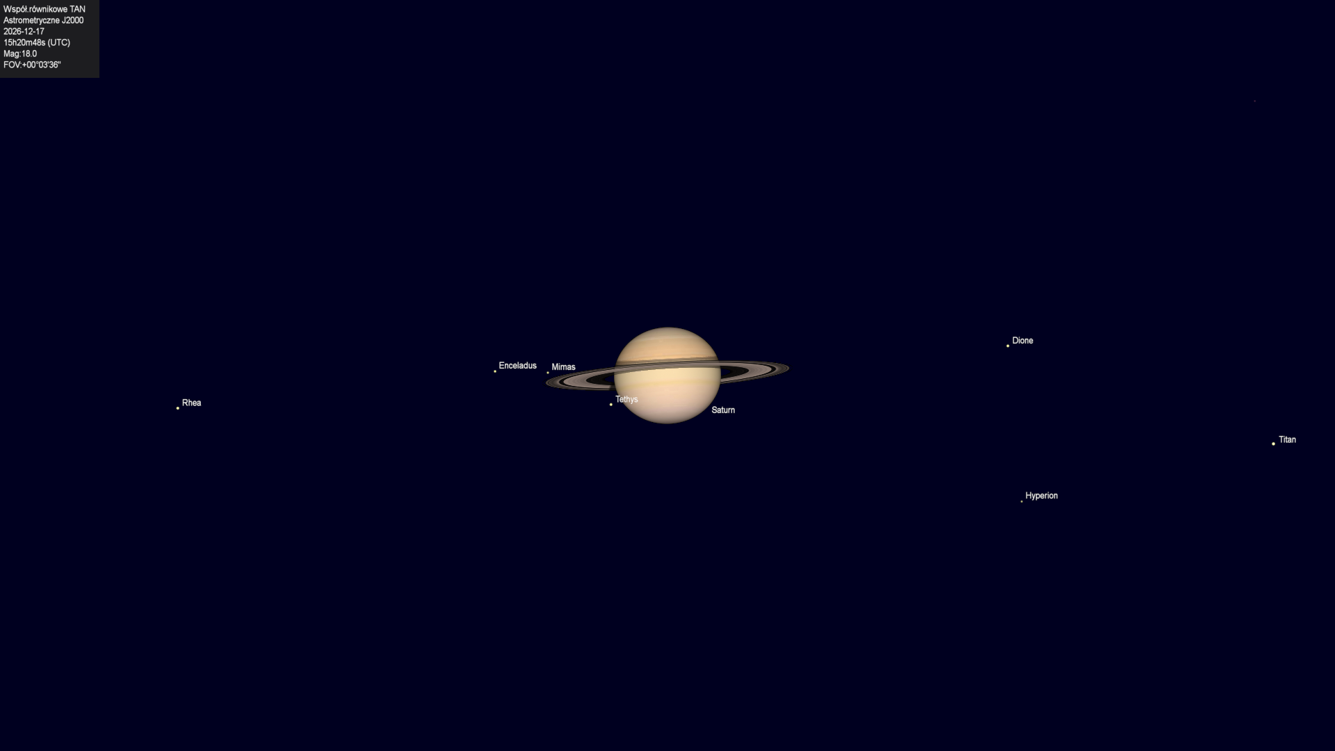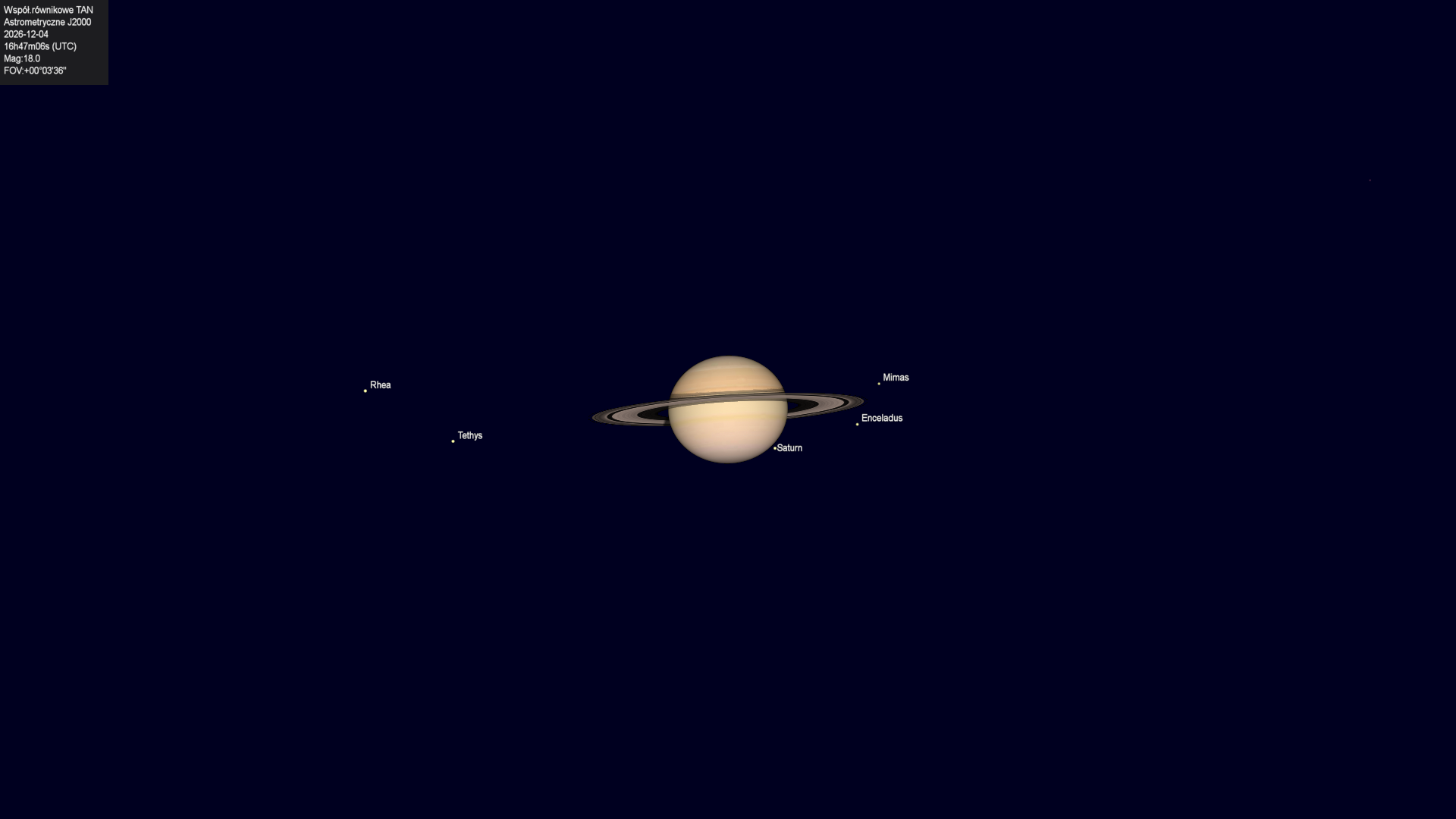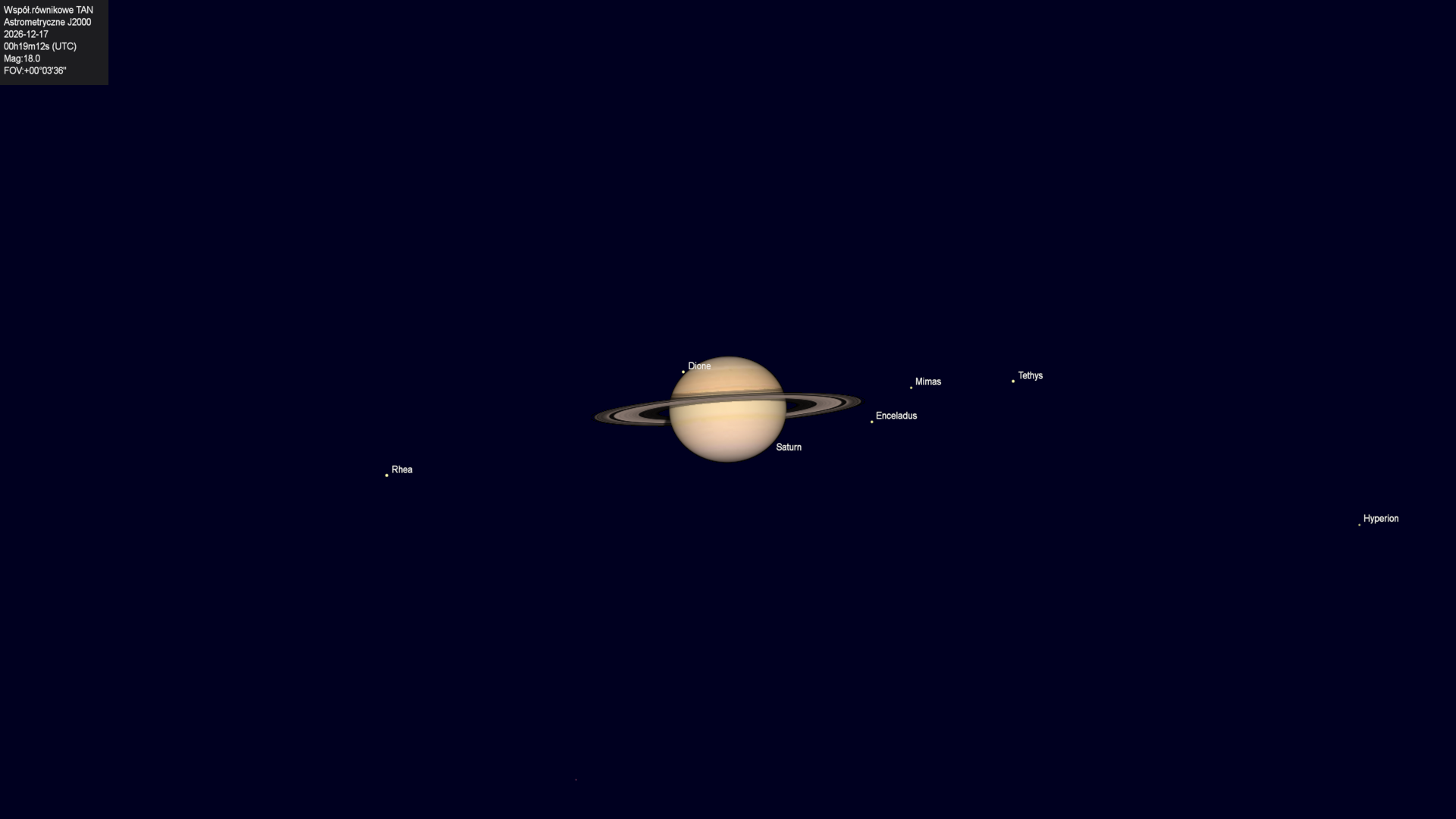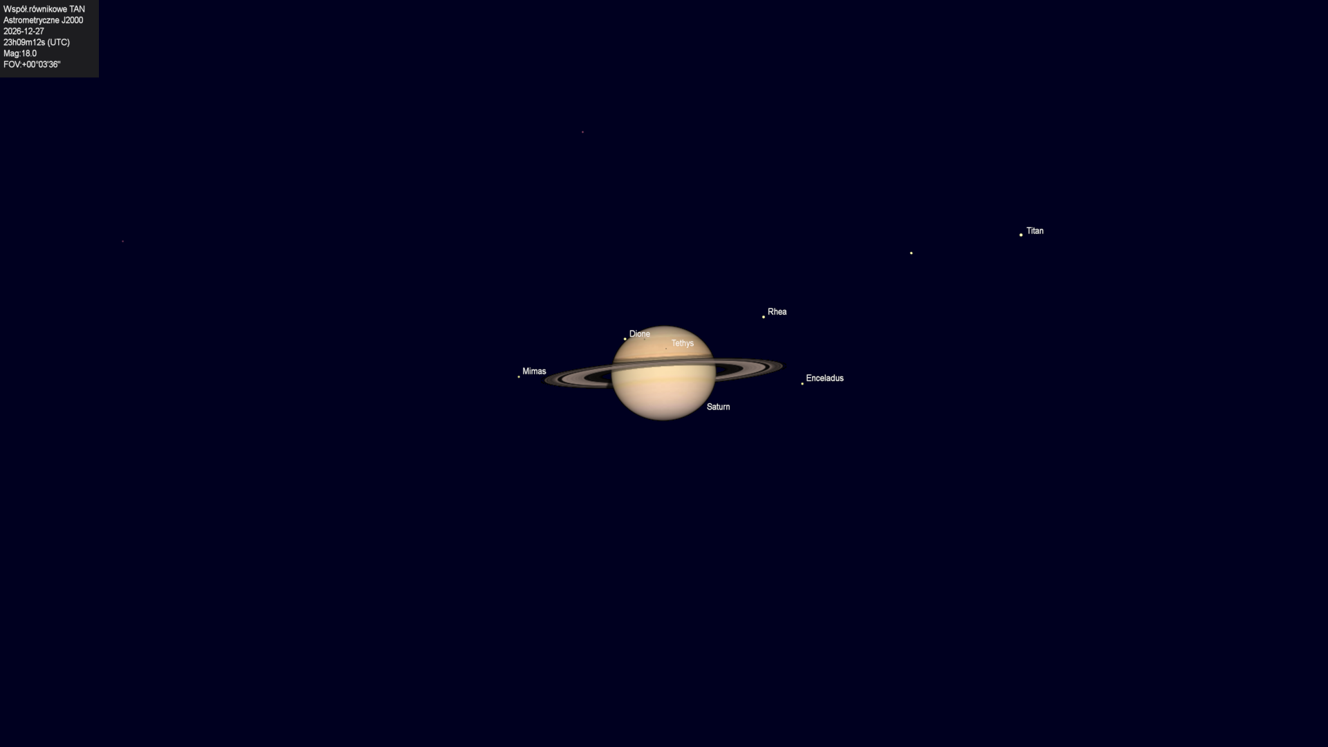 Początek zakrycia księżyca Tethysa przez tarczę planety.