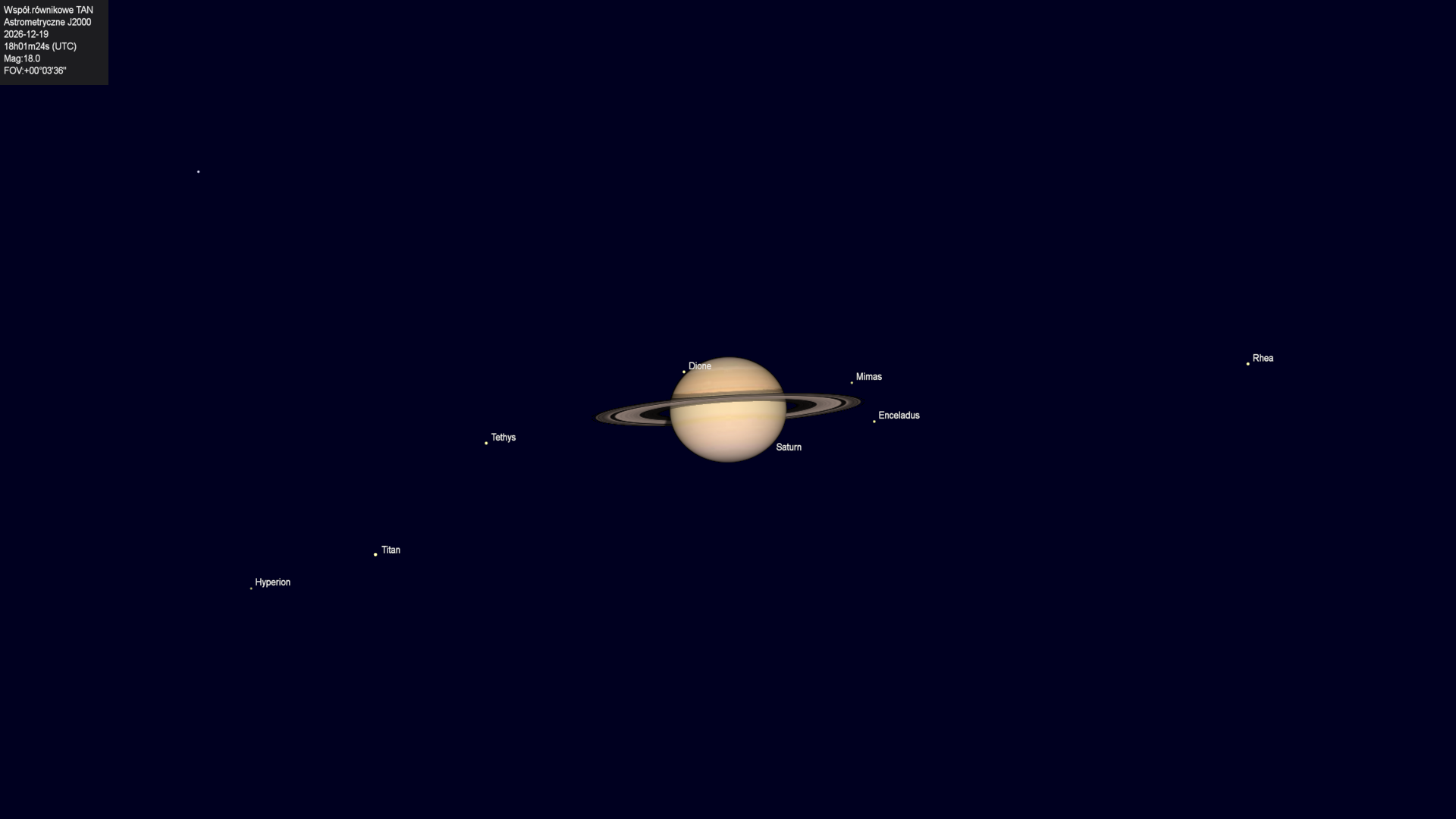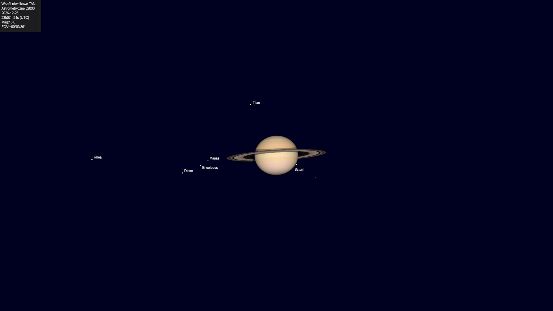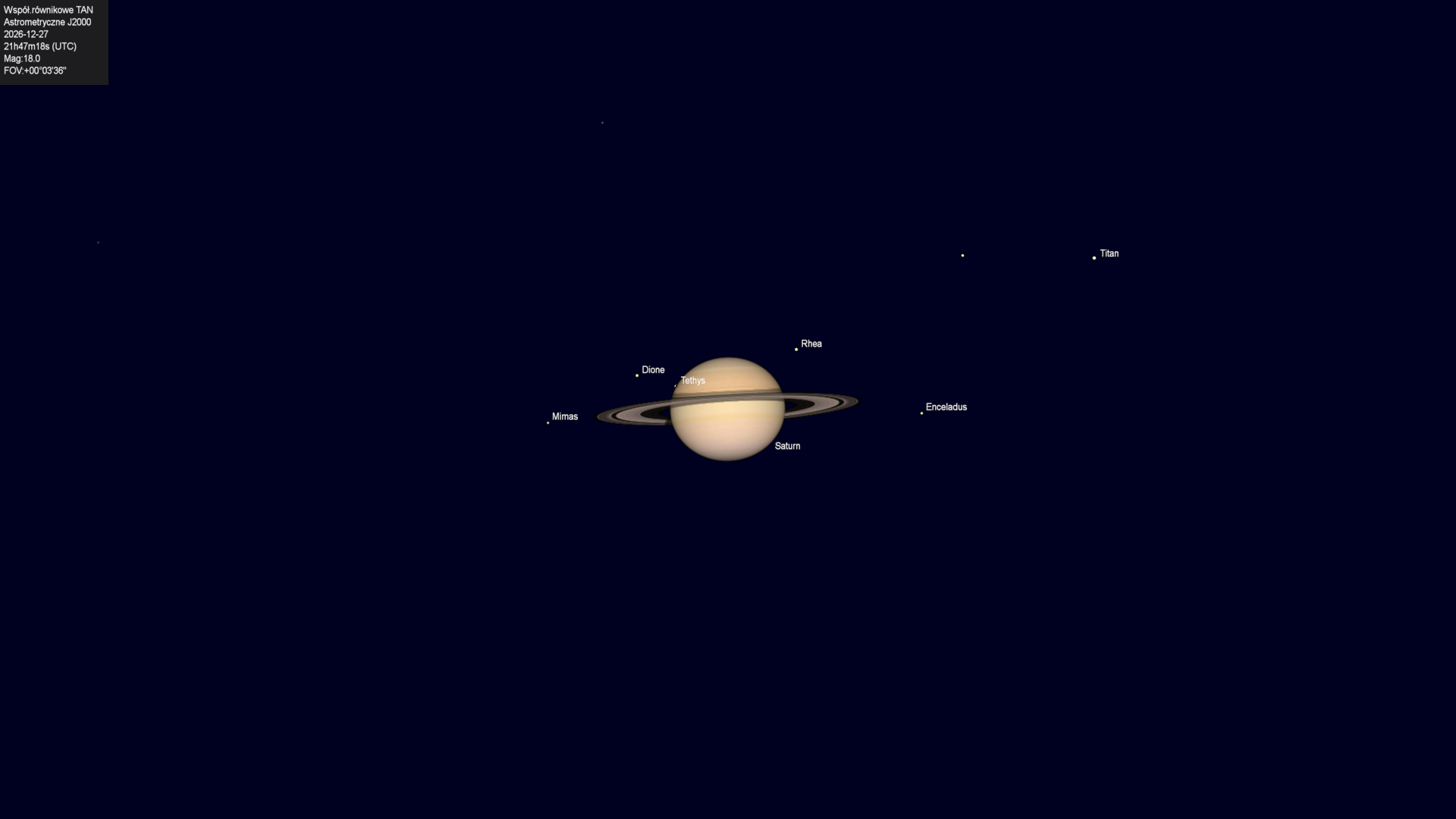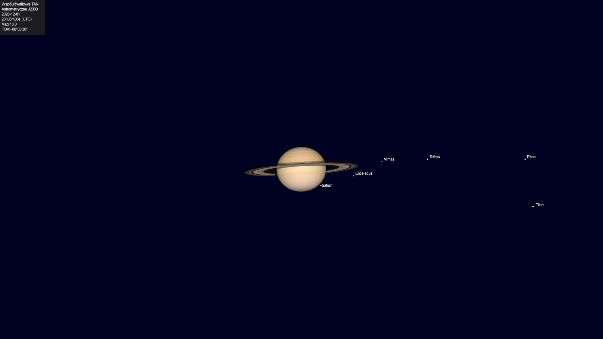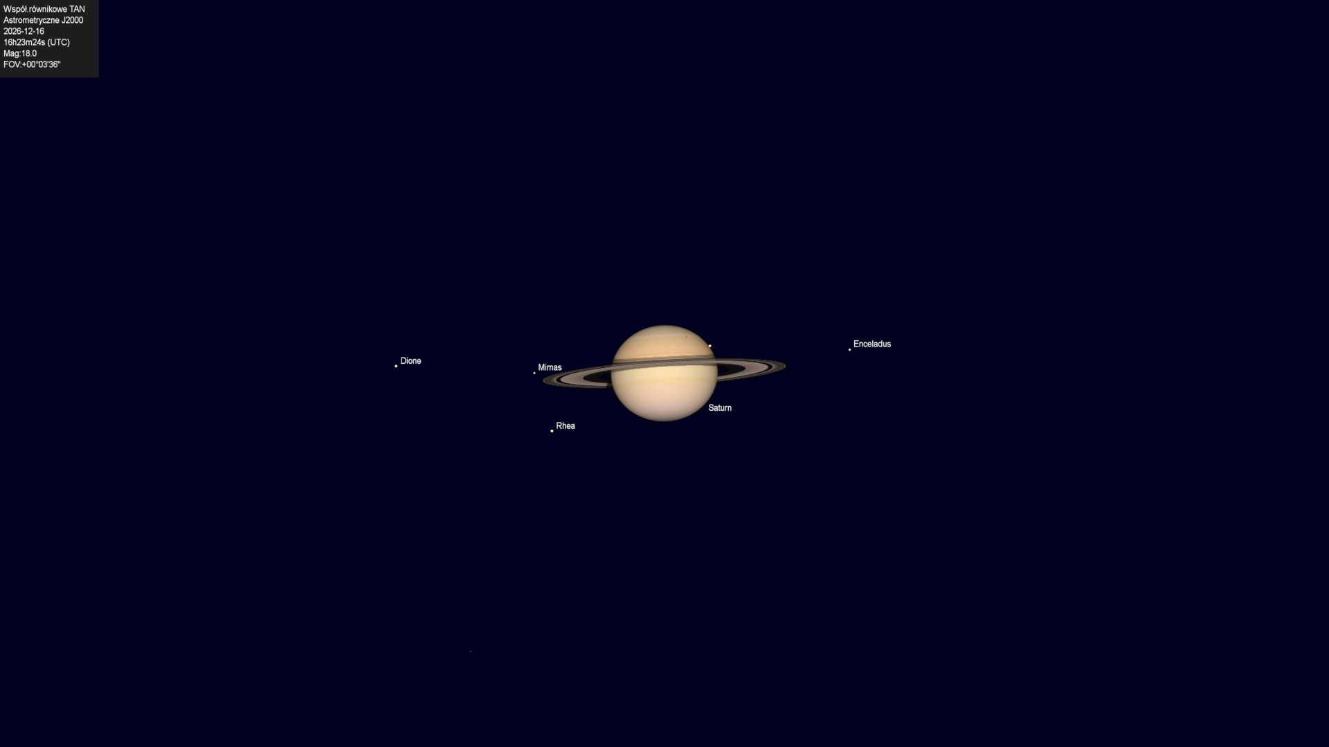 Początek zakrycia księżyca Tethysa przez tarczę planety.
