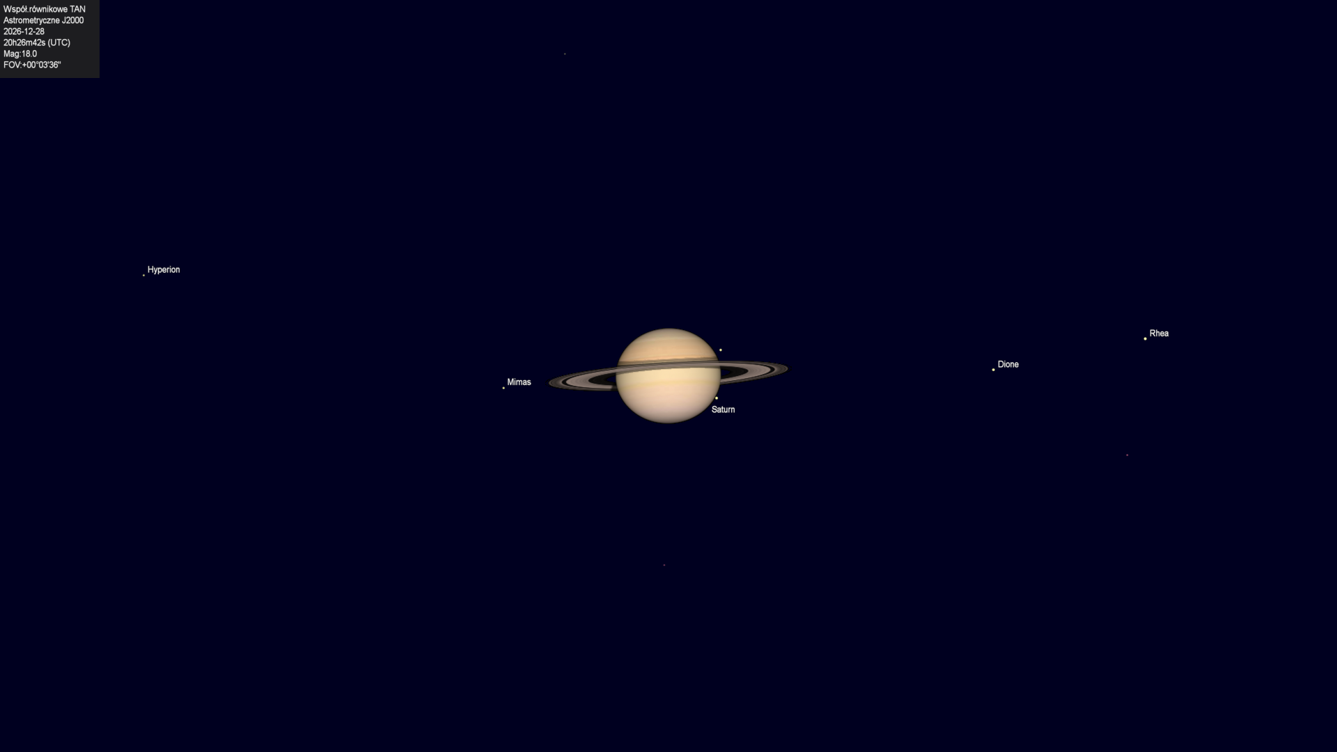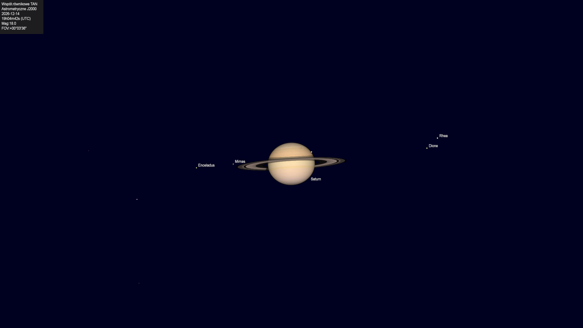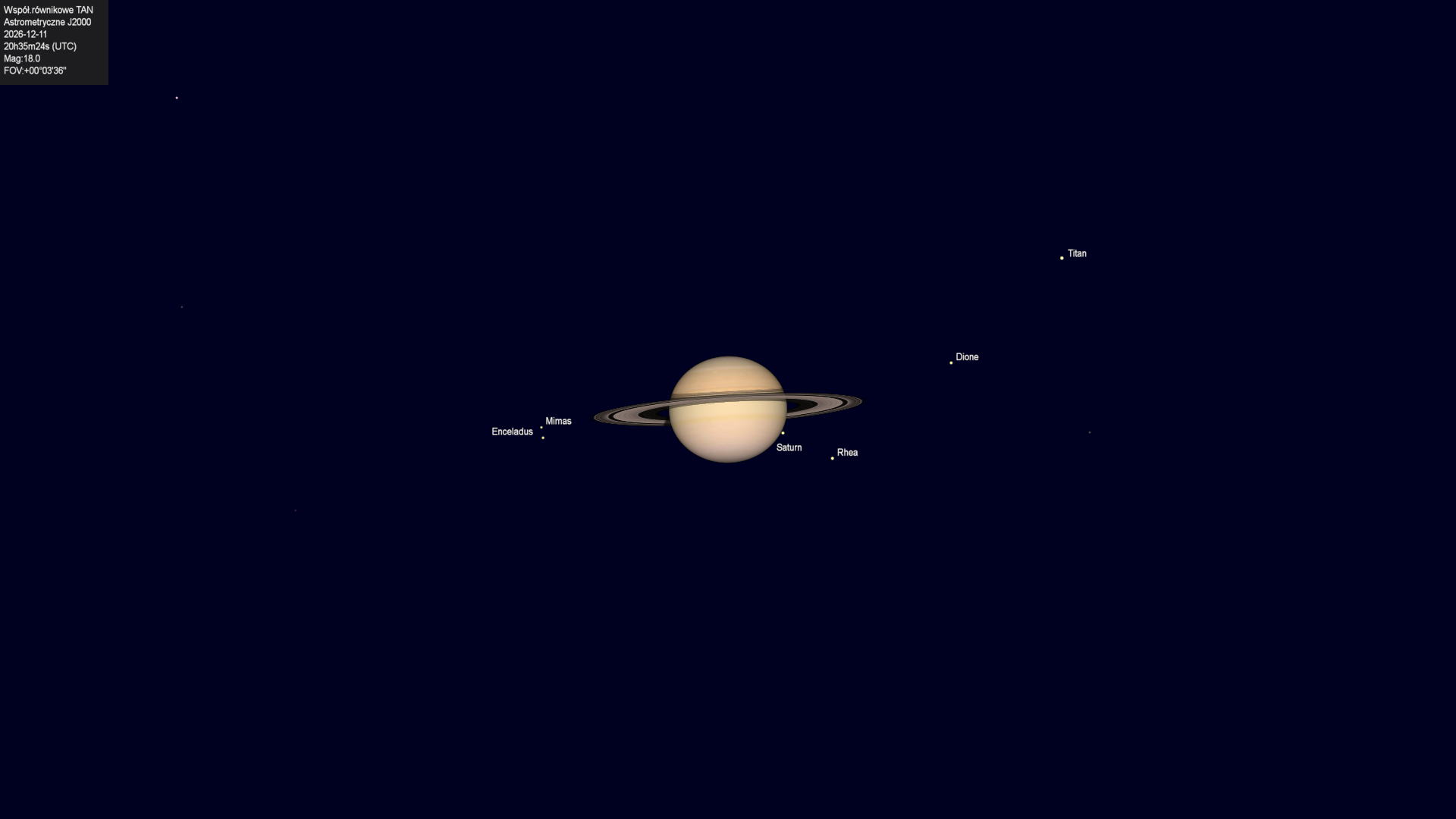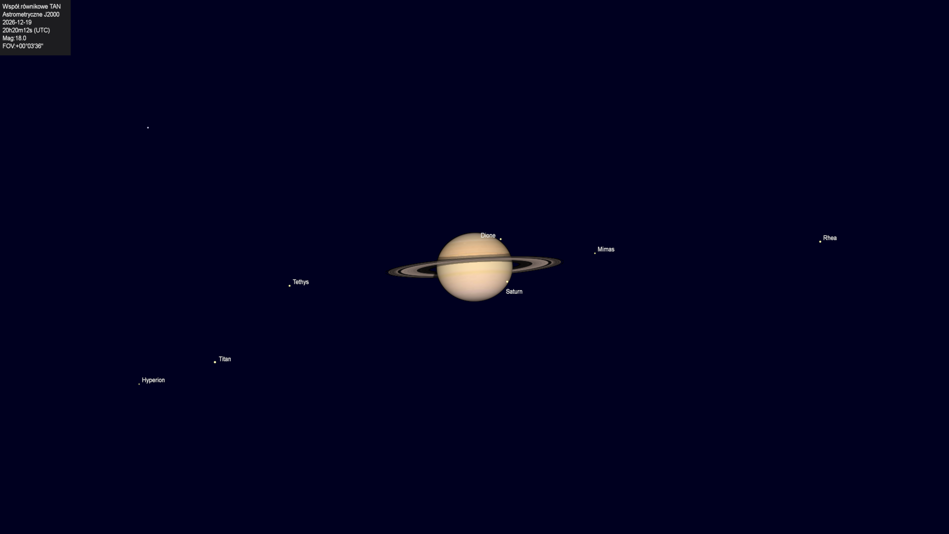 Początek zakrycia księżyca Tethysa przez tarczę planety.