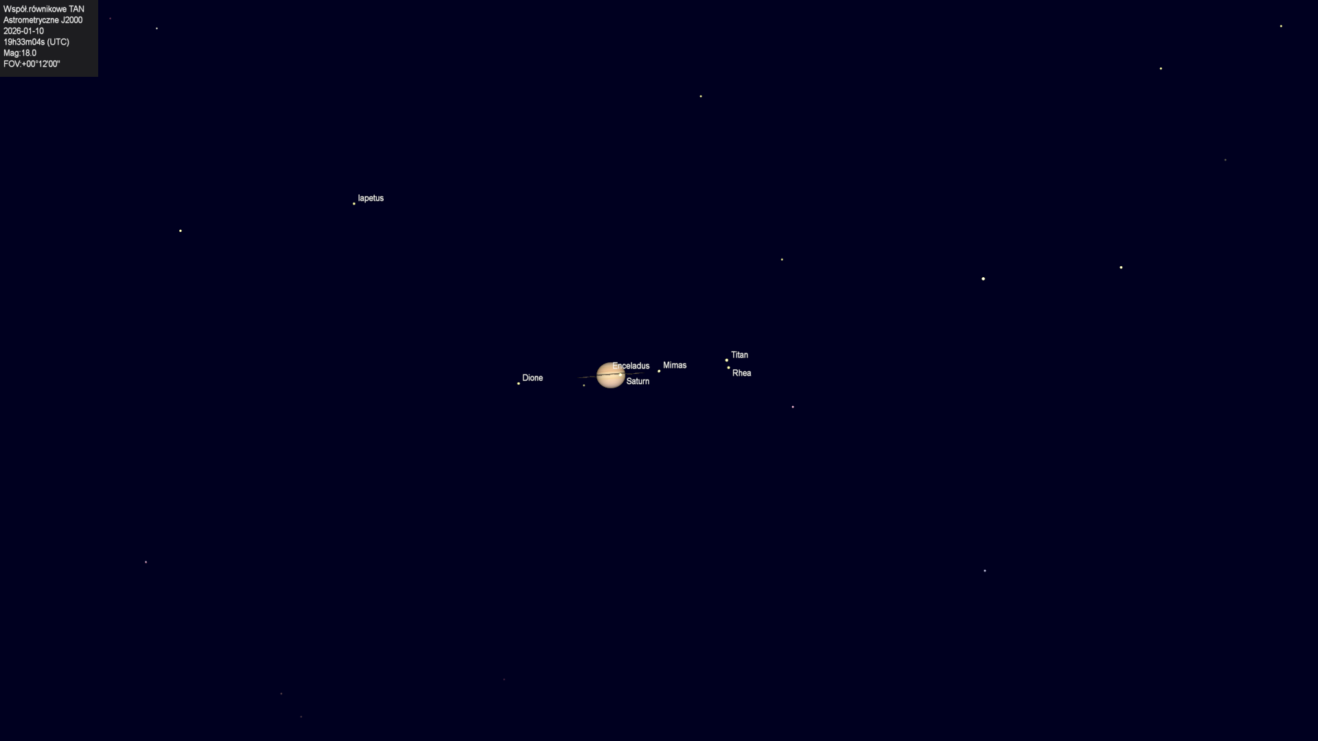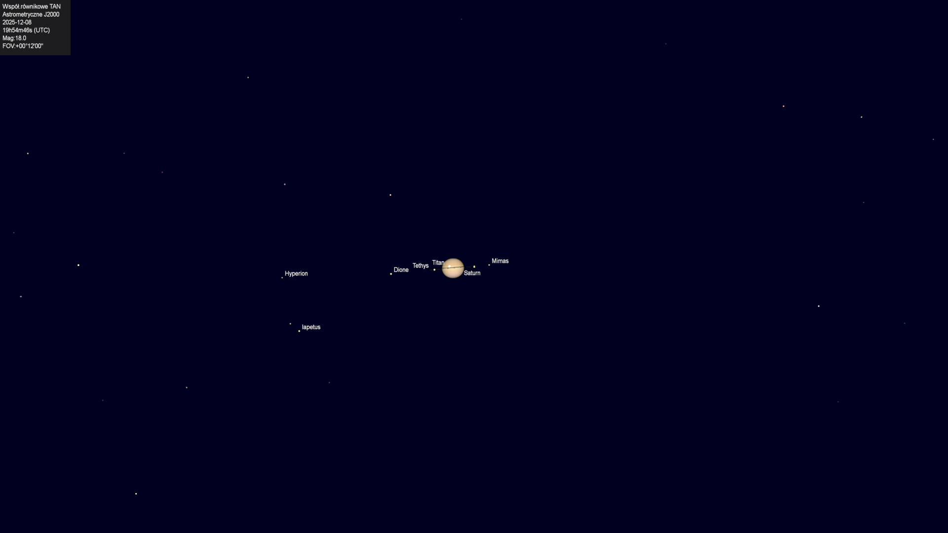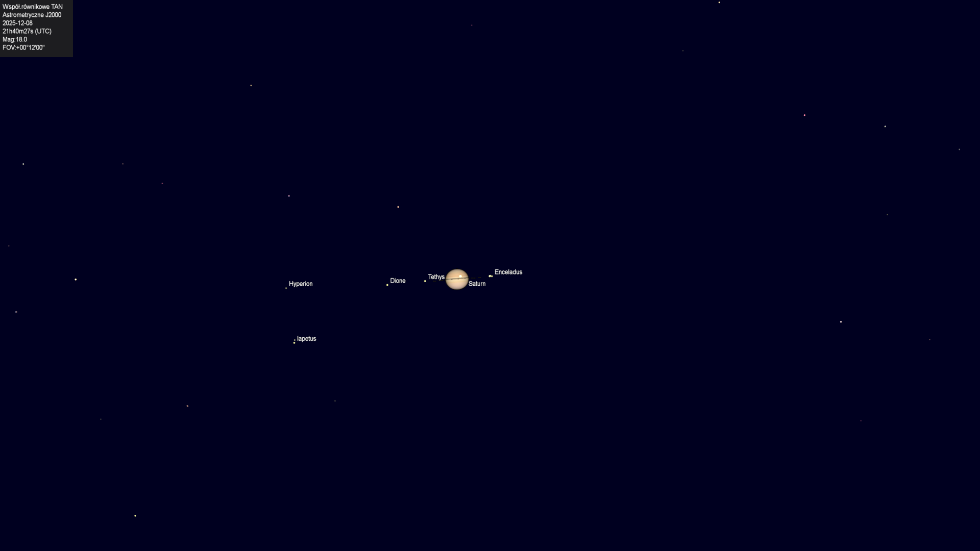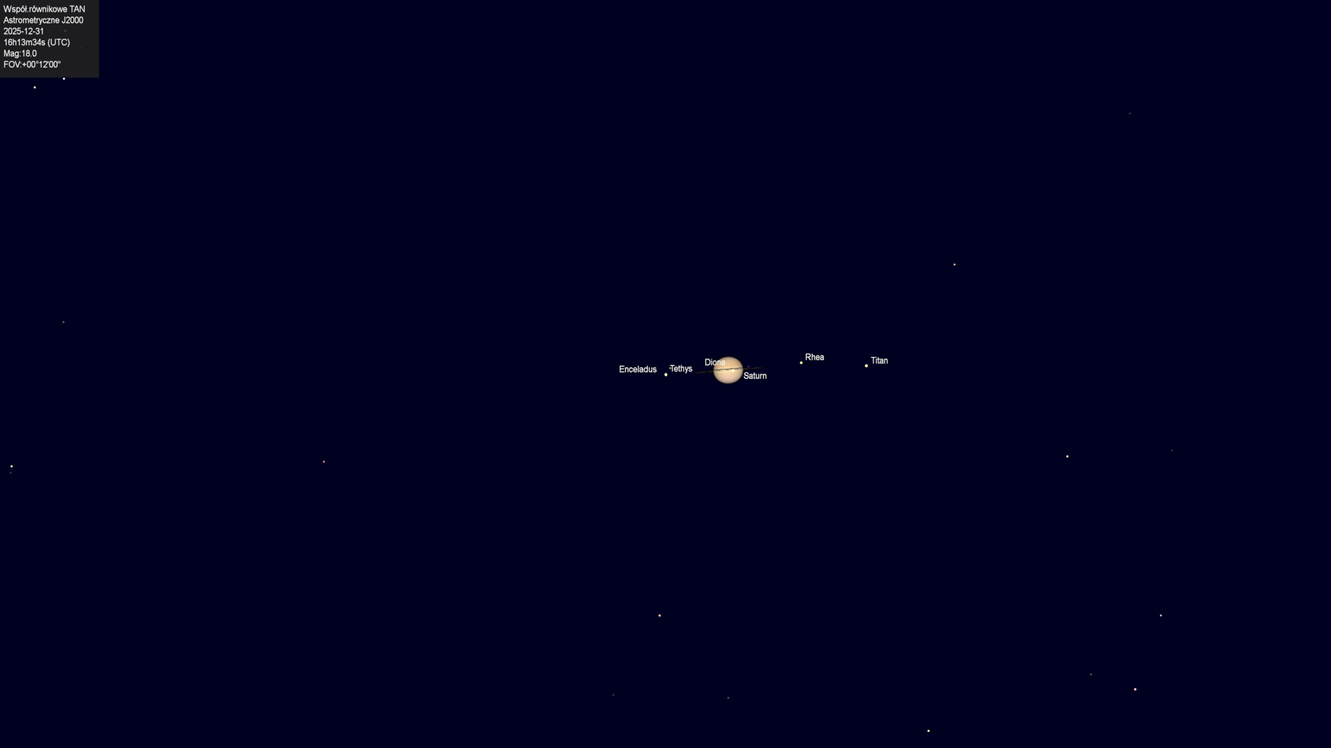 Całkowite zakrycie księżyca Tethysa przez księżyc Mimas |