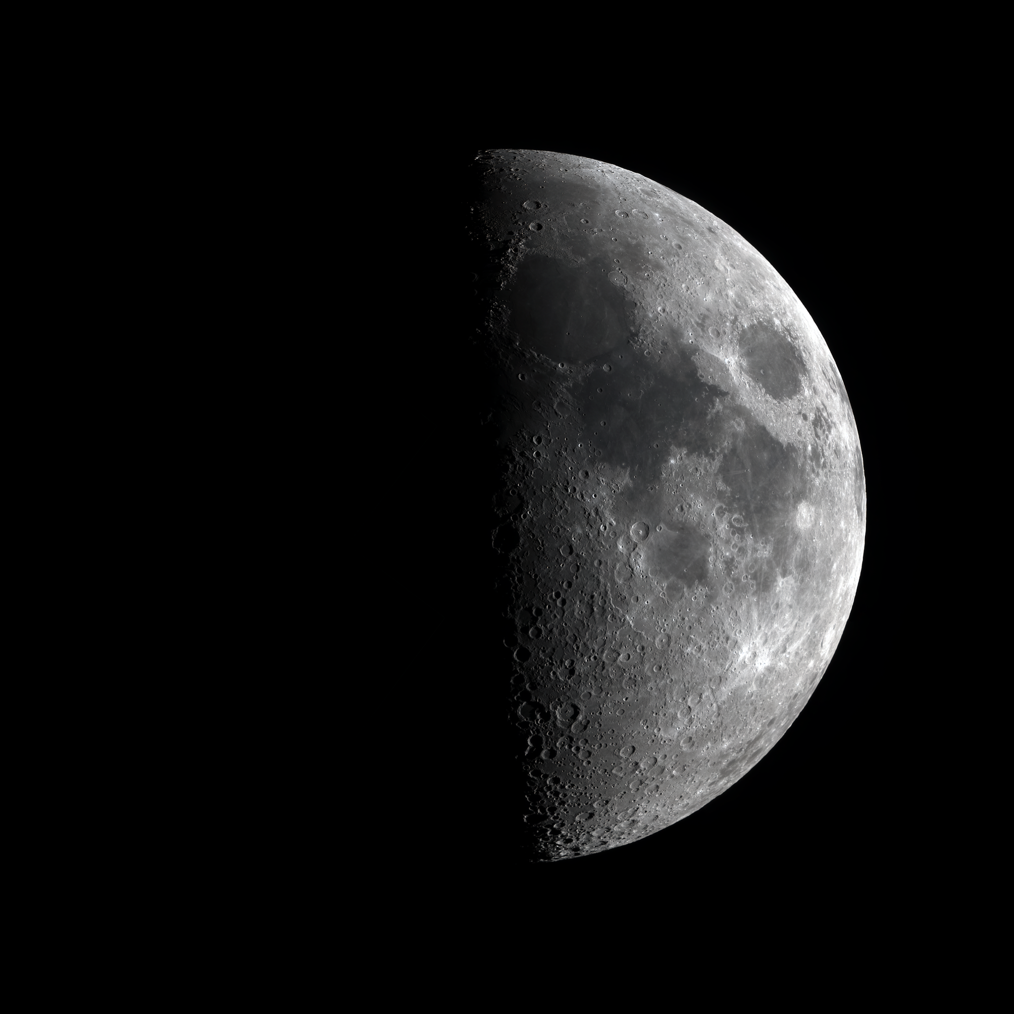 Zdjęcie Księżyca wykonane w dniu 6 marca 2025 za pomocą teleskopu Skywatcher 254/1200 z kamerą astronomiczną ZWO ASI 676MC. Pole widzenia tej kamery nie obejmuje całej tarczy Księżyca zdjęcie zostało złożone z sześciu fragmentów.